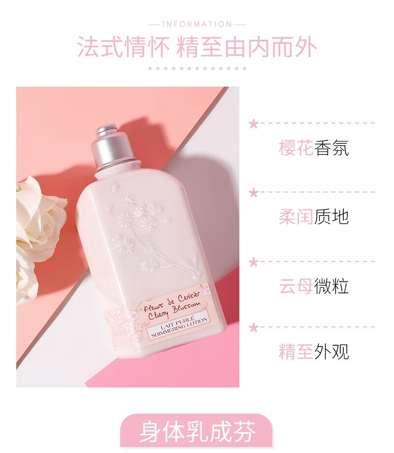L'Occitane Grasse Sakura Shiny Moisturizing Body Lotion 250ml Moisturizing and Moisturizing Long-lasting Fragrance Shower Gel Authentic Sakura Body Lotion 250ml