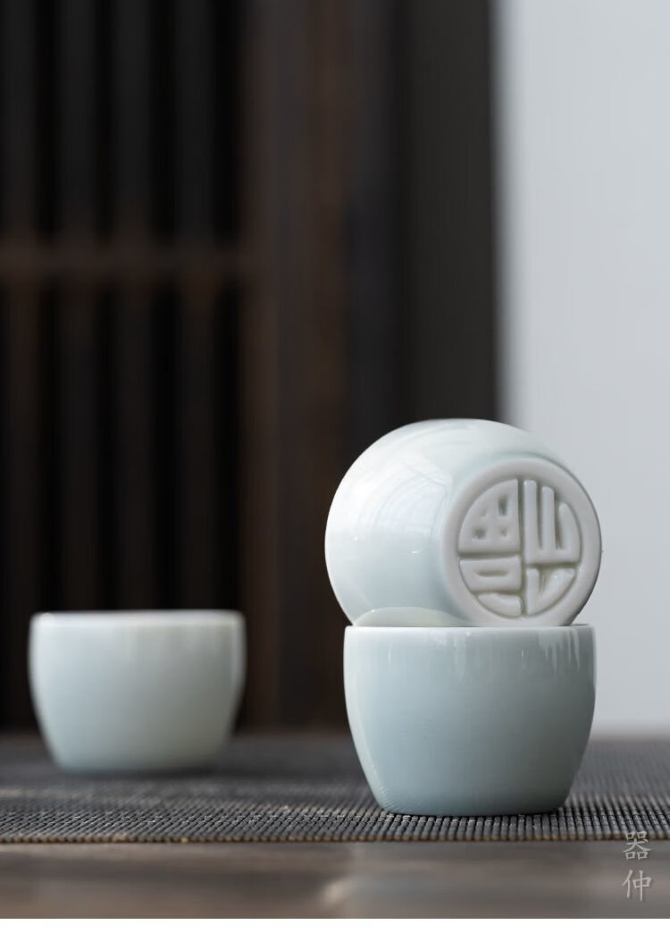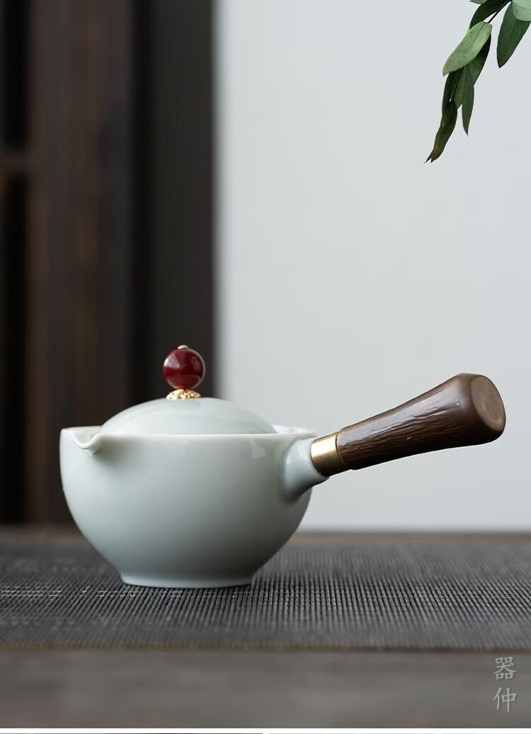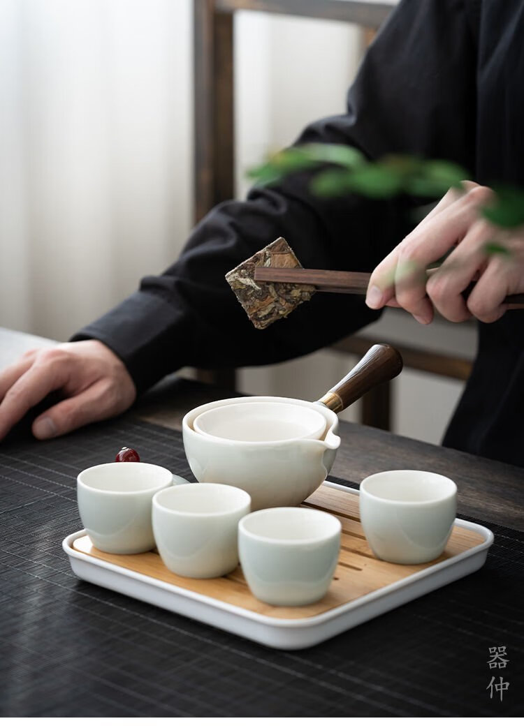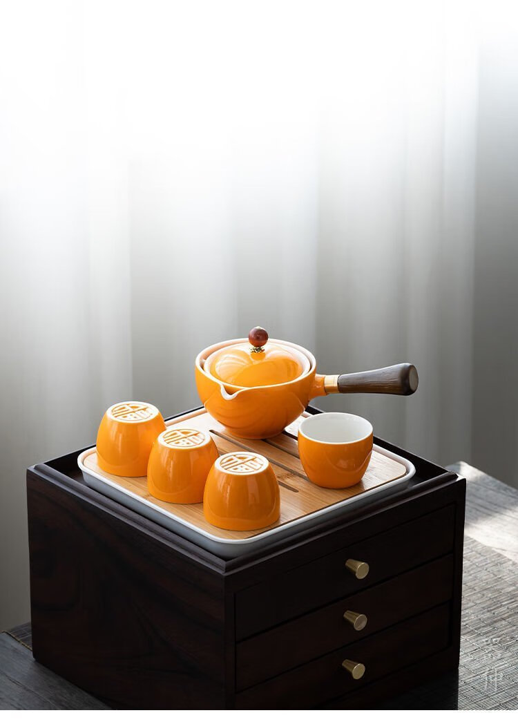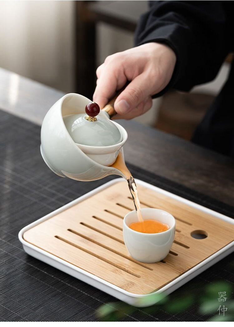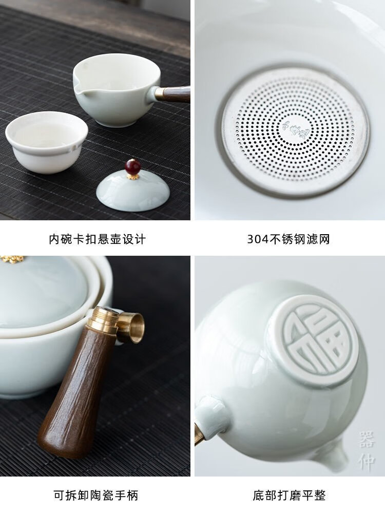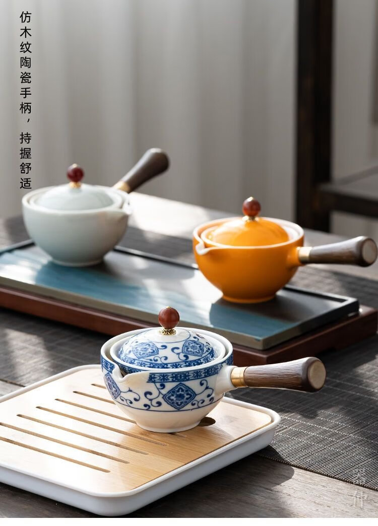 The lazy person's 360-degree fully automatic teapot, new Kung Fu tea set, side handle tea maker, travel portable Xiaoyao teapot, blue and white porcelain, single cup, 4 pieces