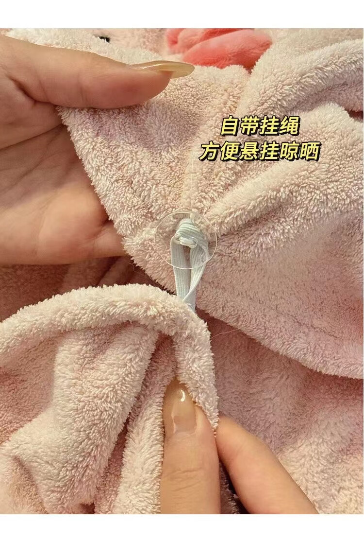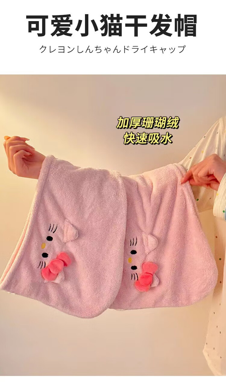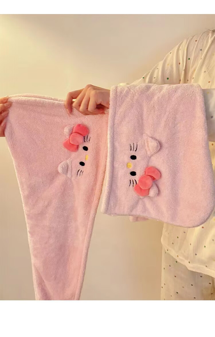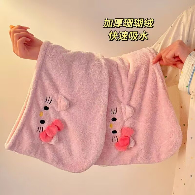 HelloKitty dry hair hat for women, coral velvet, water-absorbent, quick-drying turban, girl's dry hair towel, non-shedding, pink cat 1 pack