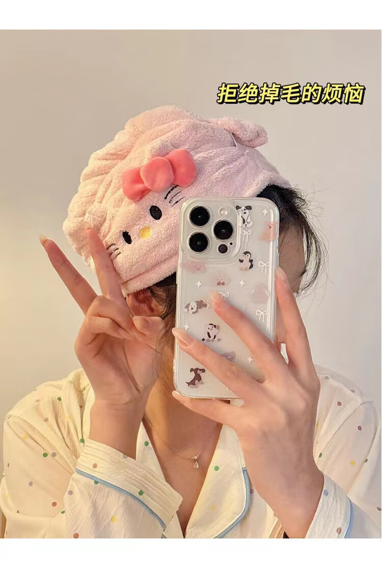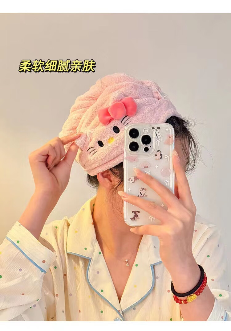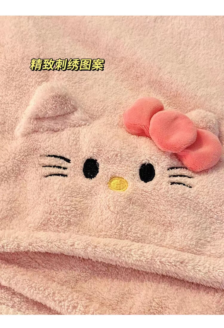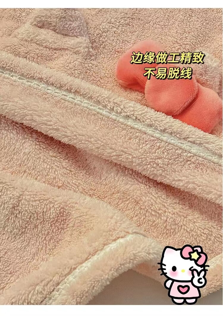 HelloKitty dry hair hat for women, coral velvet, water-absorbent, quick-drying turban, girl's dry hair towel, non-shedding, pink cat 1 pack