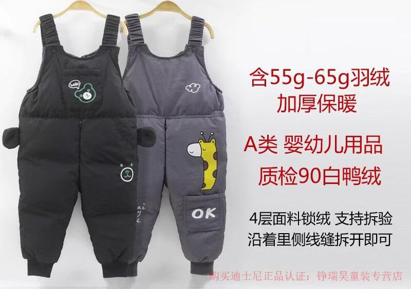 G.DUCKKIDS baby down pants for babies, boys and girls, thickened pants for children, children's jumpsuit overalls, winter, embroidered bear gray, 80 cm, including 55g down
