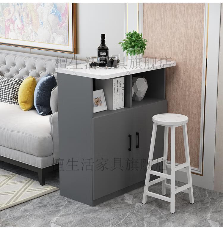 Hualaid home bar table kitchen restaurant partition cabinet multi-functional entrance cabinet modern simple small bar wine cabinet high table white cabinet + marble color countertop + white cabinet length 120 three doors