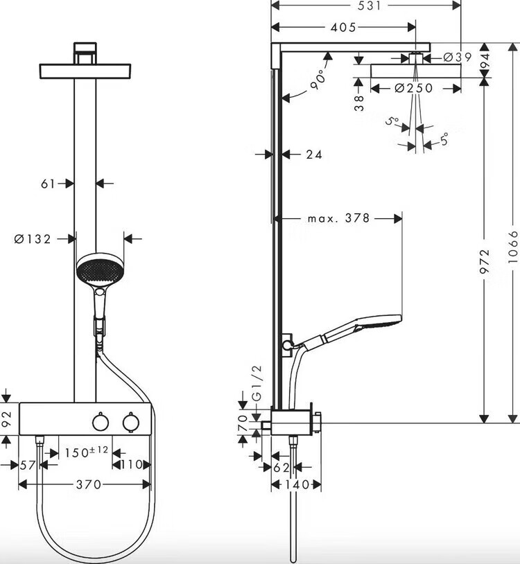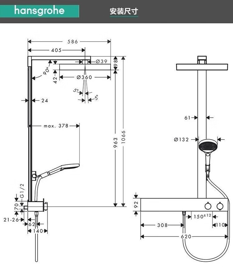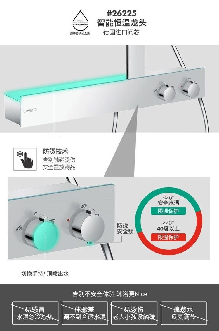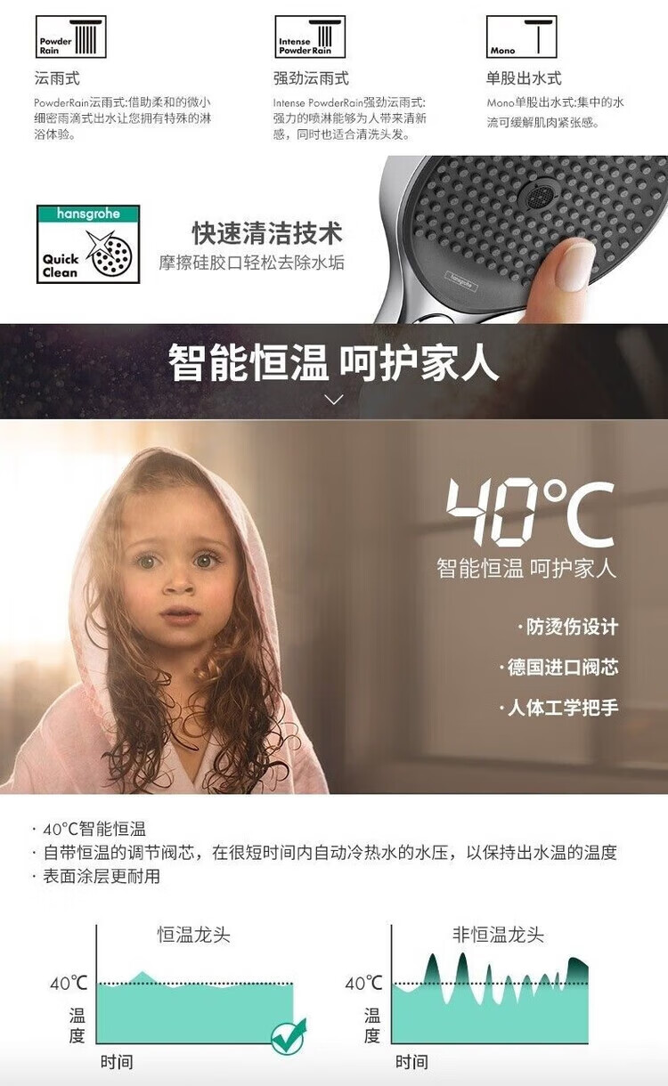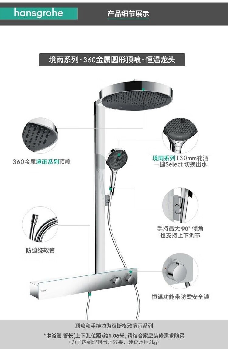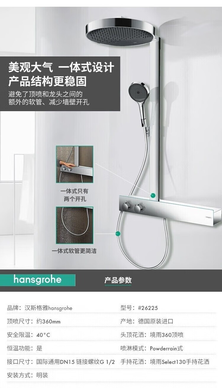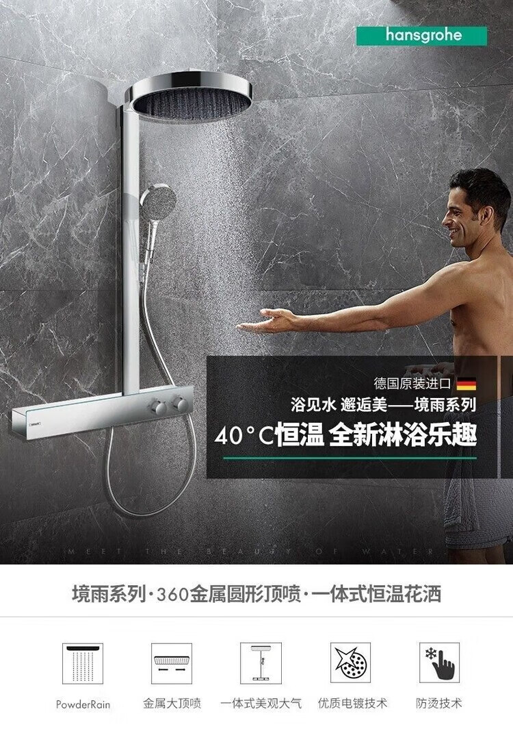 Hansgrohe German original imported rain 360 intelligent constant temperature shower set 26225007 supercharged rain shower silver long 360 top spray