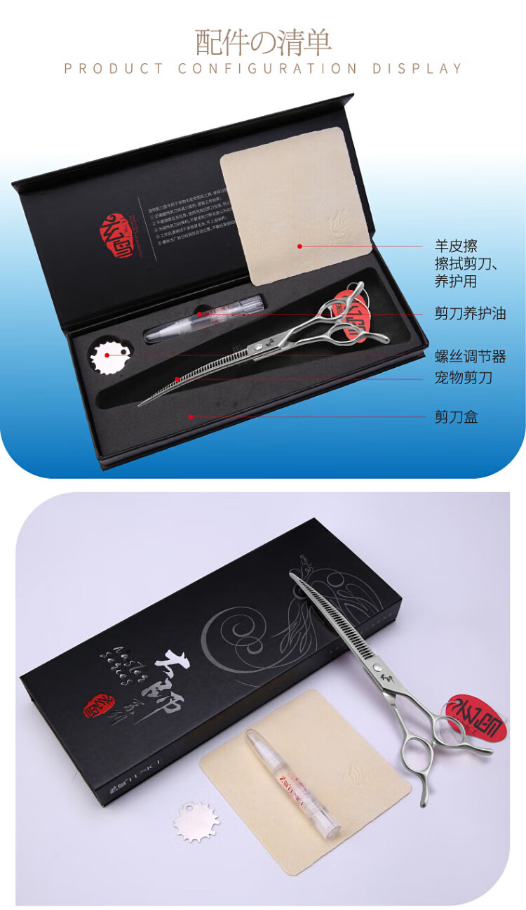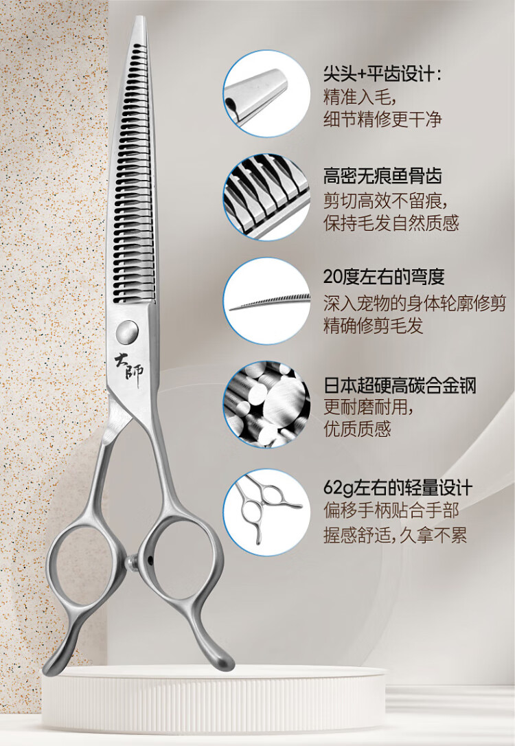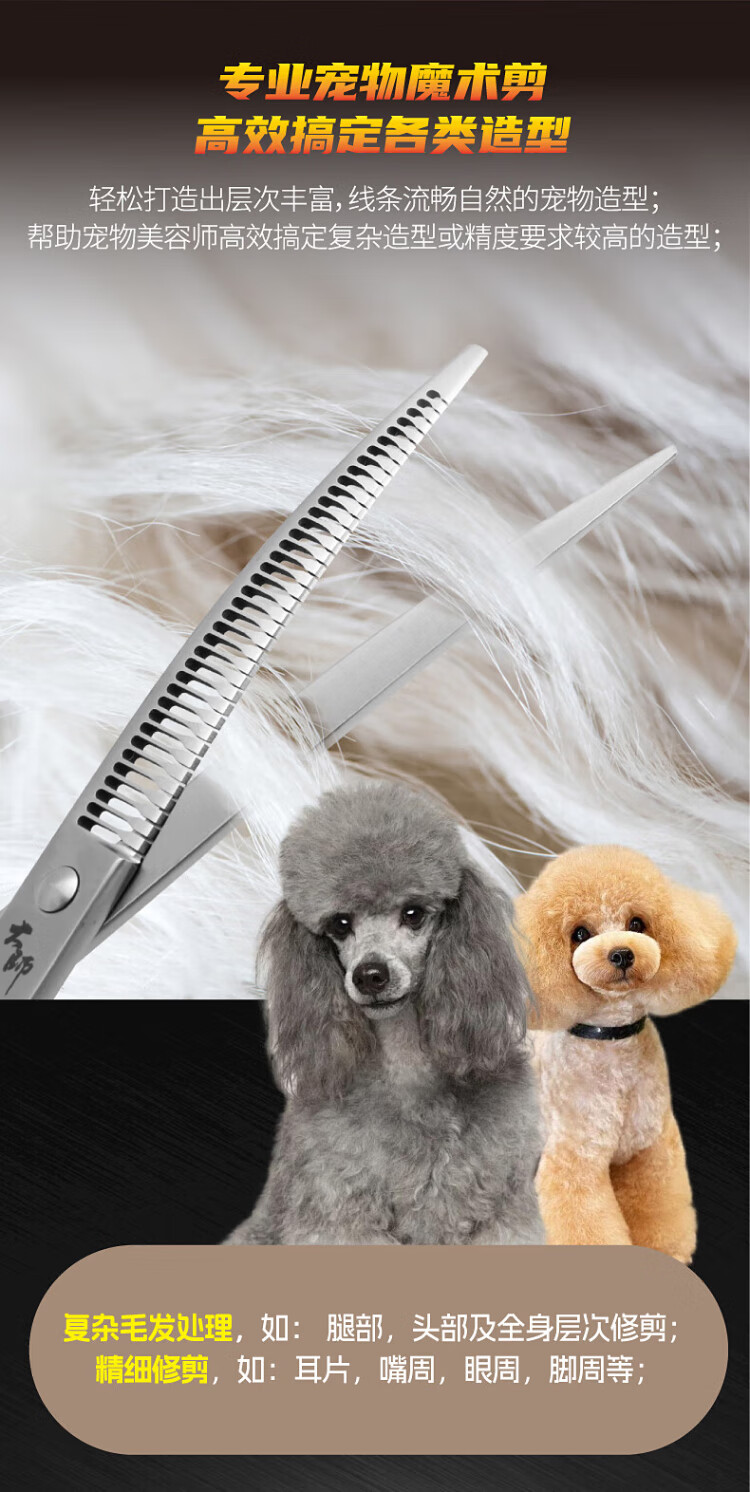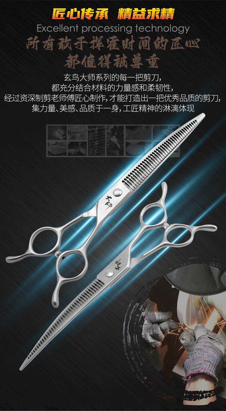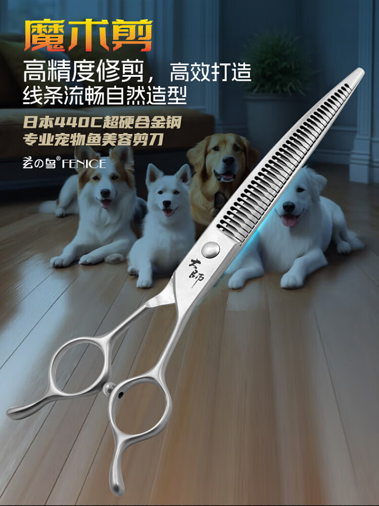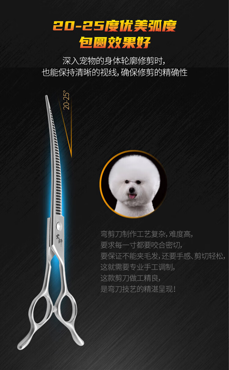 Black Bird Master Curved Magic Scissors Pet Grooming Scissors Professional Beautician Scissors for Pet Shop Natural Scissors Magic Straight Puff 7.0 inches