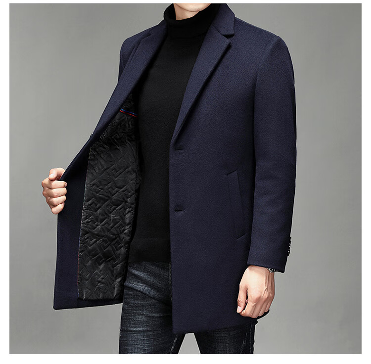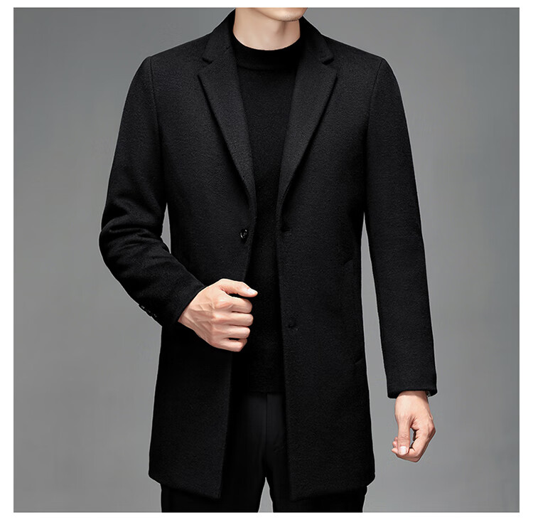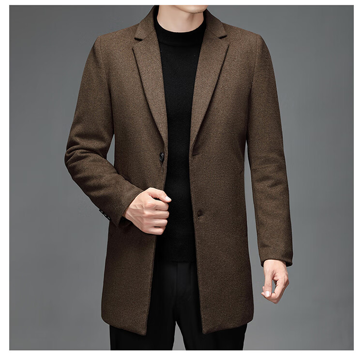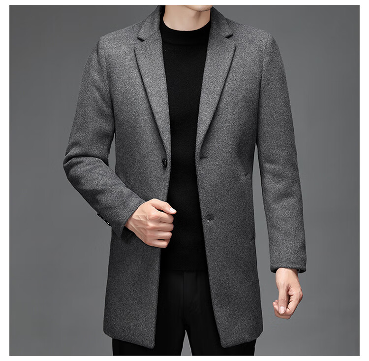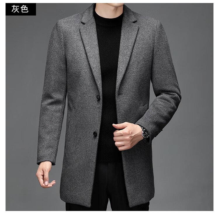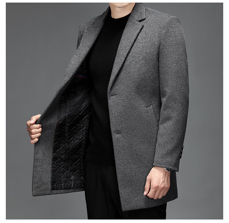 Hengyuanxiang woolen coat men's medium-length casual business suit middle-aged men's winter cashmere woolen coat Puyuan Gray 180/100A (recommended 130-145Jin Jin equals 0.5 kg)