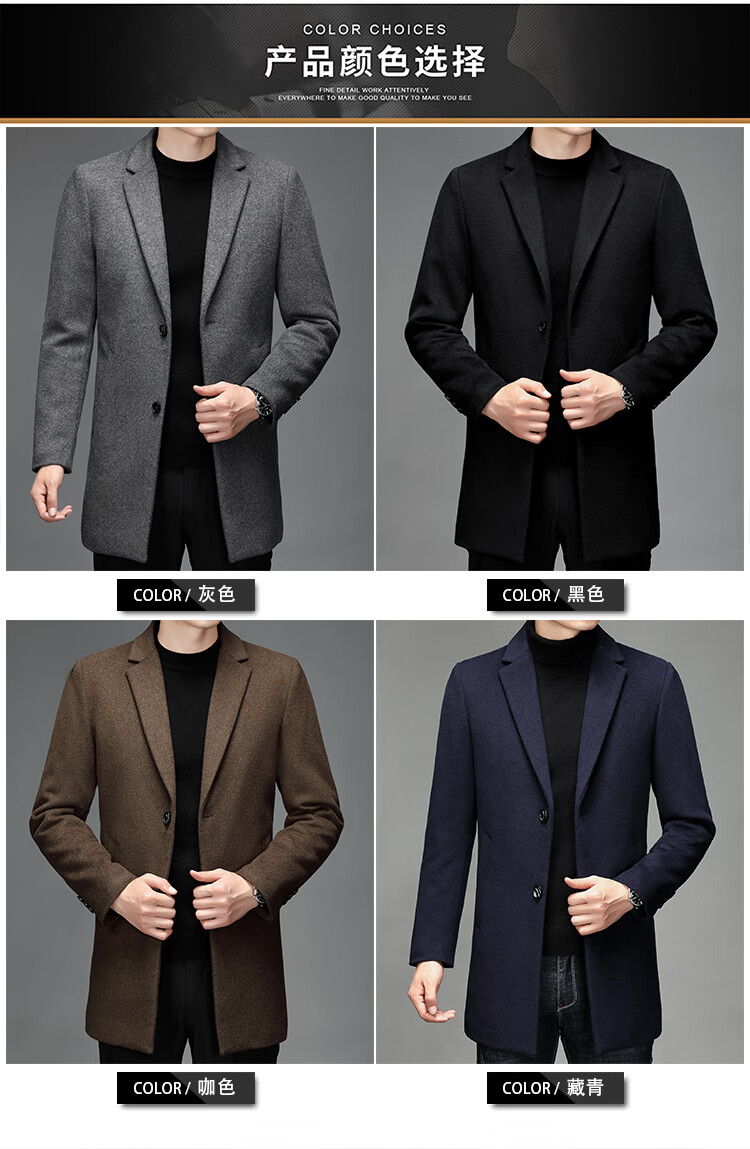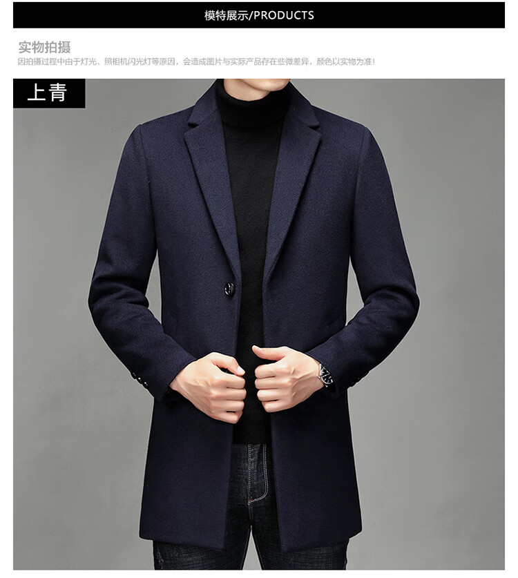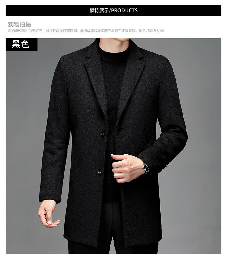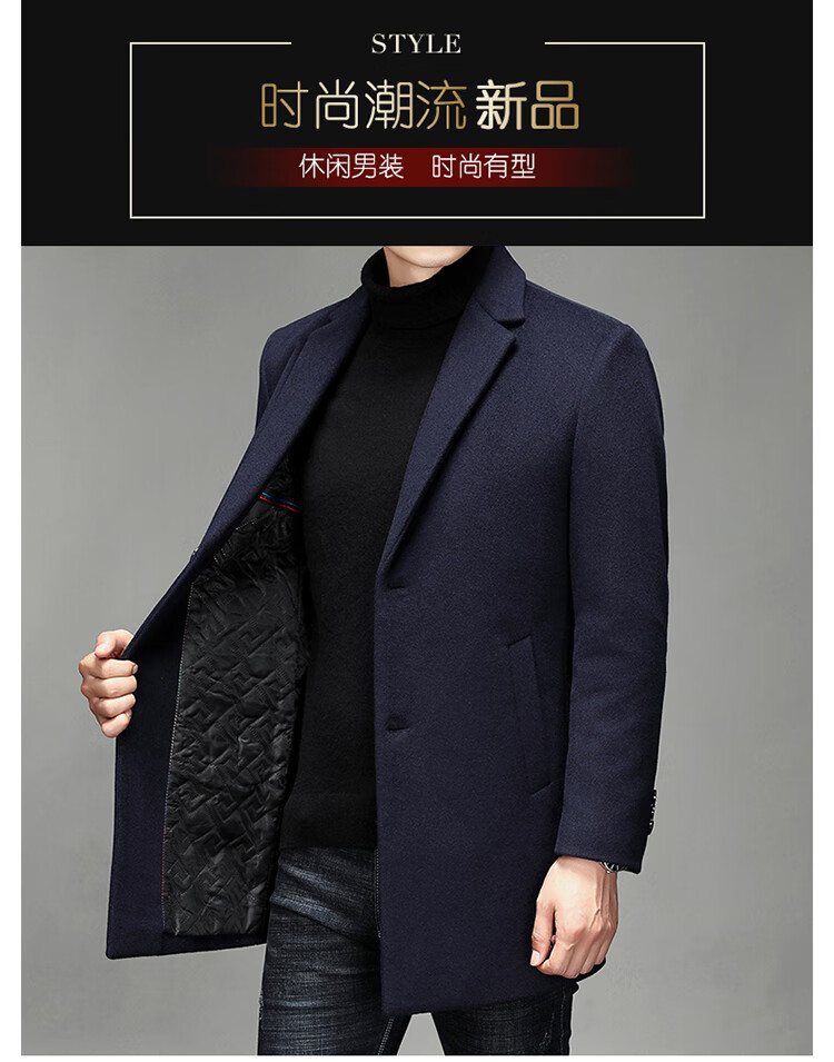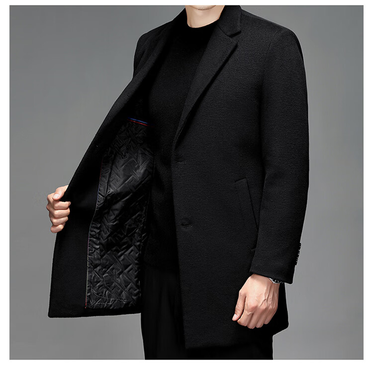 Hengyuanxiang woolen coat men's medium-length casual business suit middle-aged men's winter cashmere woolen coat Puyuan Gray 180/100A (recommended 130-145Jin Jin equals 0.5 kg)