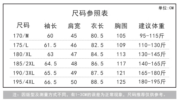China (cm) 165 / 88-90 170 / 96-98 175 / 108-110 180 / 118-122 185 / 126-130