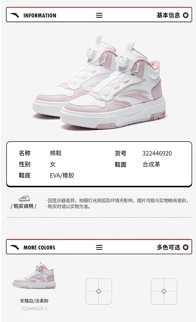 ANTA Children's Shoes Children's Cotton Shoes Universal Big Children's Shoes 2024 Autumn Plus Velvet Warm Snow Anti-Slip Synthetic Leather Boot Knobs Boys Black 6920-1 34 Size