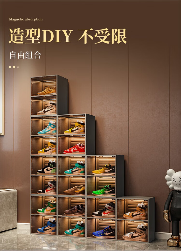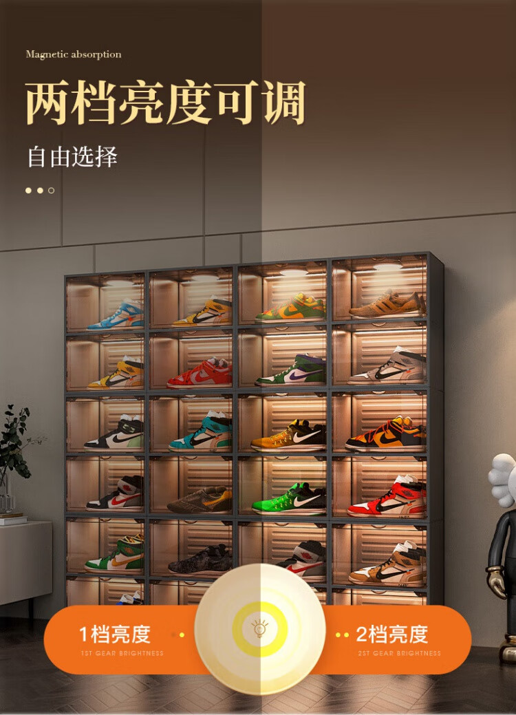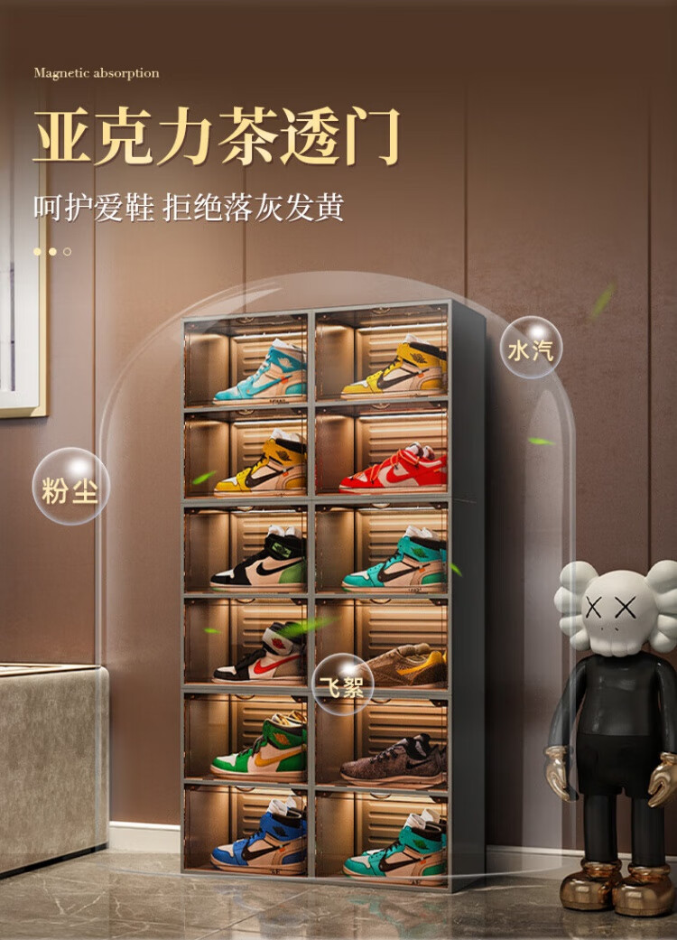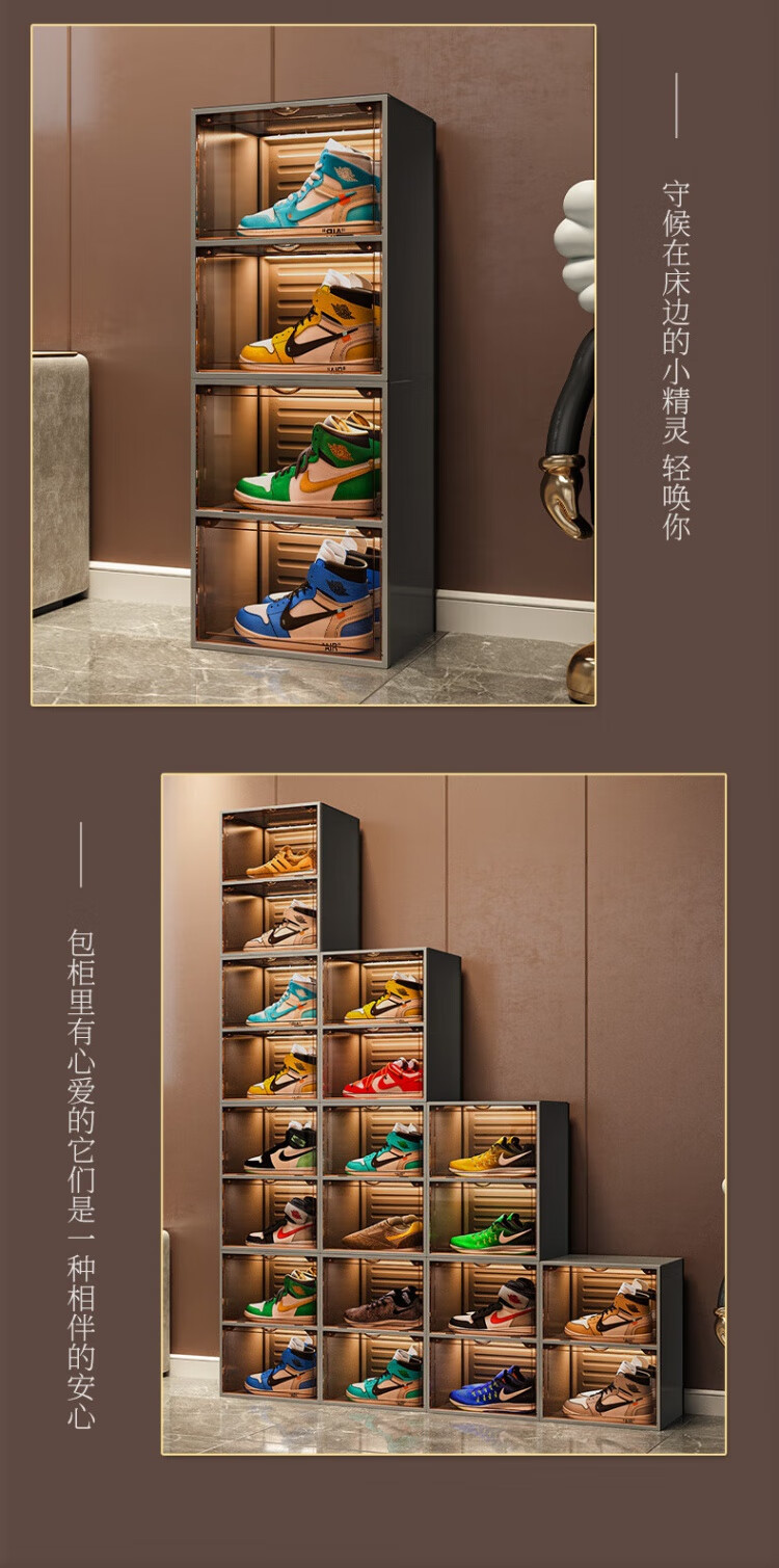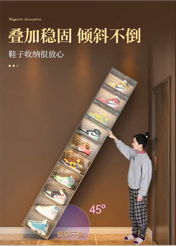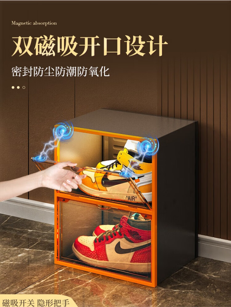 MDNGaj shoe box storage box transparent sneakers anti-oxidation shoe wall imitation acrylic shoe cabinet internet celebrity shoe rack shoe display cabinet hard plastic tea transparent door thickened 4 pairs - Vibrant Orange Popular Style