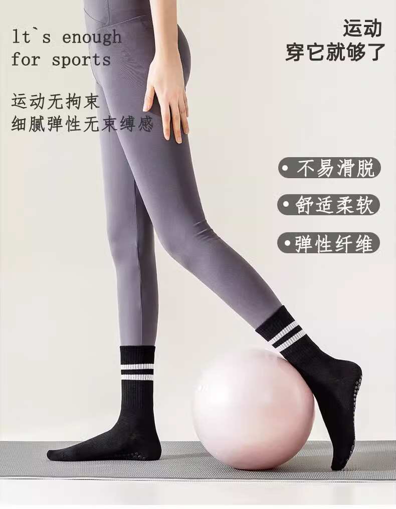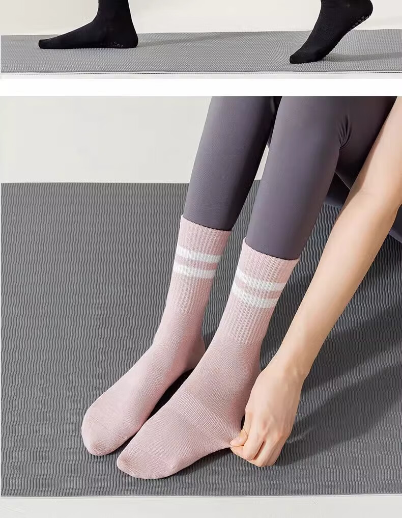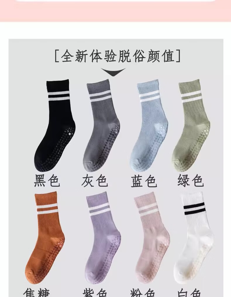 Youyingduo Girls' Silicone Non-Slip Yoga Socks Women's Non-Slip Mid-Tube Socks Children's Pilates Fitness Color Matching Sports Floor Socks 3 Pairs Light Green + Light Pink + Light Purple One Size 12 Years Old and Over