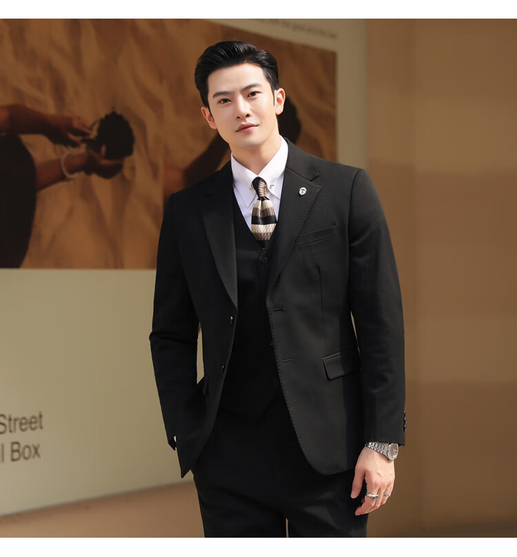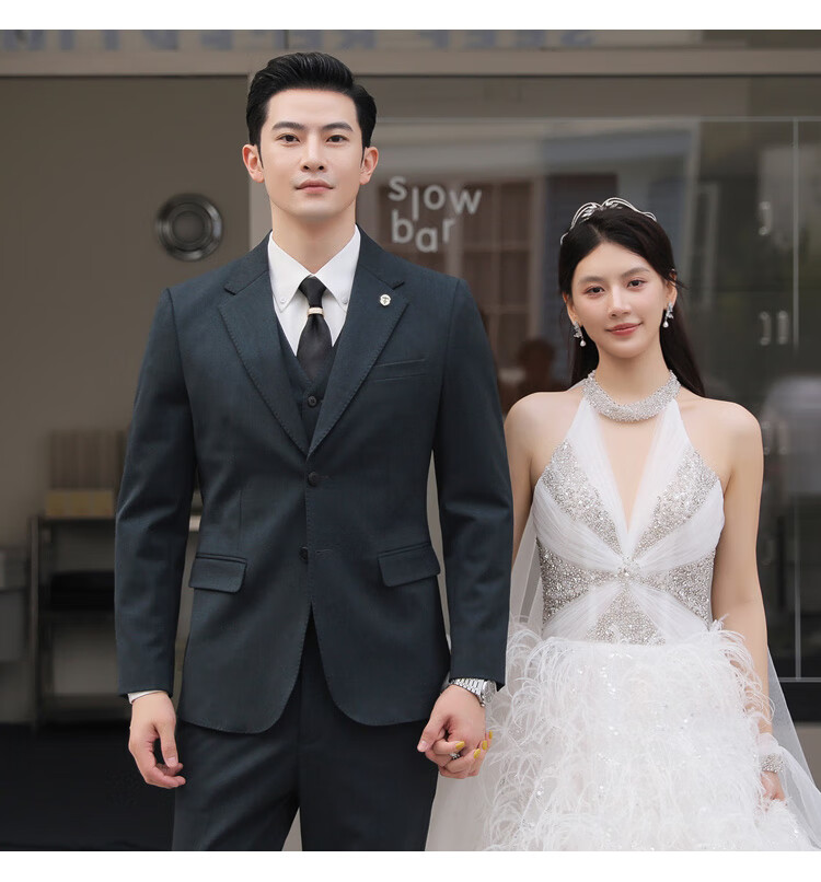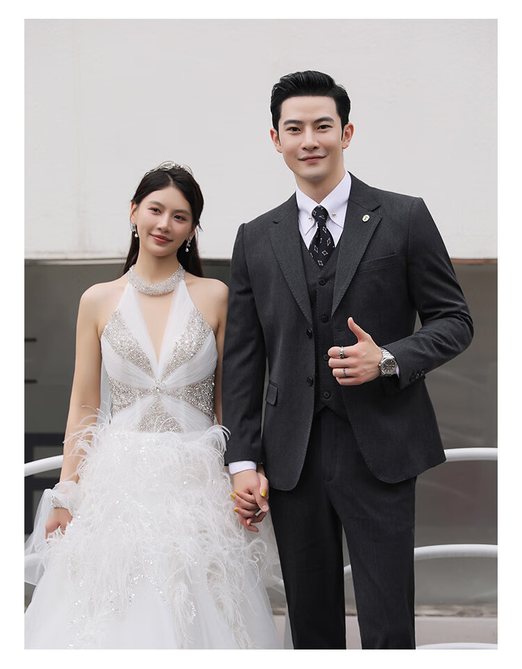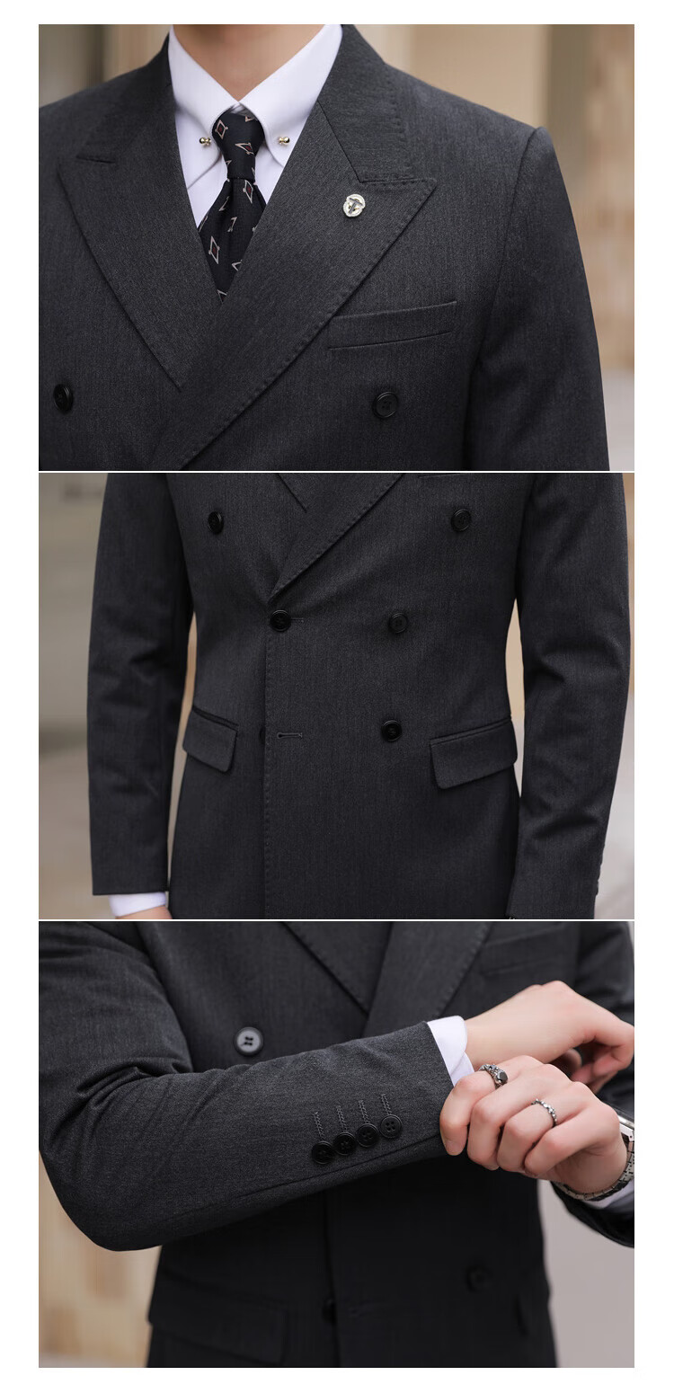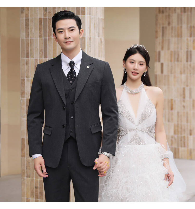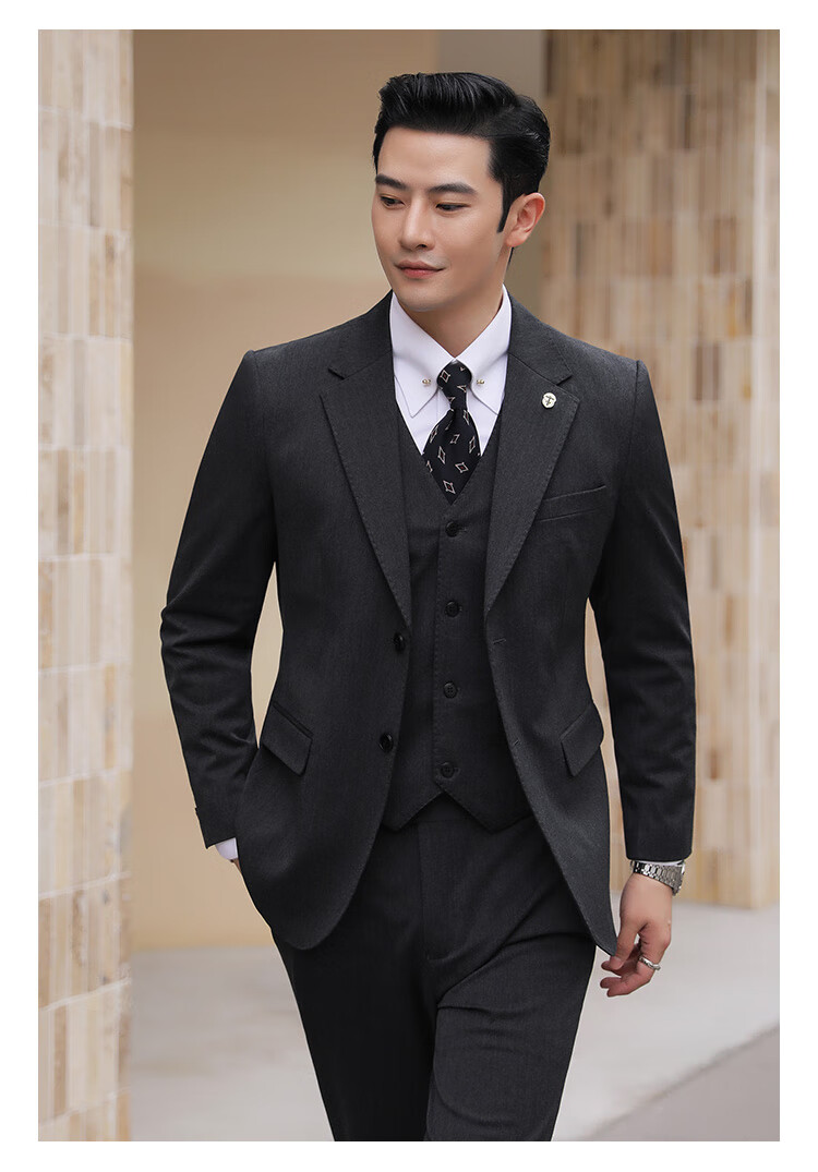 ROMON Wool Suit Suit Men's Business Casual Suit Men's Wedding Groom Groomsman Dress Professional Formal Jacket Single-breasted Dark Gray Three-piece Set Free Tie 2XL