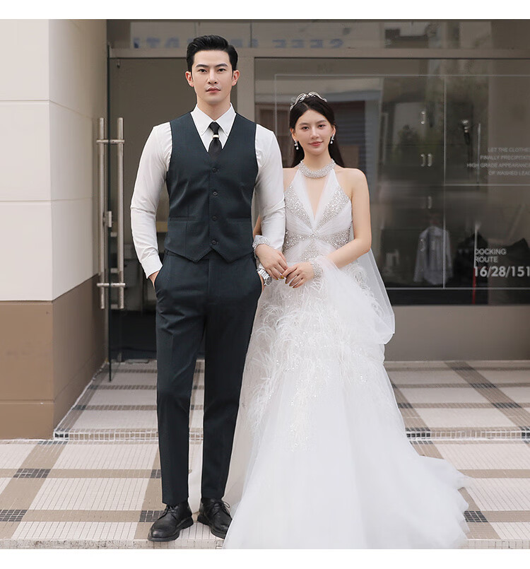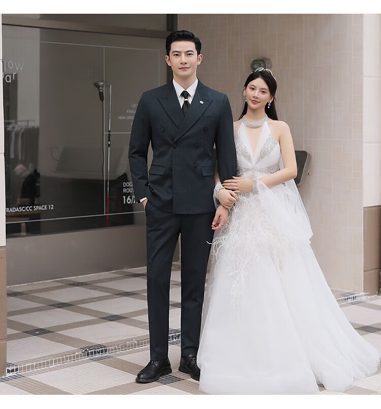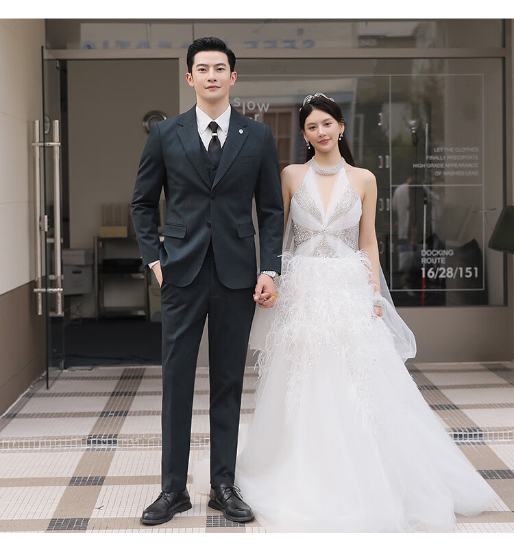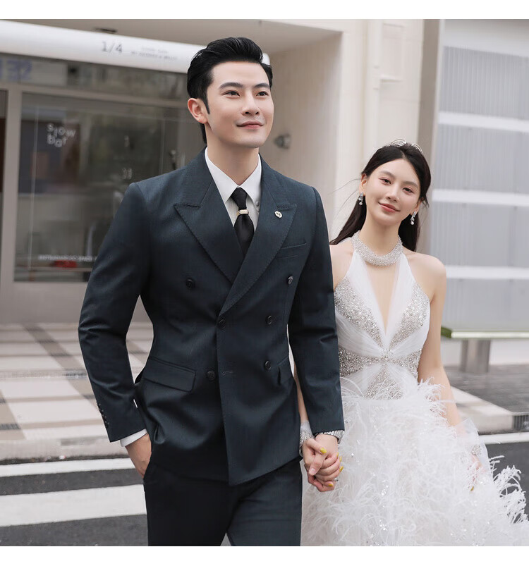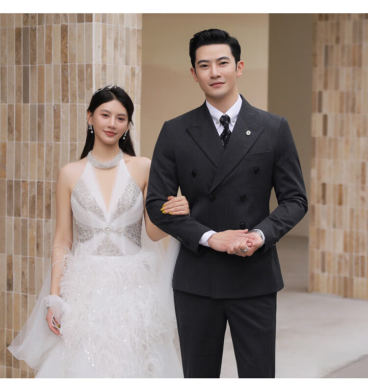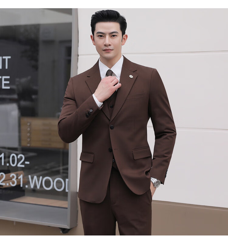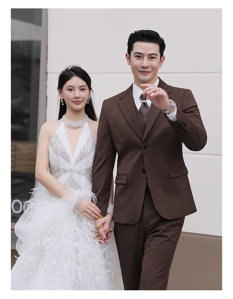 ROMON Wool Suit Suit Men's Business Casual Suit Men's Wedding Groom Groomsman Dress Professional Formal Jacket Single-breasted Dark Gray Three-piece Set Free Tie 2XL