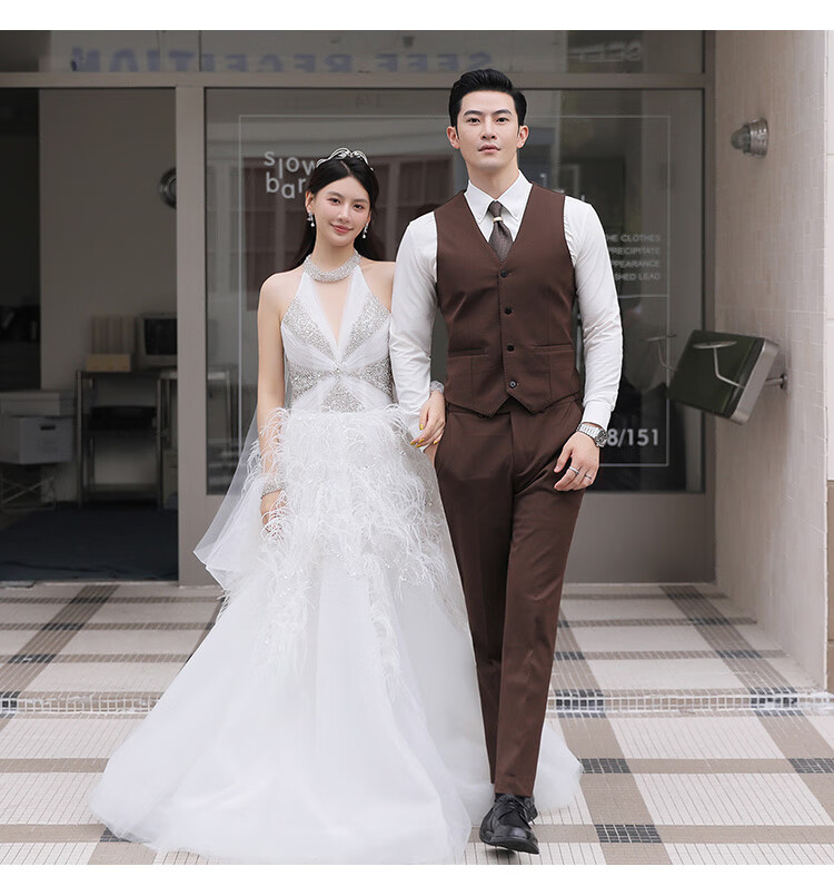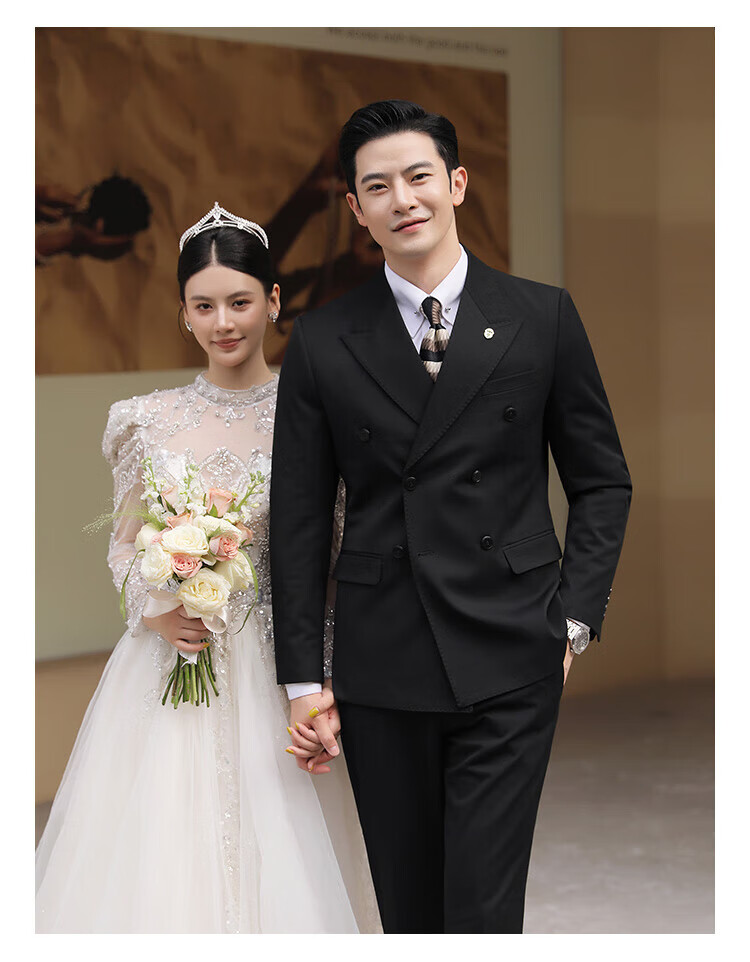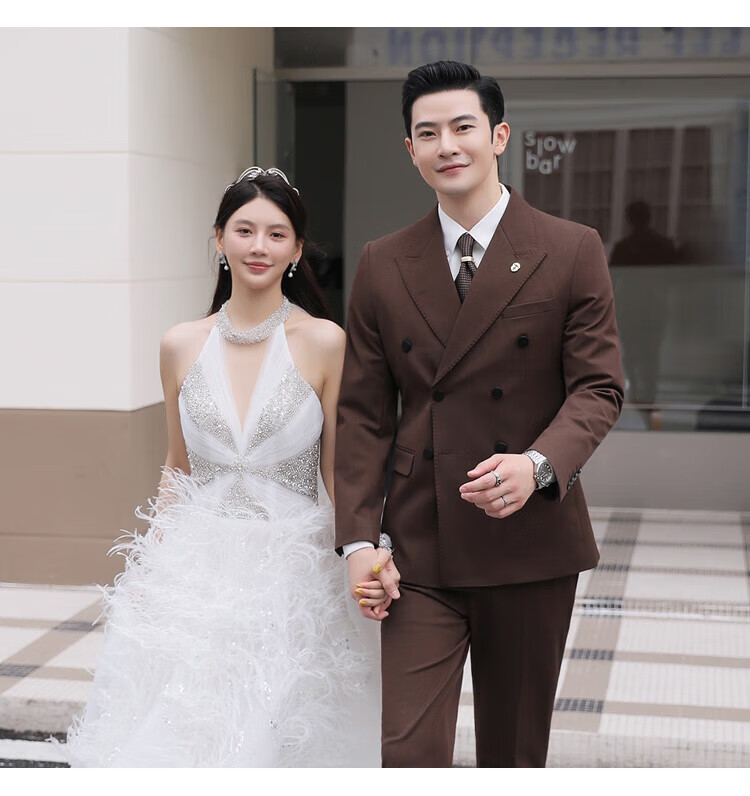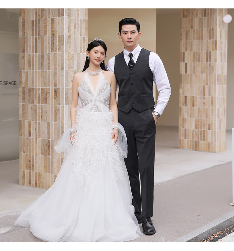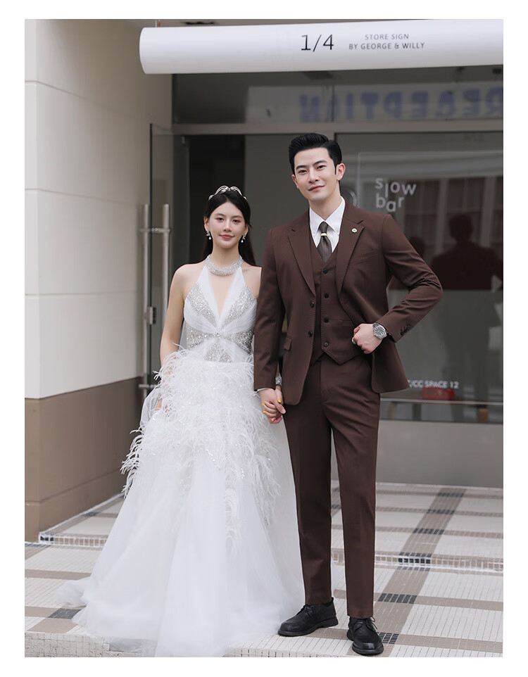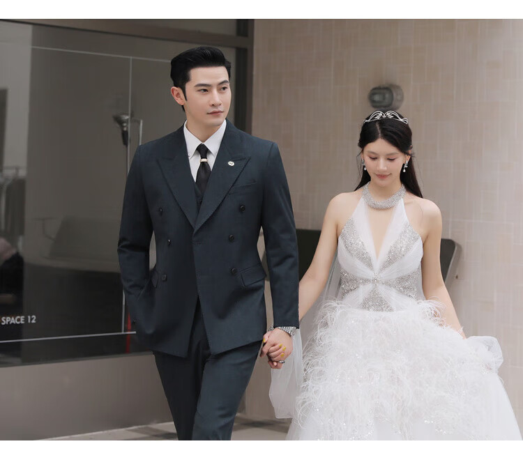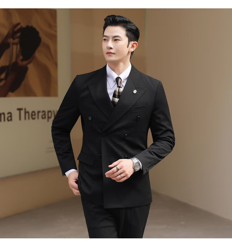 ROMON Wool Suit Suit Men's Business Casual Suit Men's Wedding Groom Groomsman Dress Professional Formal Jacket Single-breasted Dark Gray Three-piece Set Free Tie 2XL