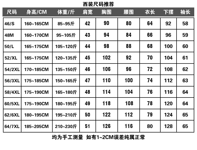 China (cm) 160-165/84-86 165-170 / 88-90 167-172 / 92-96 168-173 / 98-102 170-176 / 106-110