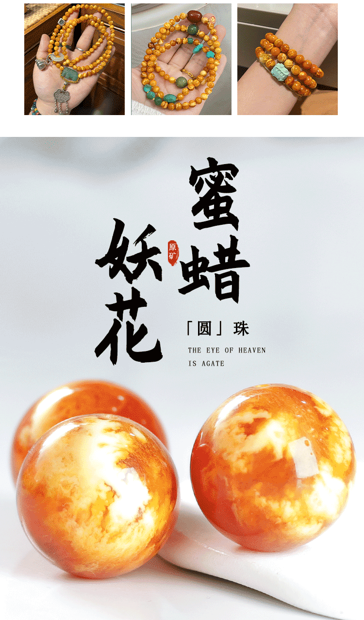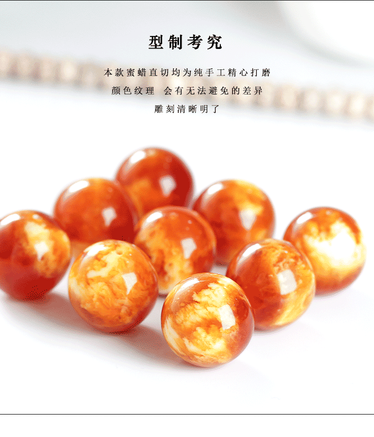 Bixiu Tang Yaohua Beeswax Loose Beads Round Beads Separate Beads with Beads Old Beeswax Single Bracelet Multi-Baby Beads Cultural Toy Accessories Selected Each Yaohua Round Bead 12mm/Single
