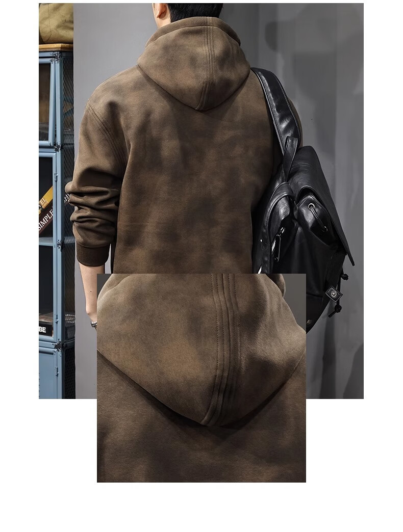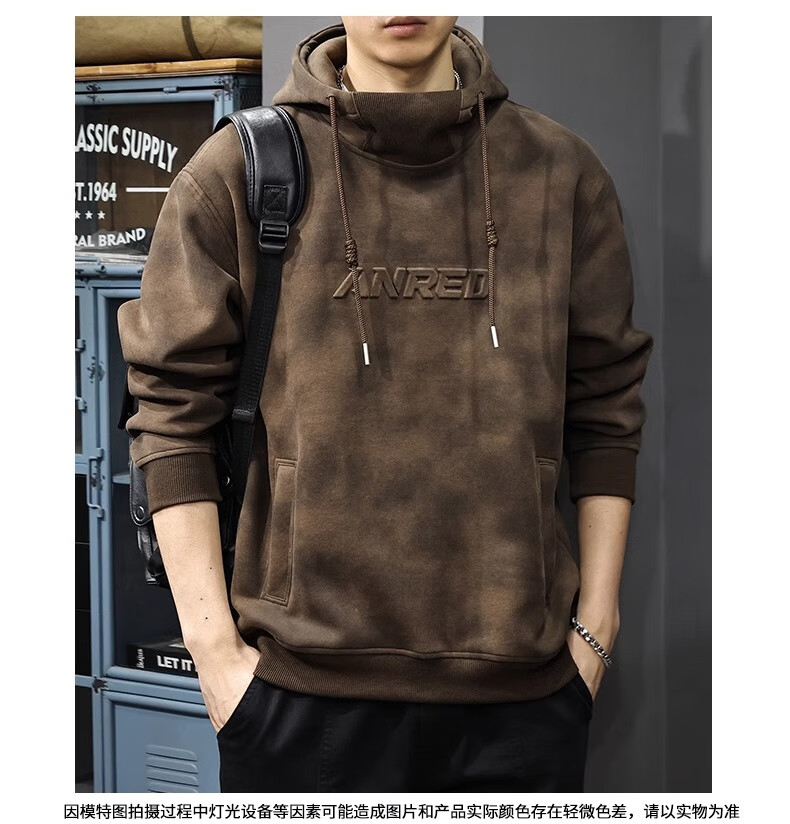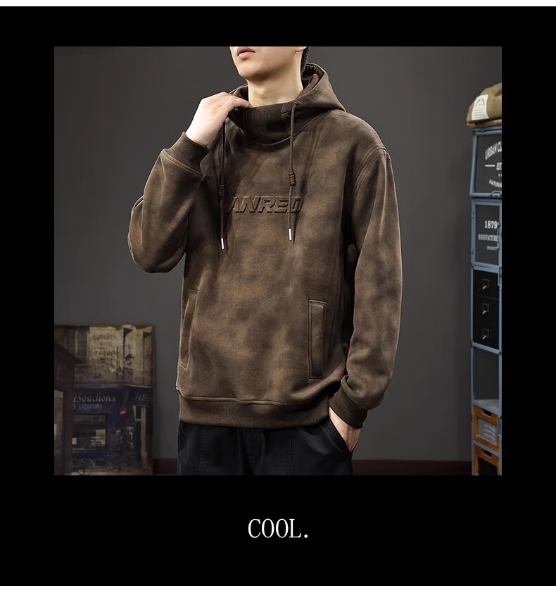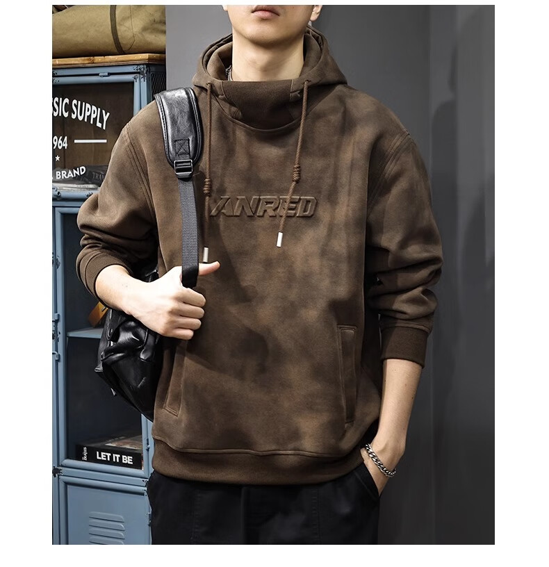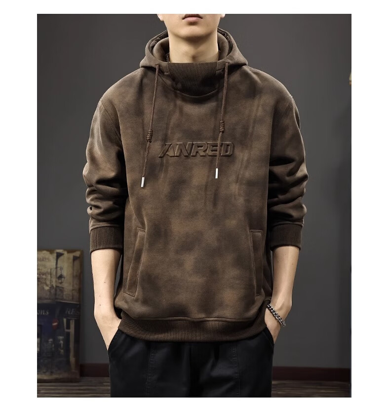 Chaotianshi autumn new style Medela dirty retro hooded sweatshirt men's loose letter stamped autumn and winter thickened long-sleeved jacket dark brown M 100-130Jin Jin equals 0.5 kg