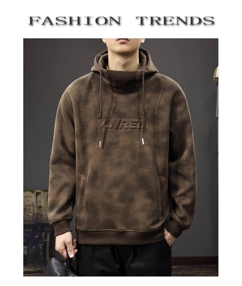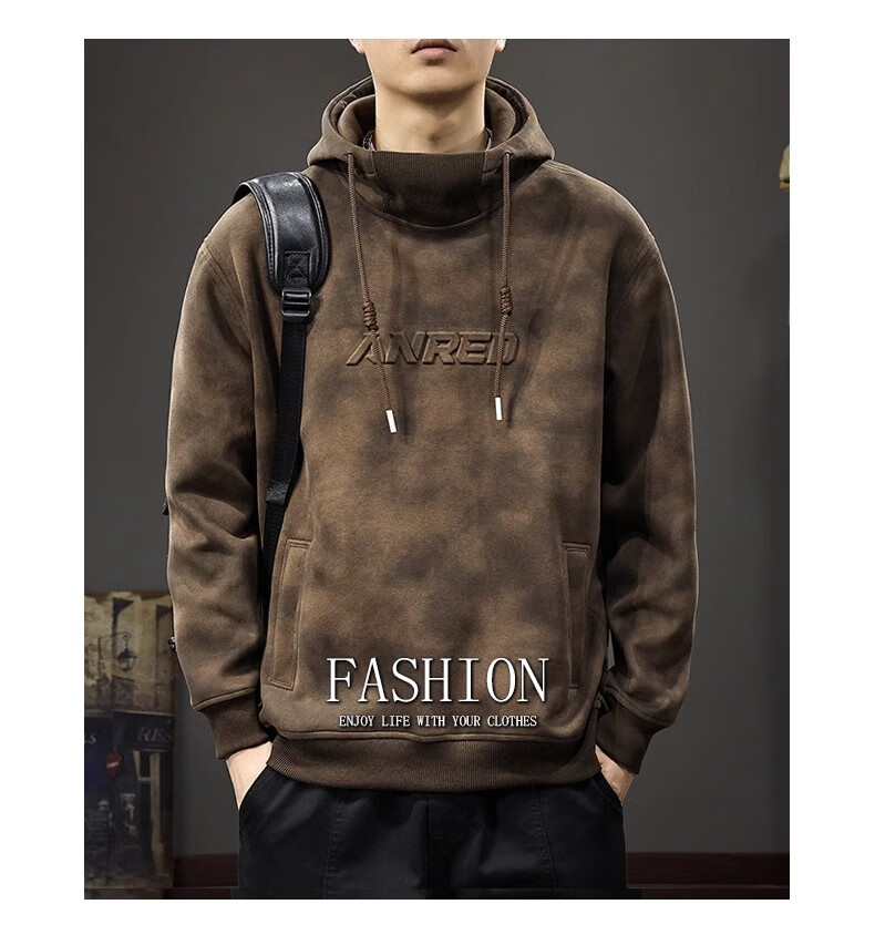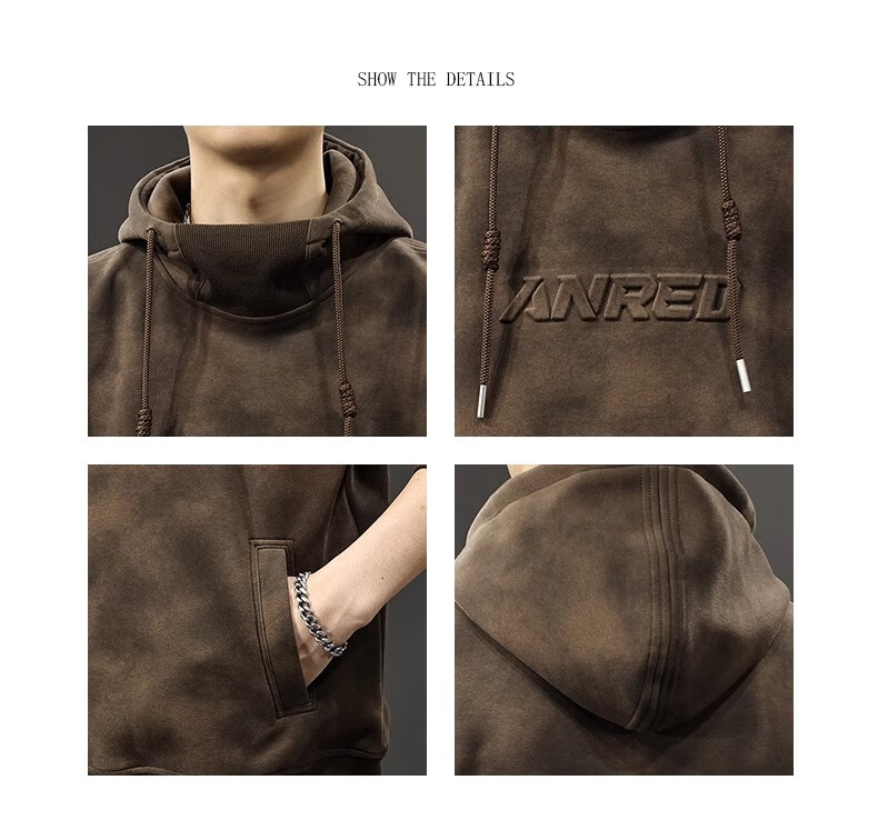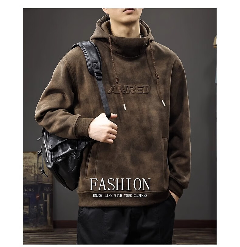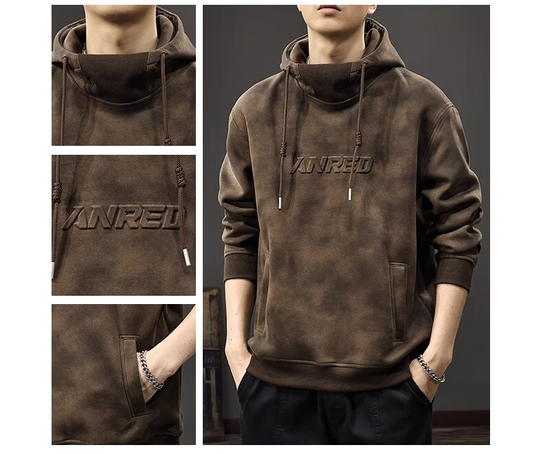 Chaotianshi autumn new style Medela dirty retro hooded sweatshirt men's loose letter stamped autumn and winter thickened long-sleeved jacket dark brown M 100-130Jin Jin equals 0.5 kg