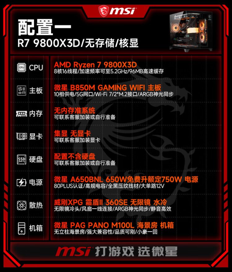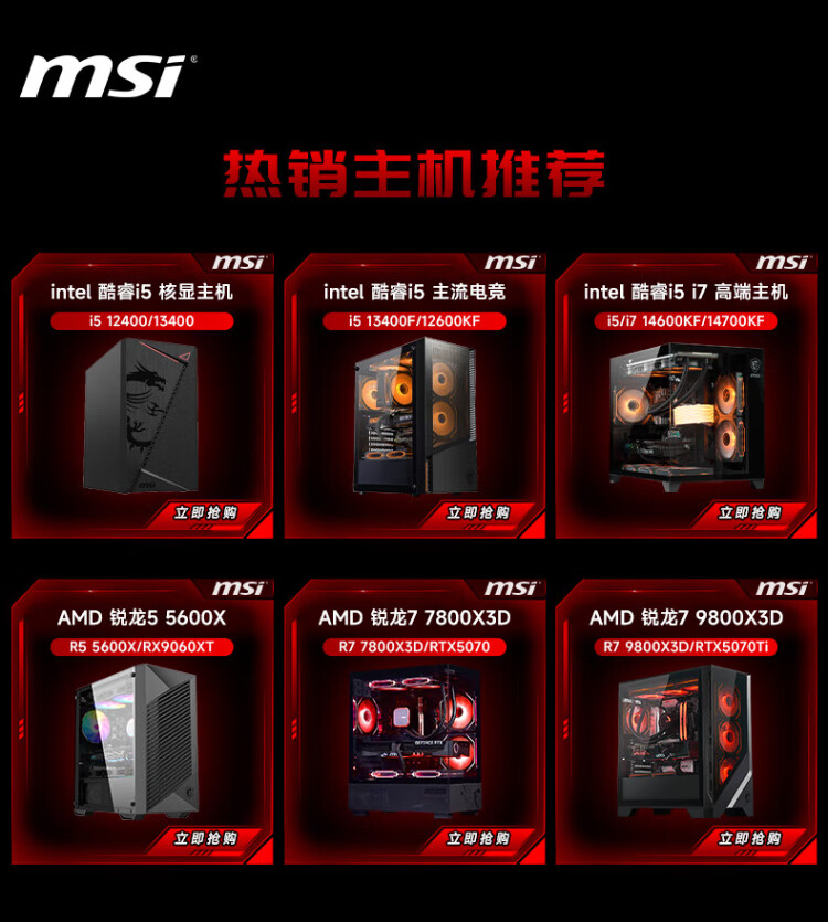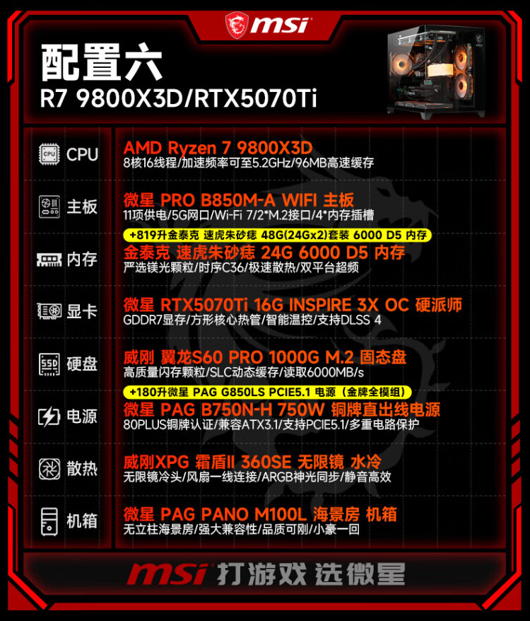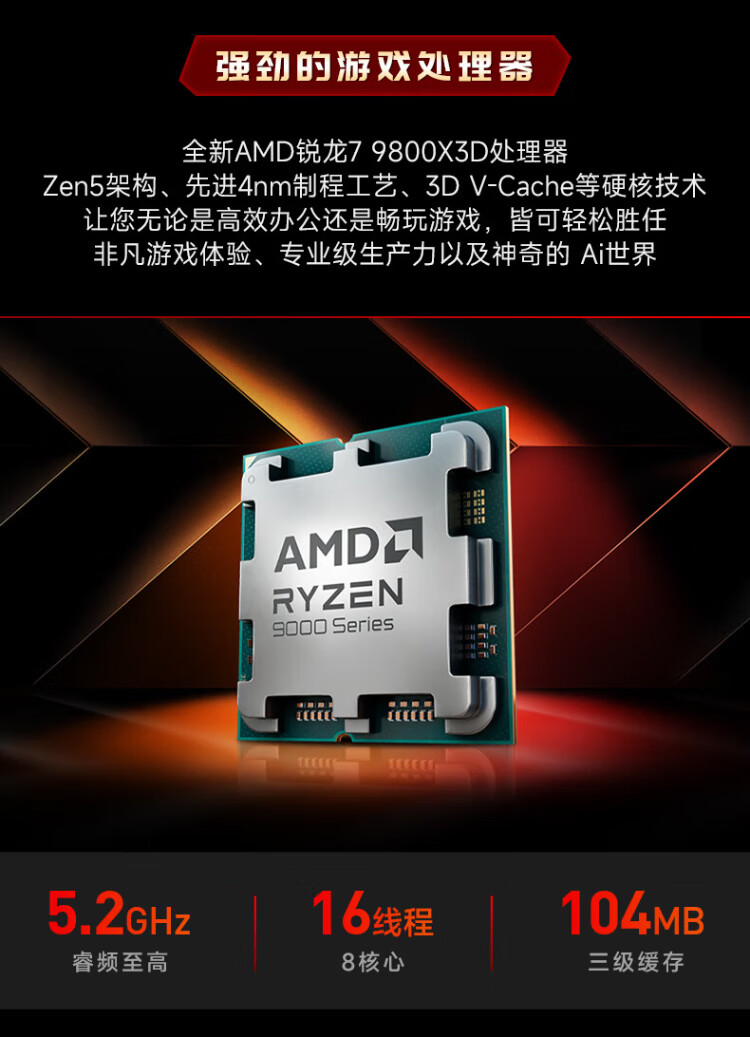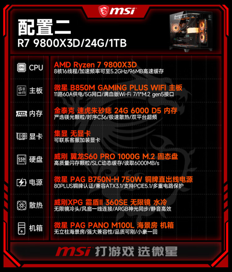 MSI AMD Ryzen 9800X3D/9070XT/5070Ti/5080 desktop assembly computer thousand frames e-sports game design modeling rendering host DIY complete machine configuration two 9800X3D丨24G丨1T丨core display