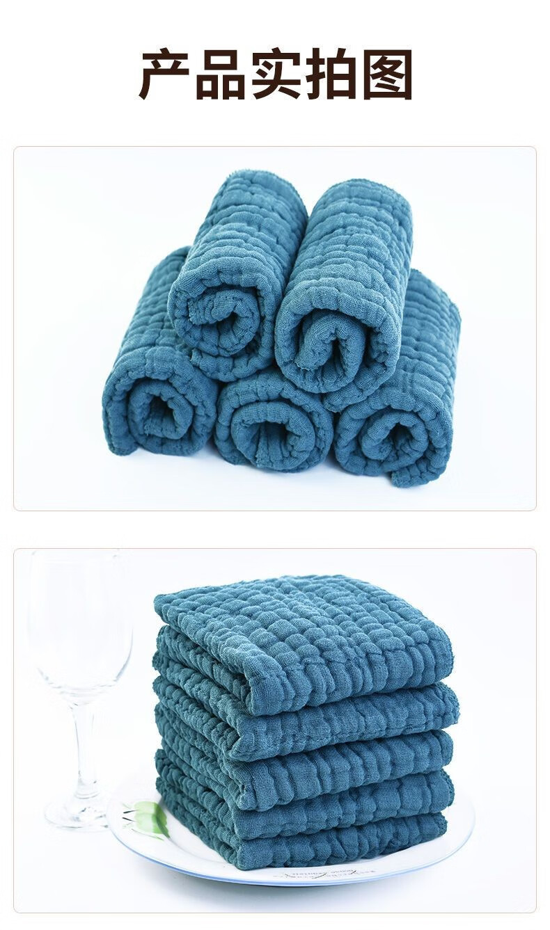 Pure cotton gauze dishwashing rag, lint-free kitchen table wiping glass scouring pad, 100% cotton absorbent coffee color (pack of 5) 30*30