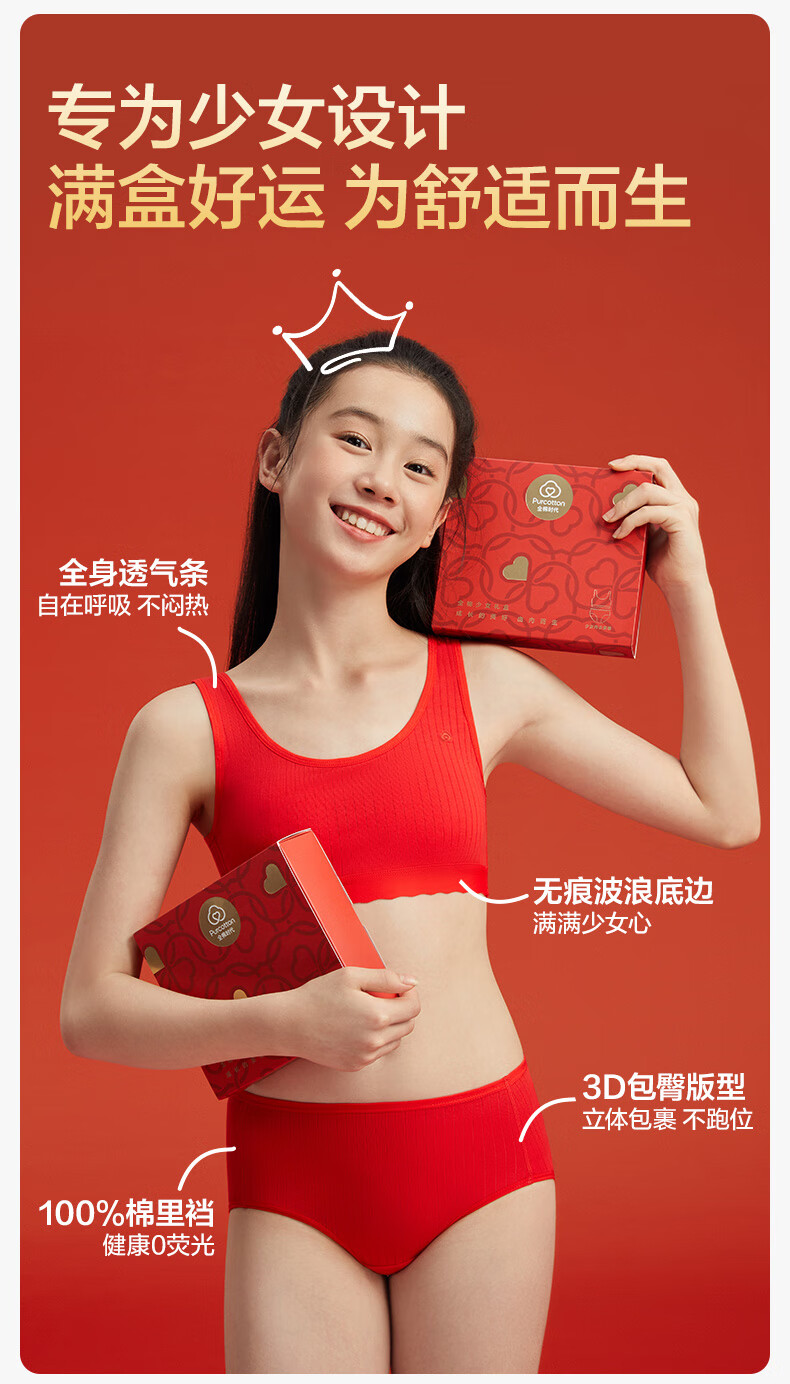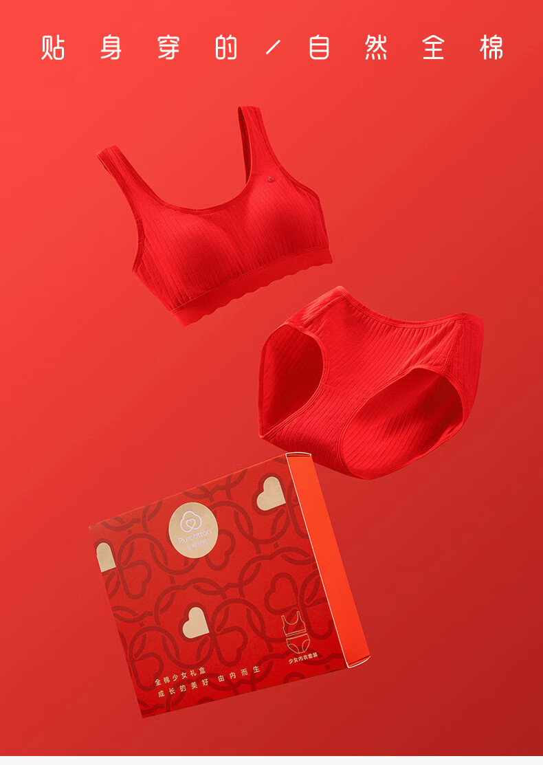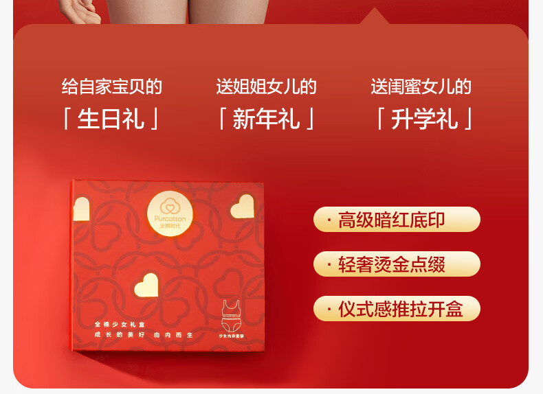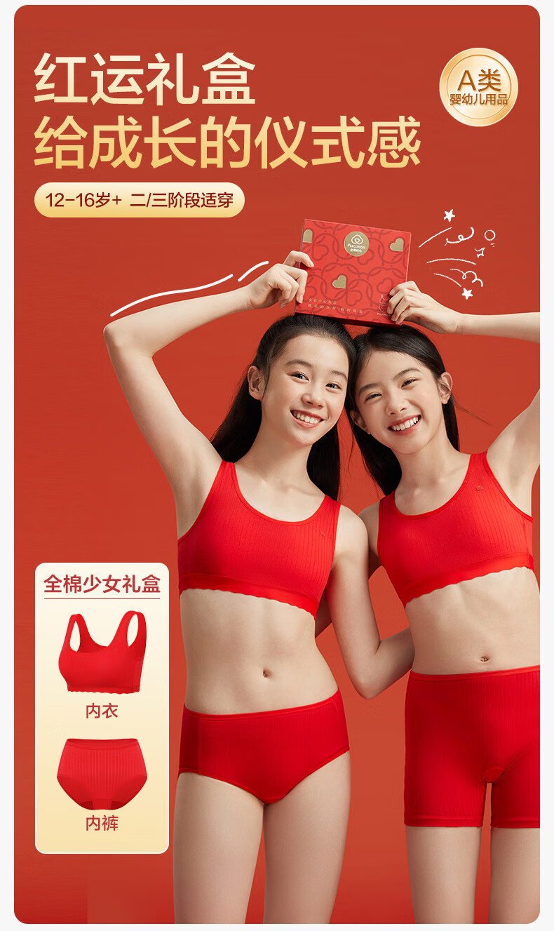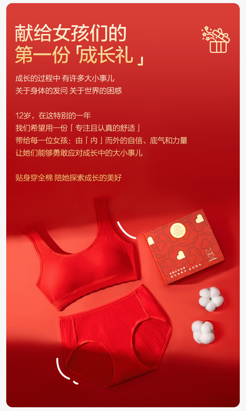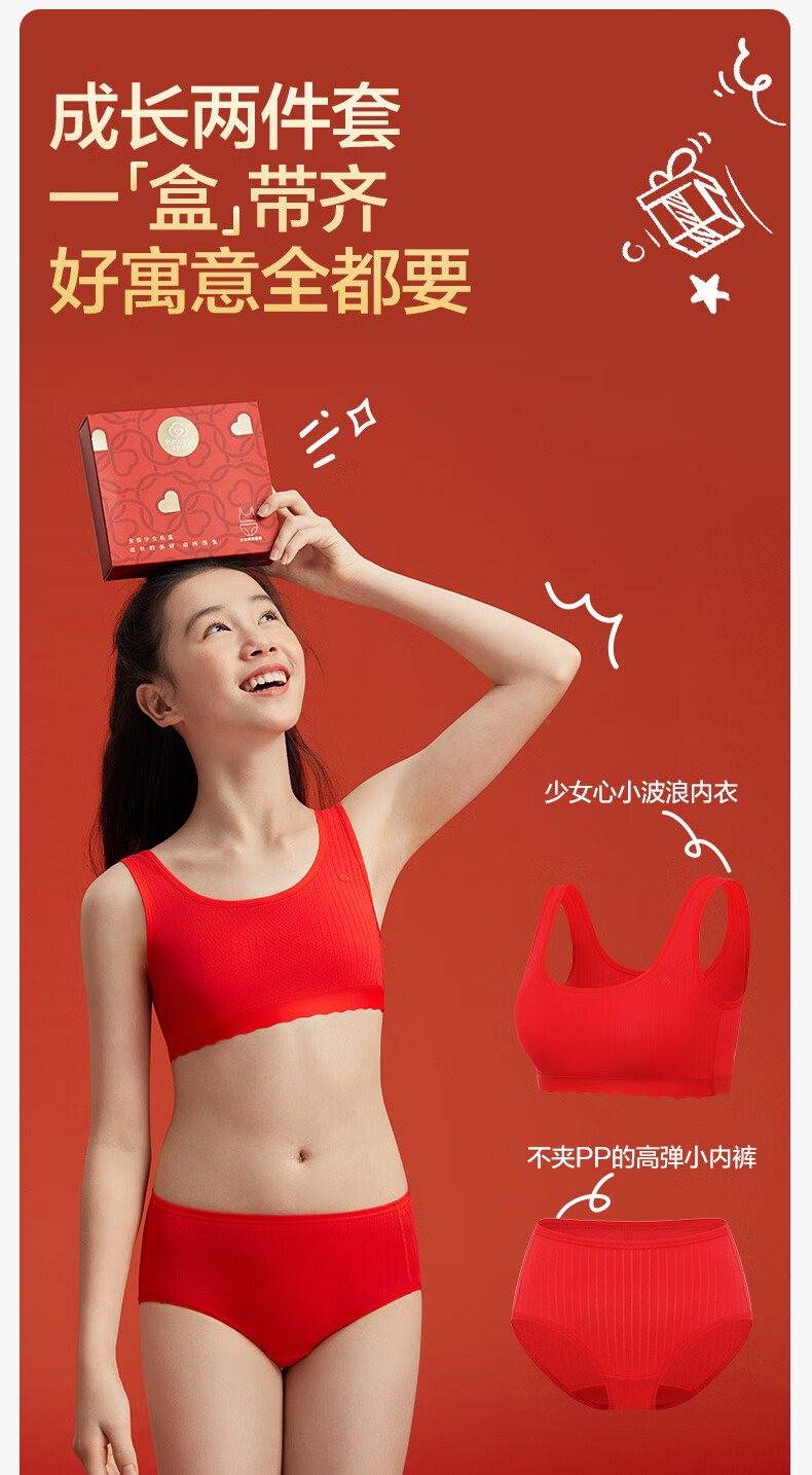 Cotton era children's gift girl underwear set second and third stage underwear gift box set happiness red zodiac red horse year underwear + bra happiness red 1 piece gift box 1 set 165