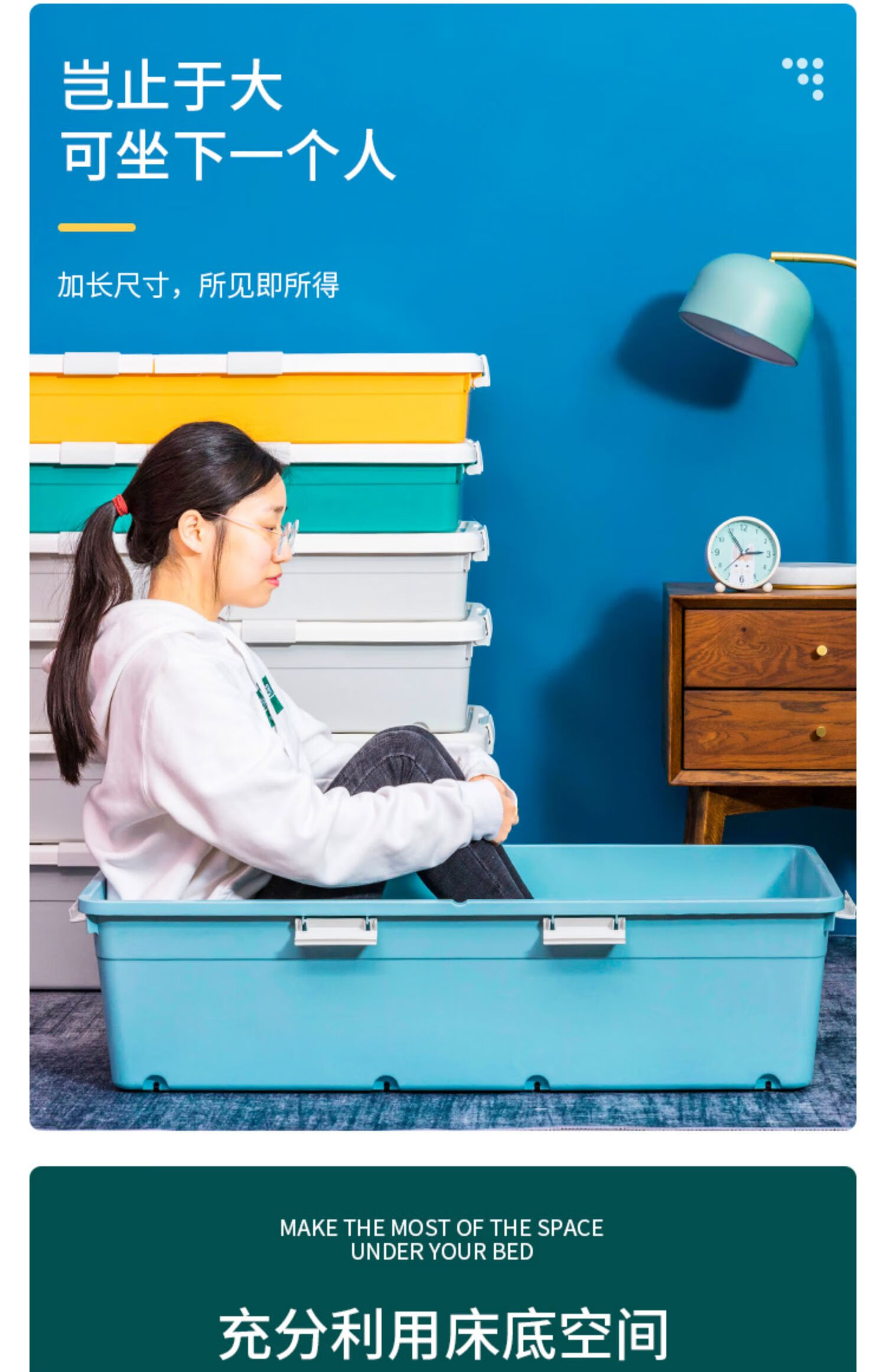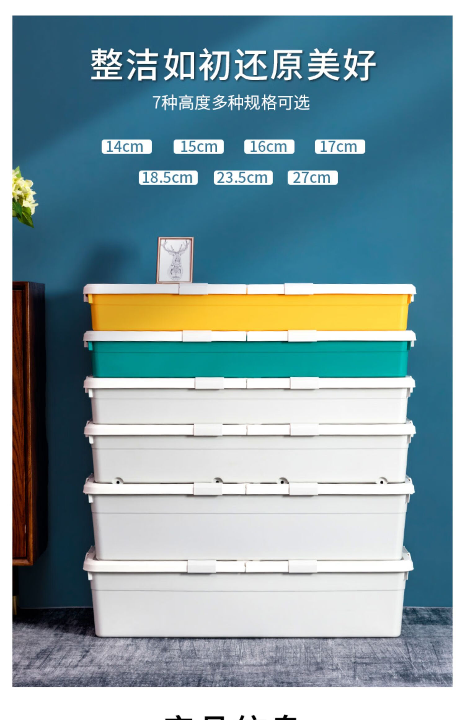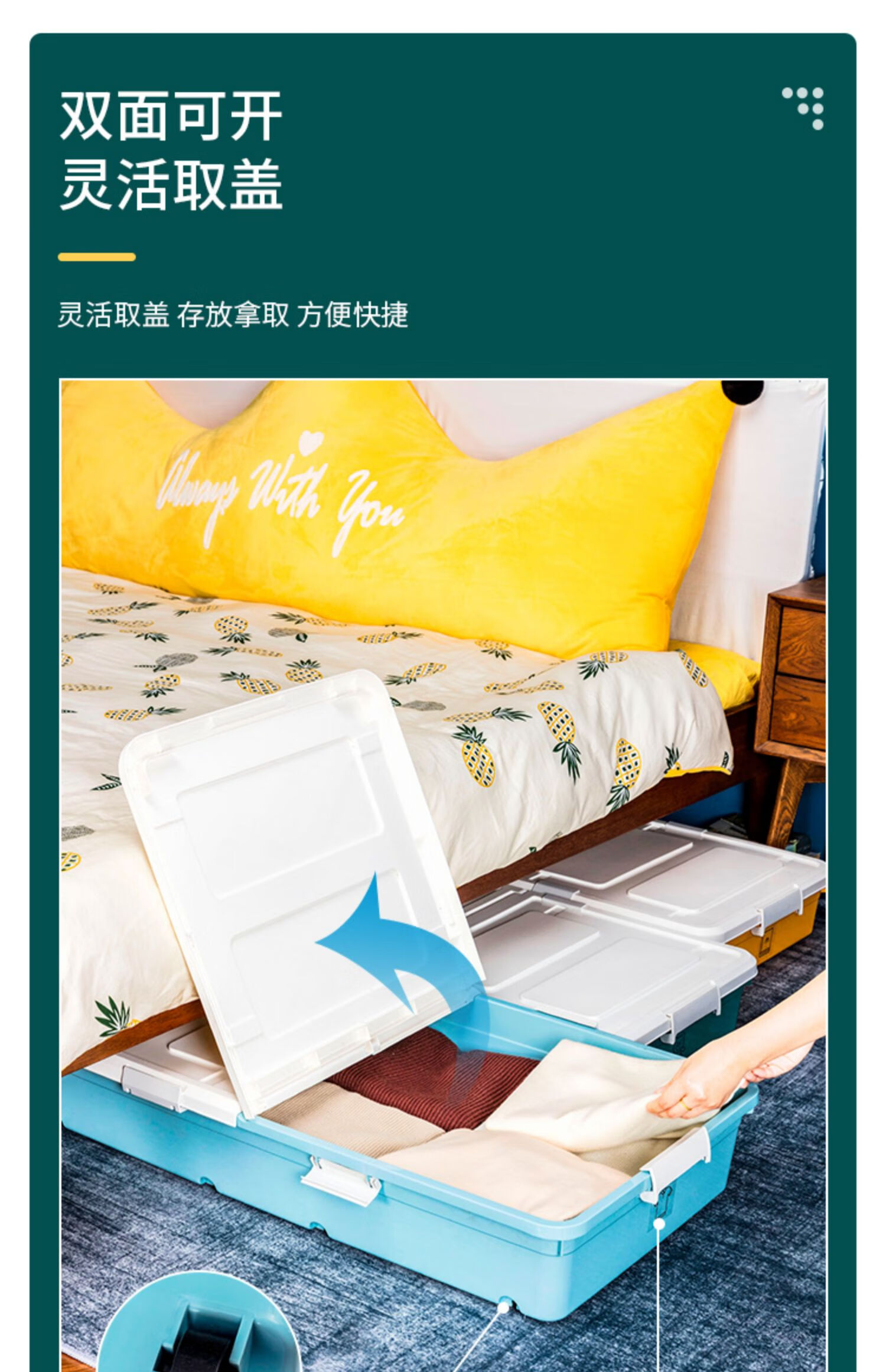 JOKOOAN bed storage box pulley quilt clothing storage box organization artifact flat plastic sealed under bed drawer large size 18.5cm high extended light gray wheel