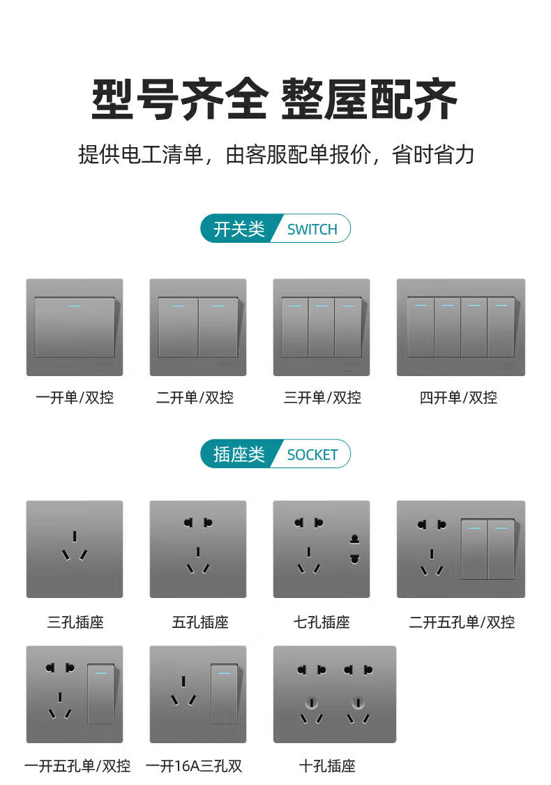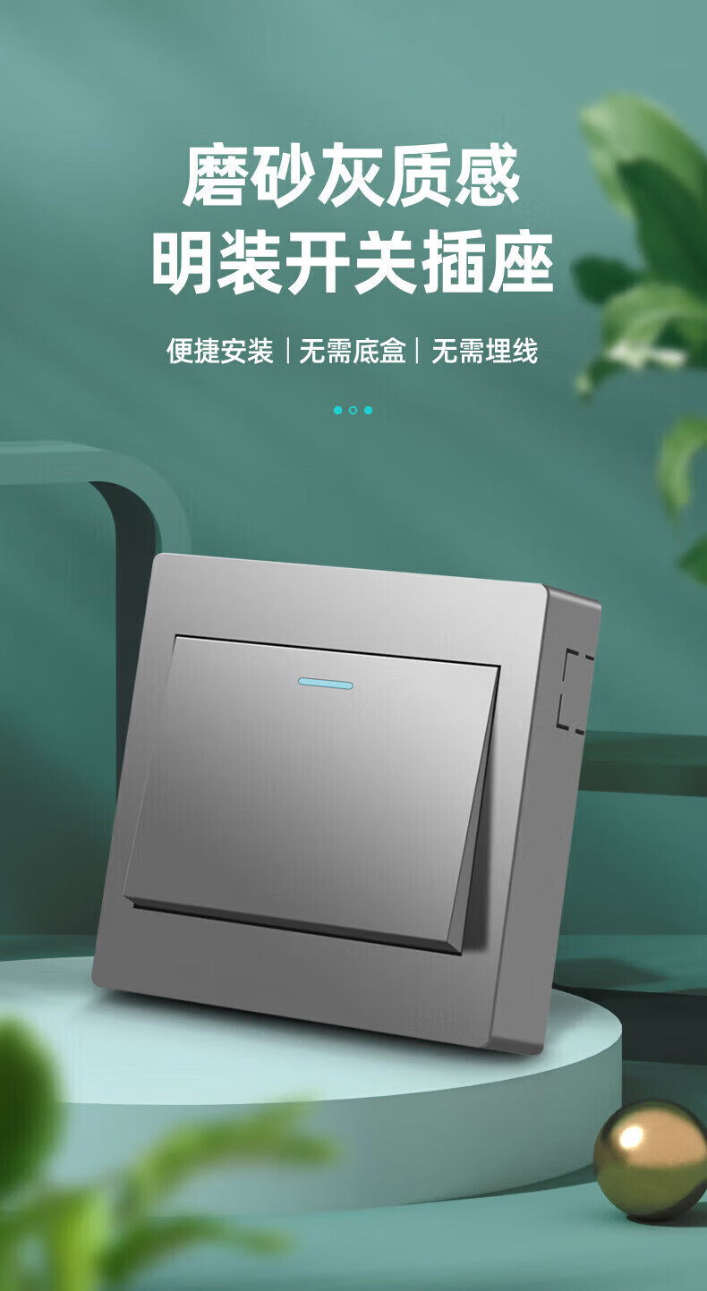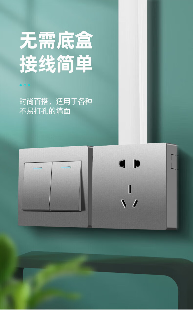 International electrician type 86 surface-mounted small panel gray household wall one-open single-control switch high-power 16A three-hole air conditioning water heater socket panel surface-mounted small panel one-open single control switch