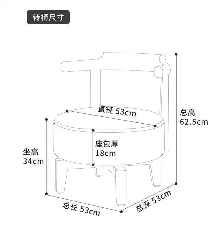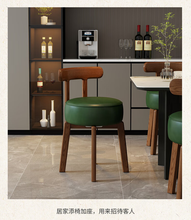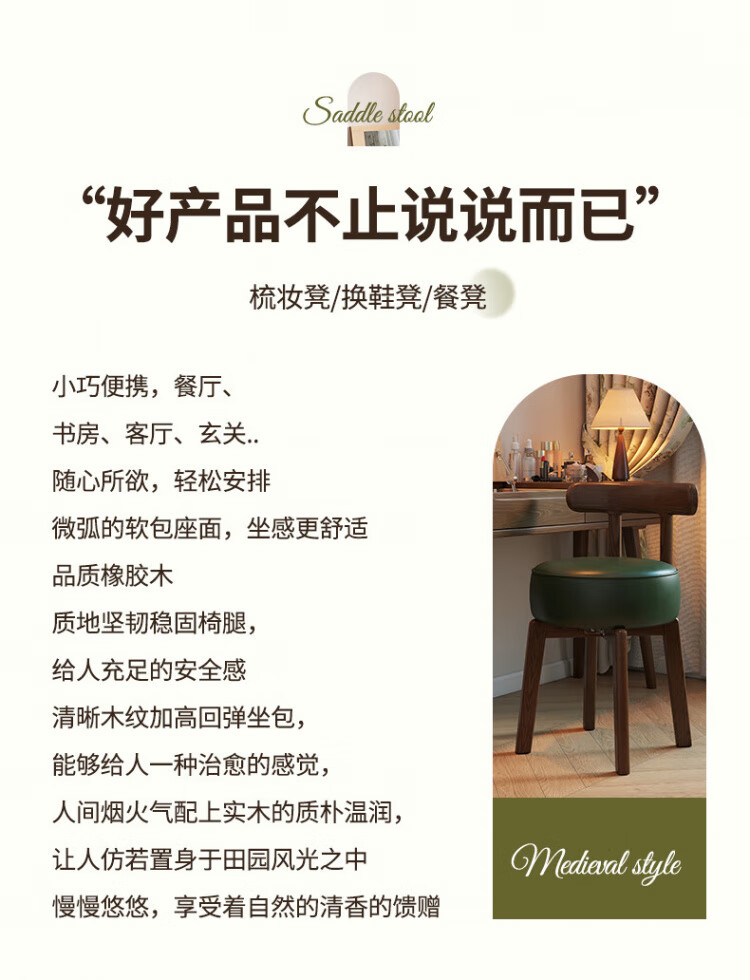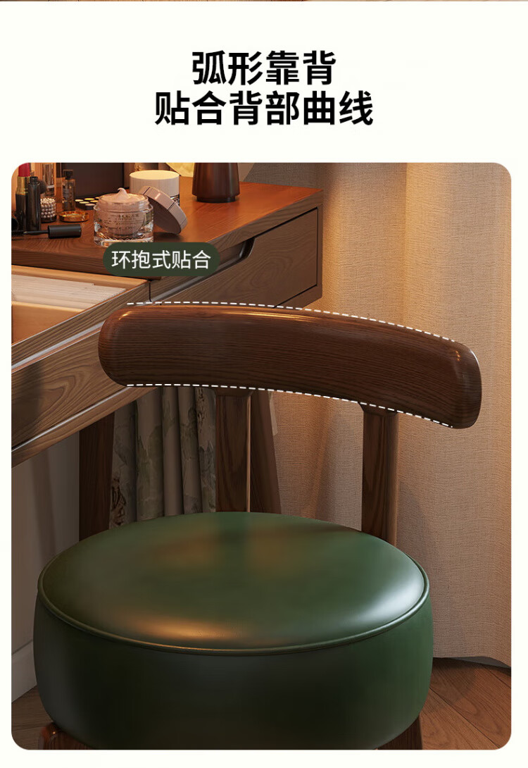 Menile mid-century style dressing chair solid wood rotatable makeup chair girls bedroom dressing table back chair retro stool light luxury solid wood walnut color frame + brown rotatable