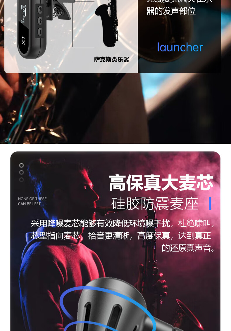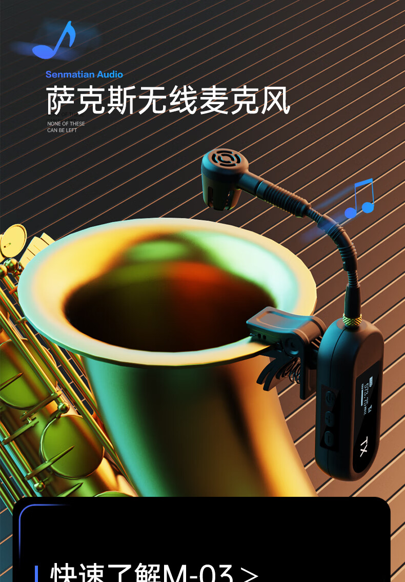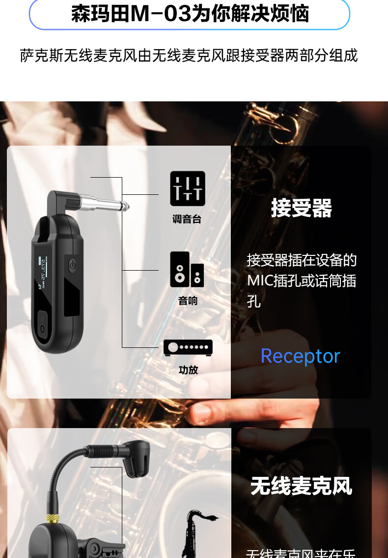 Semimartian M-03 saxophone dedicated wireless microphone instrument microphone suona clarinet trumpet large instrument microphone professional stage performance outdoor audio performance performance pickup M03 saxophone wireless microphone (one to one) + 300 Bluetooth audio official standard configuration