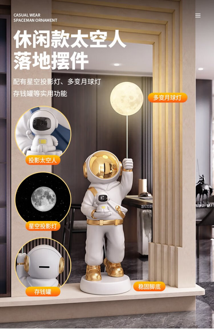 Chanyu Astronaut Astronaut Large floor-standing ornament next to the TV cabinet Living room decoration Light luxury housewarming gift Star Projection Astronaut-Platinum