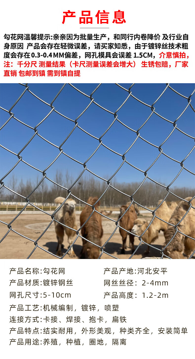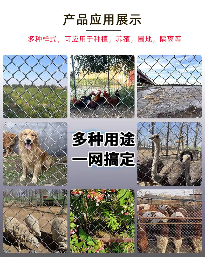 Hot-dip galvanized chain link fence is durable, breeding wire mesh, chicken, cattle and sheep fence protection net is rust-resistant and corrosion-resistant. Hot-dip galvanized chain link fence 1.2 high 2.0 thick 8 cm hole 30 meters