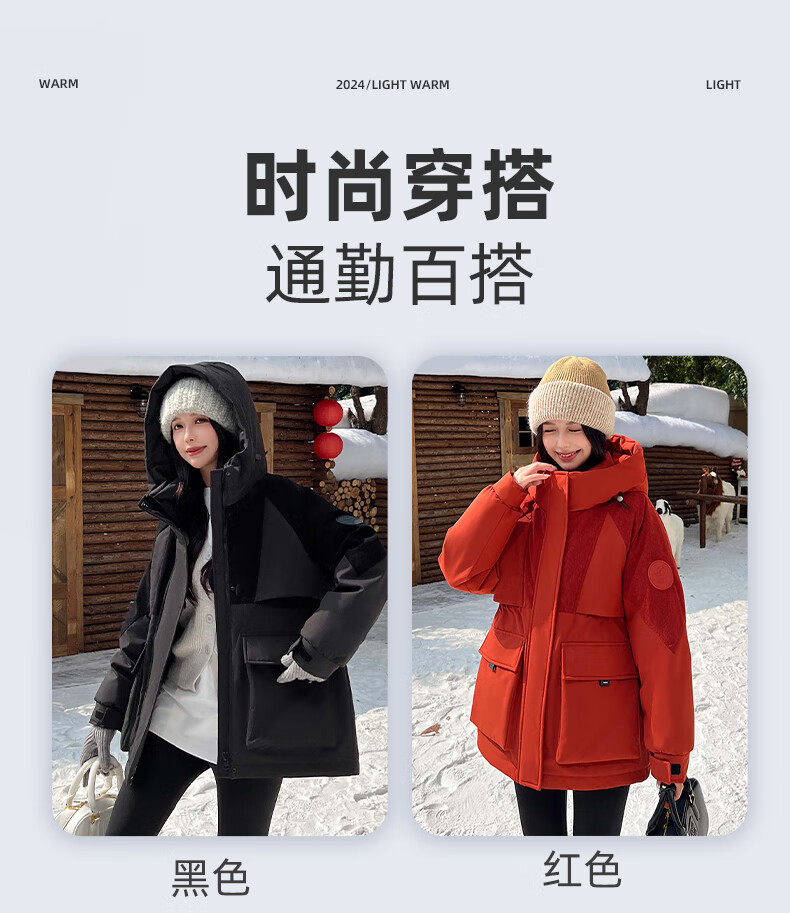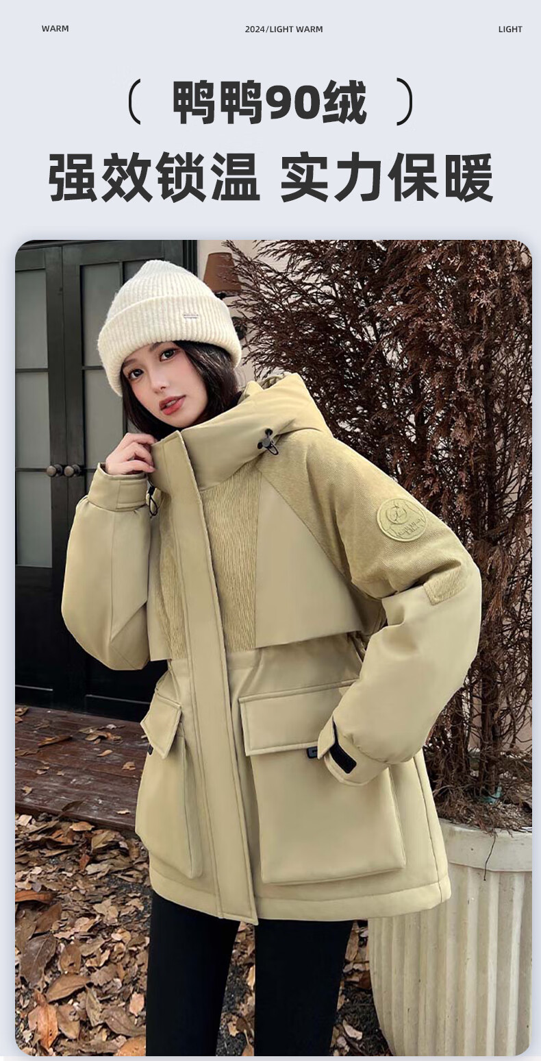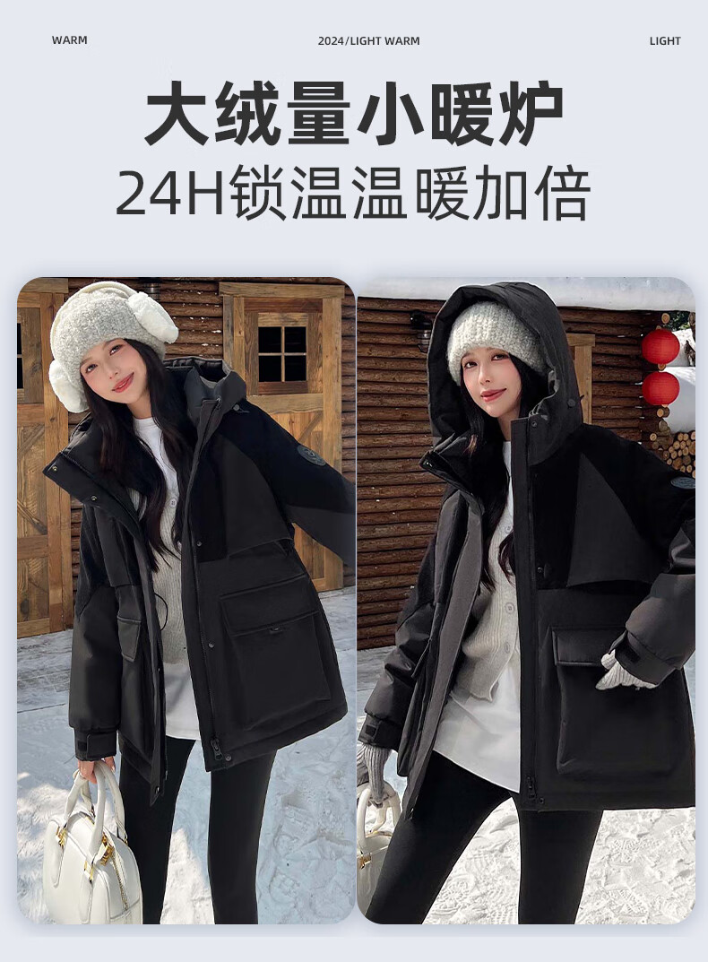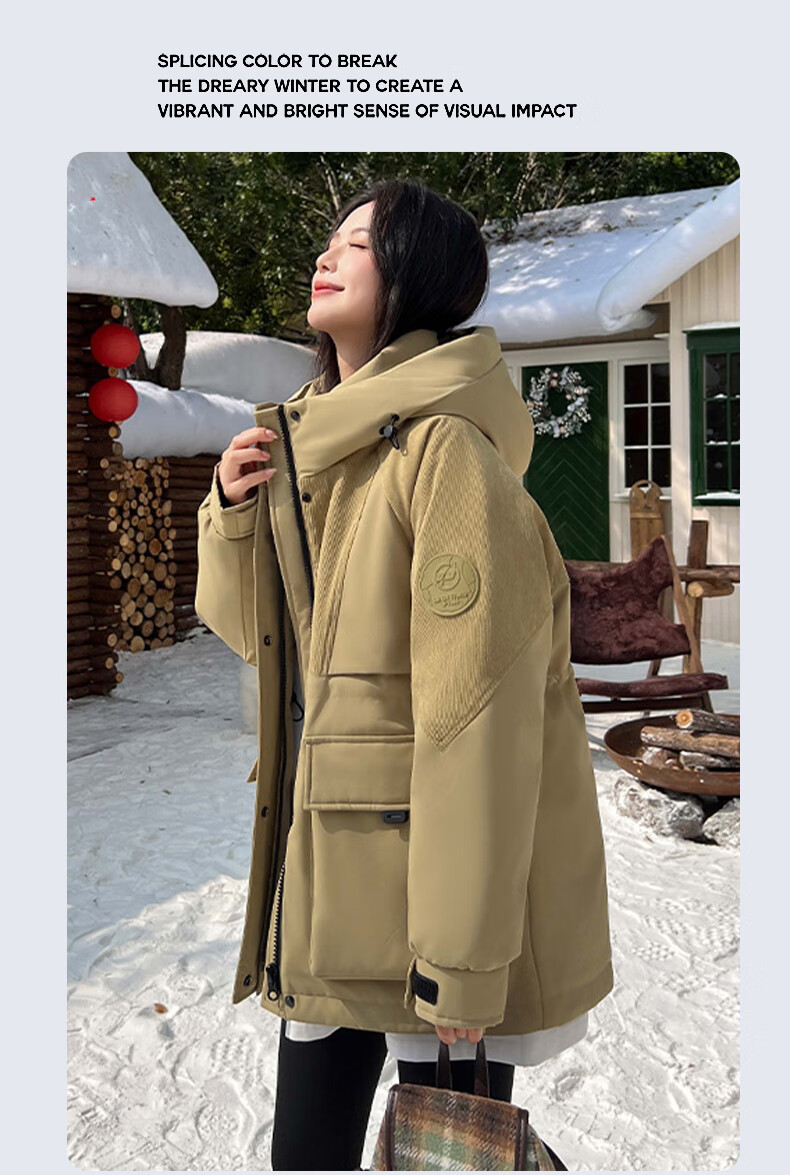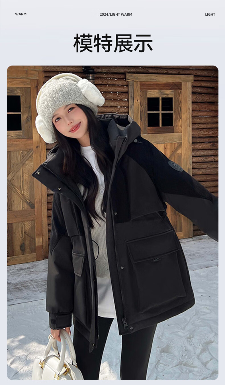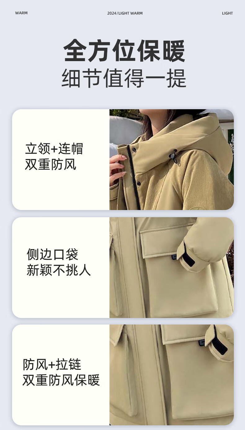 YAYA Down Jacket Women's Medium Long 2024 Winter New Fashion Outdoor Windproof Hooded Casual Warm Jacket YX Black L 165