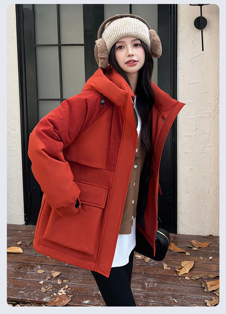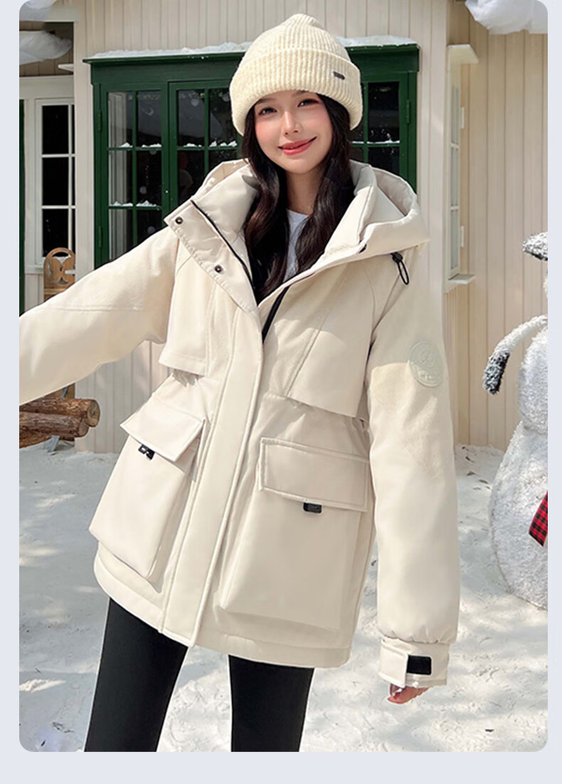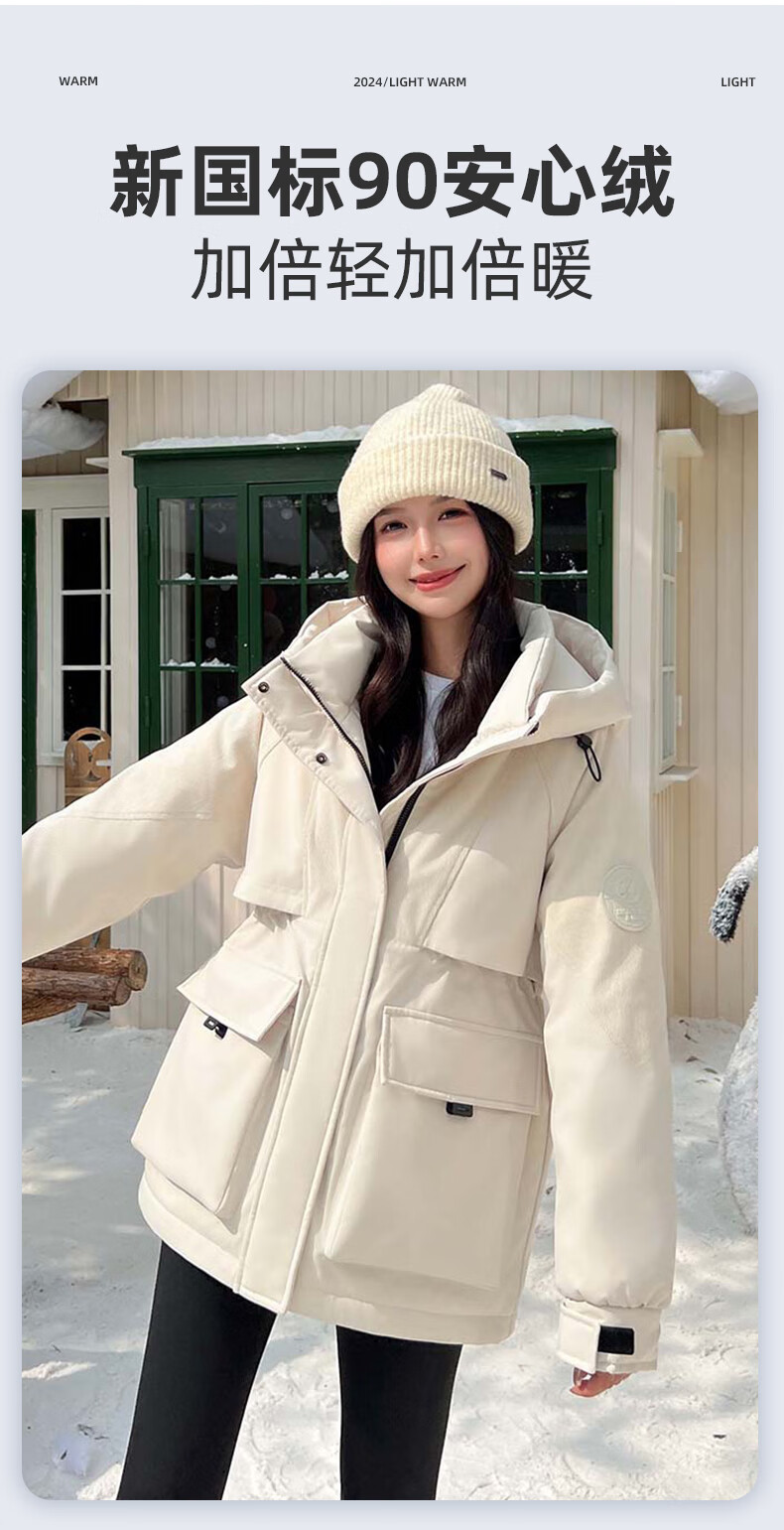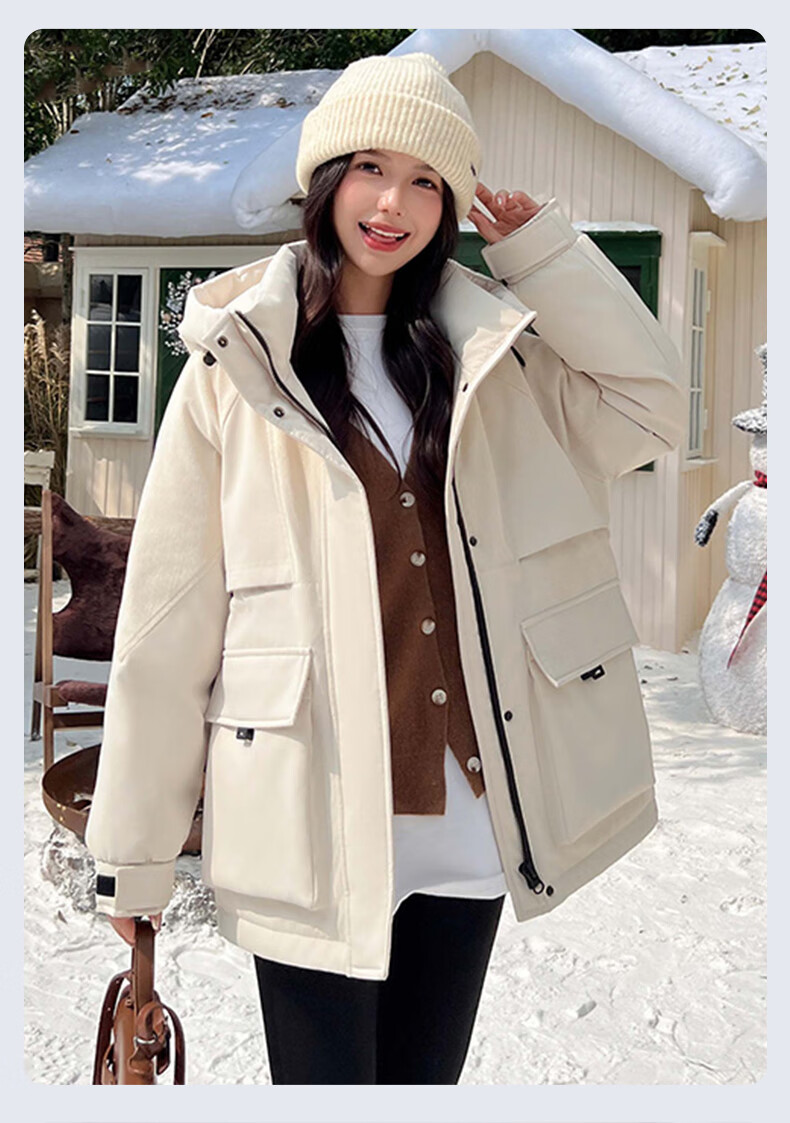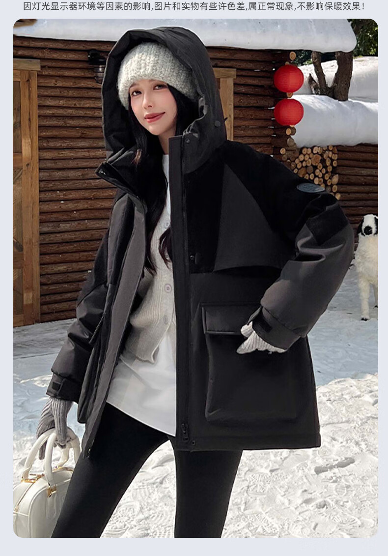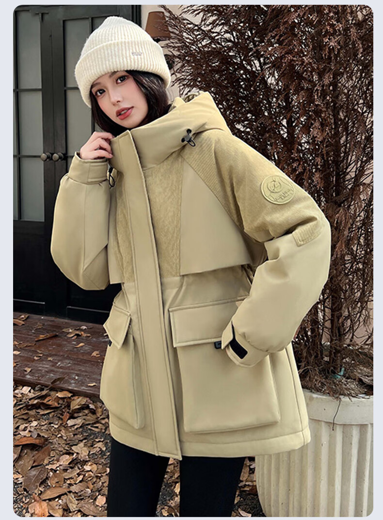 YAYA Down Jacket Women's Medium Long 2024 Winter New Fashion Outdoor Windproof Hooded Casual Warm Jacket YX Black L 165