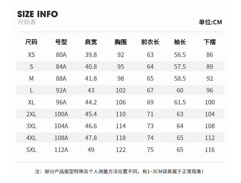 China (cm) 160-165/84-86 165-170 / 88-90 167-172 / 92-96 168-173 / 98-102 170-176 / 106-110