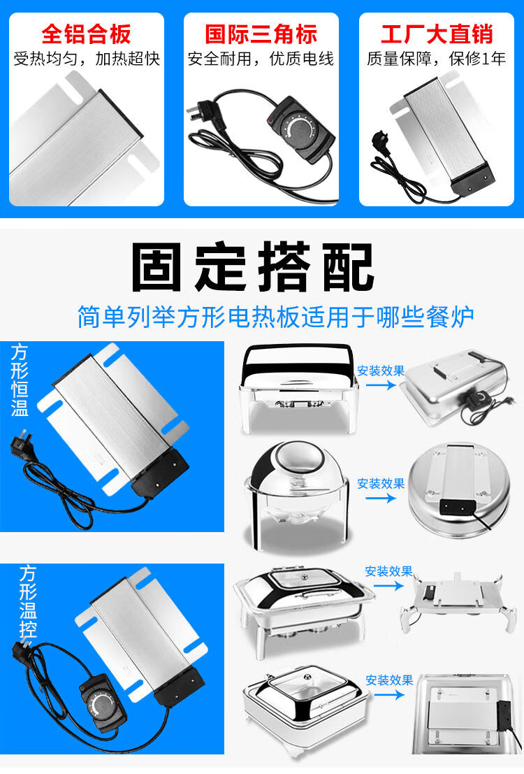 Dining stove electric heating plate buffet Buffy stove heating plate square electric heating plate milk tripod spring temperature control heating cup square temperature control electric heating plate / invoice can be issued