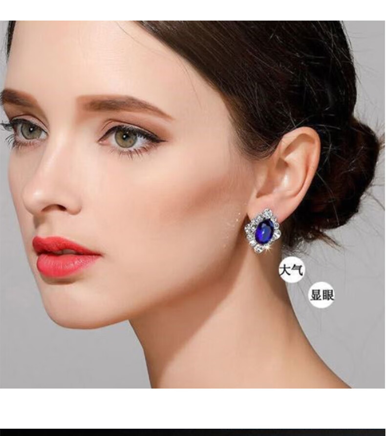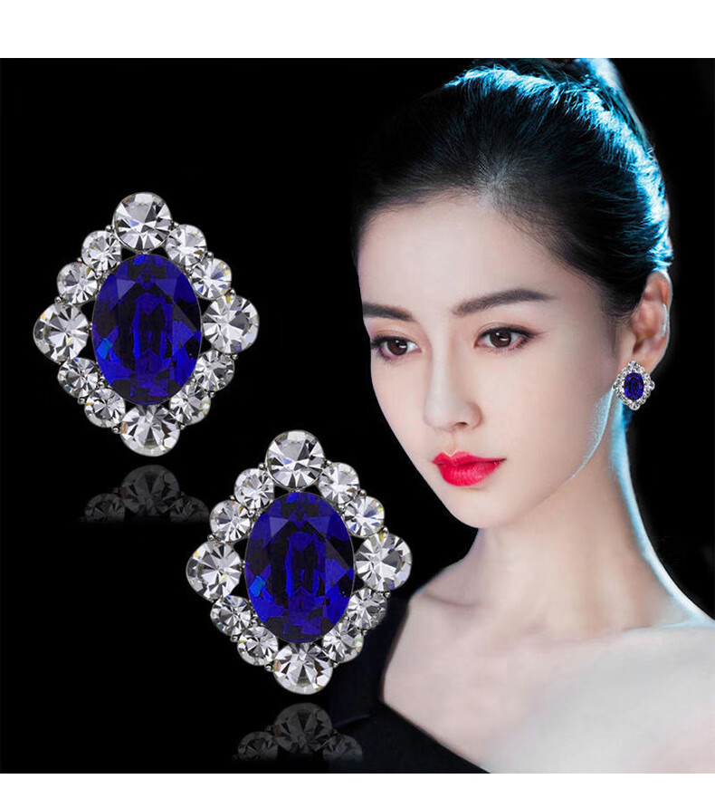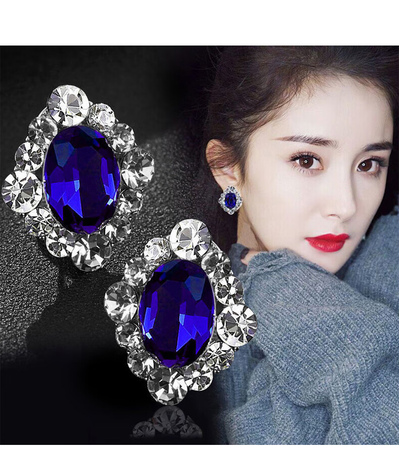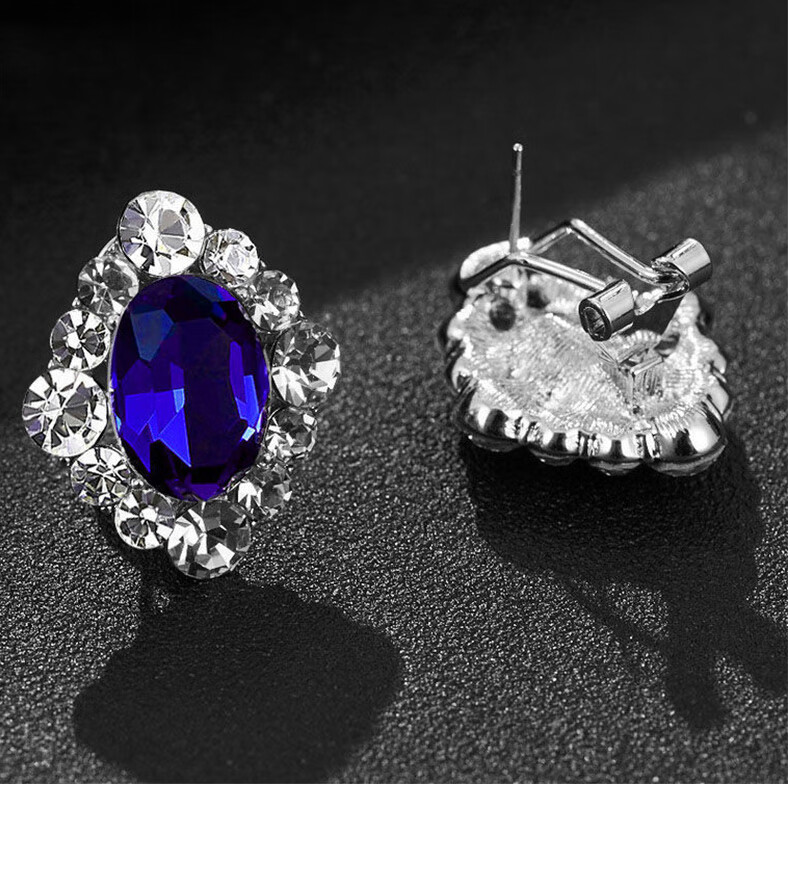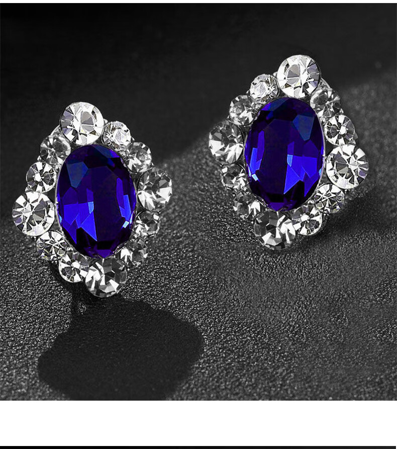 Sapphire earrings French women's high-end temperament silver light luxury earrings 2025 sapphire crystal