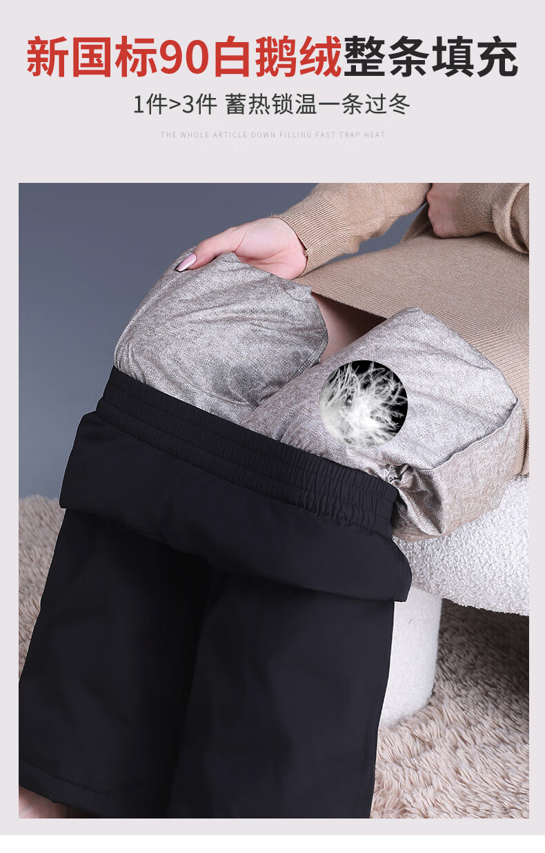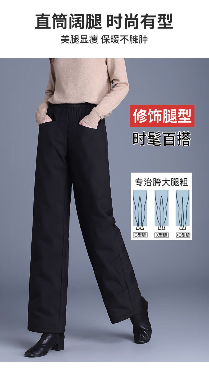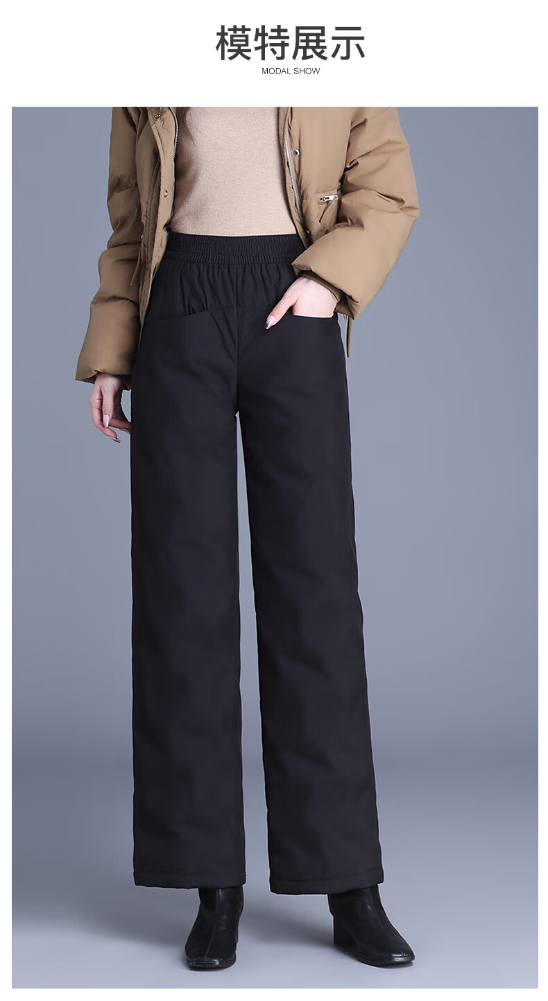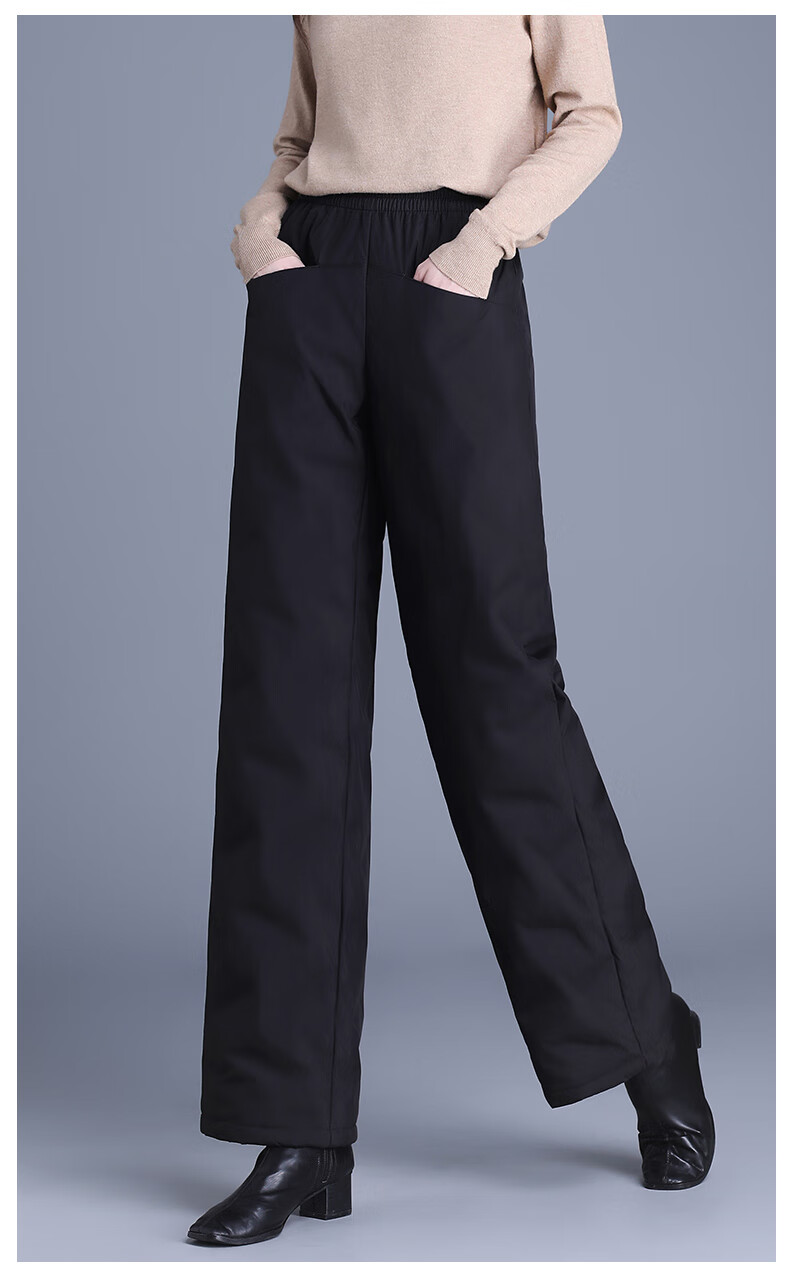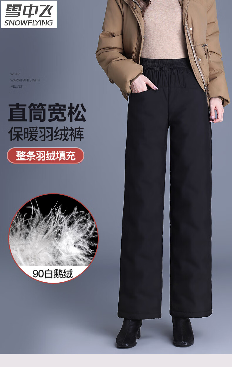 Flying in the Snow Straight Down Pants Women's Outerwear 2025 New Winter Thickened Loose Wide Leg Warm Goose Down Cotton Pants for Middle-aged and Elderly Mothers Pure White Goose Down - Straight Down Pants (Regular Style - Black) Suitable for heights above 161 XL 115-130 Jin Jin equals 0.5 kg