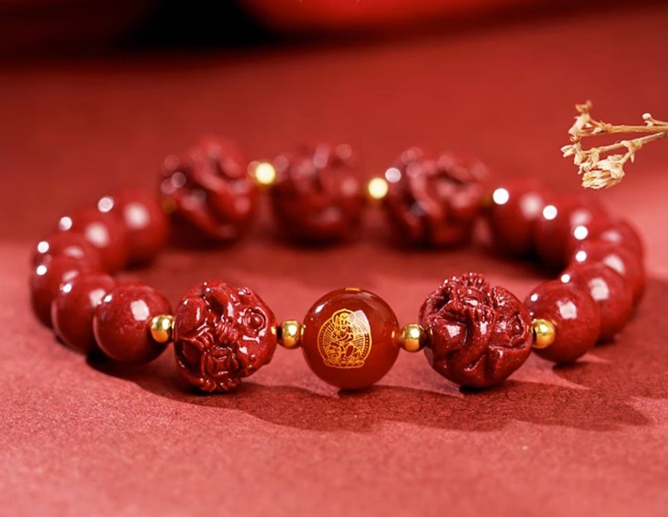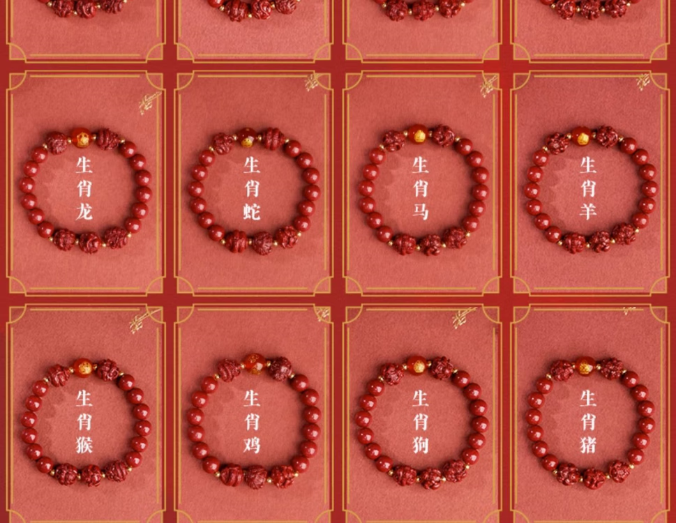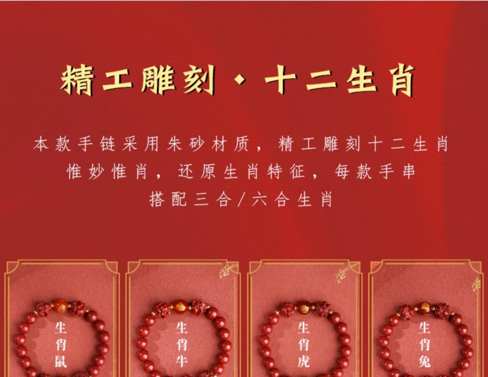 Ji Ge belongs to the dragon, the zodiac year, the twelve zodiac signs, the three-in-one and the six-in-one bracelet for men and women, natural cinnabar natal Buddha, body protection and transport wear, zodiac rat wear, 8mm
