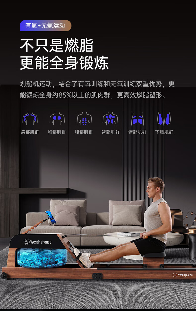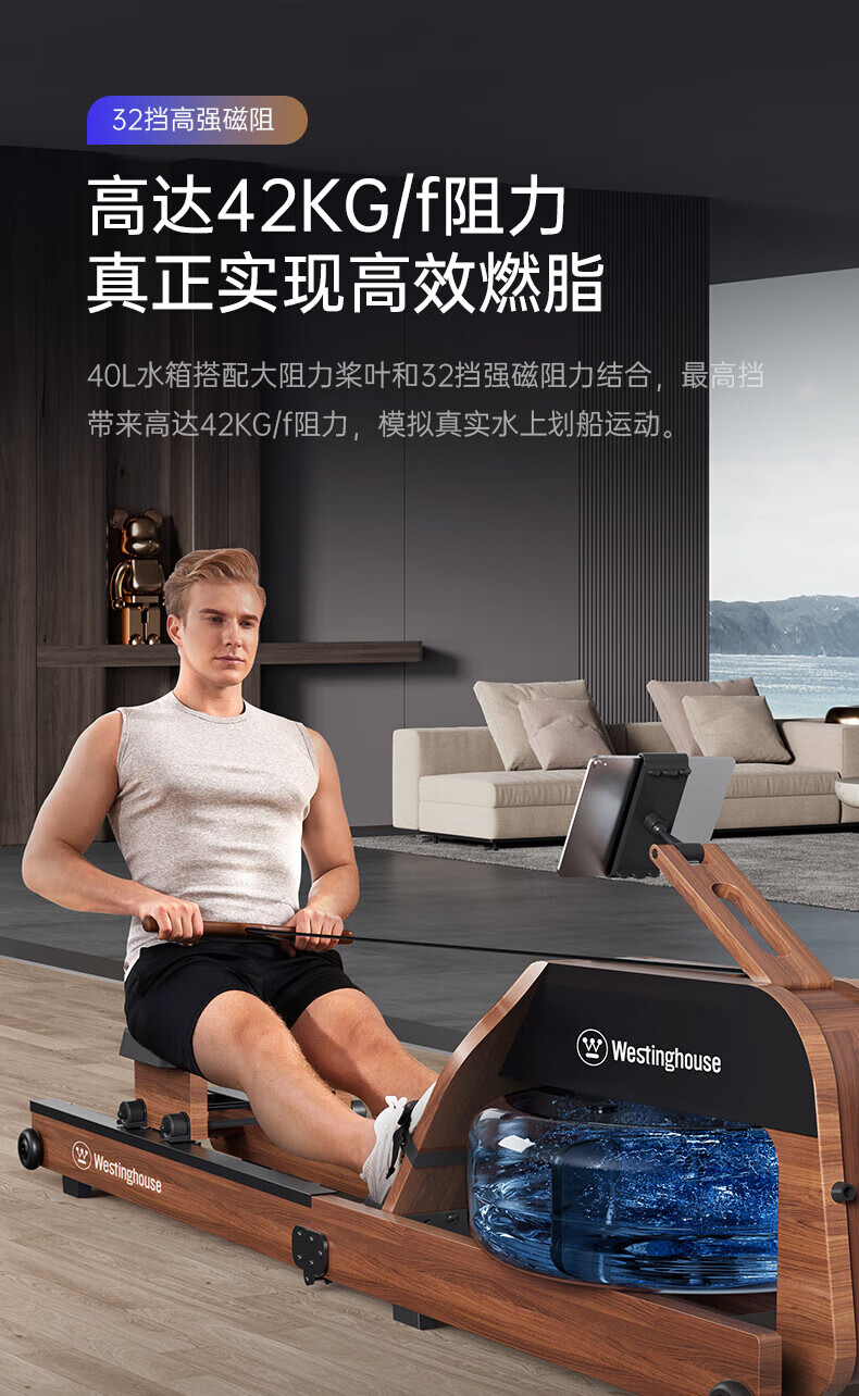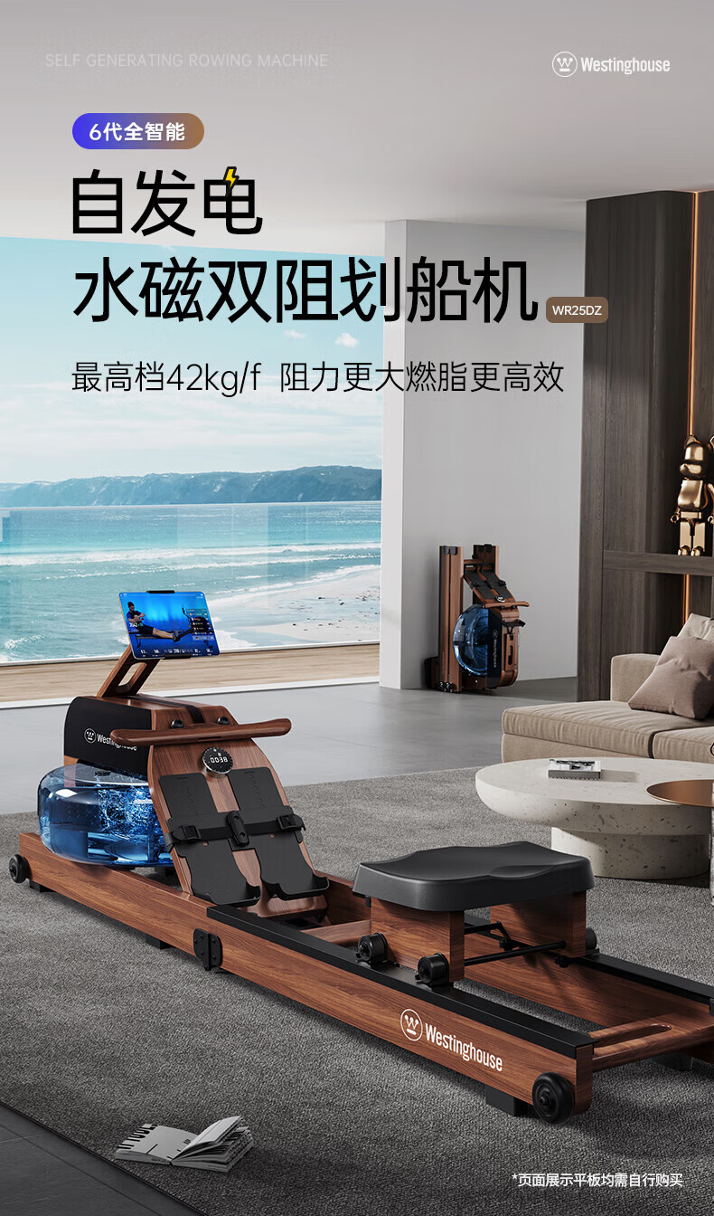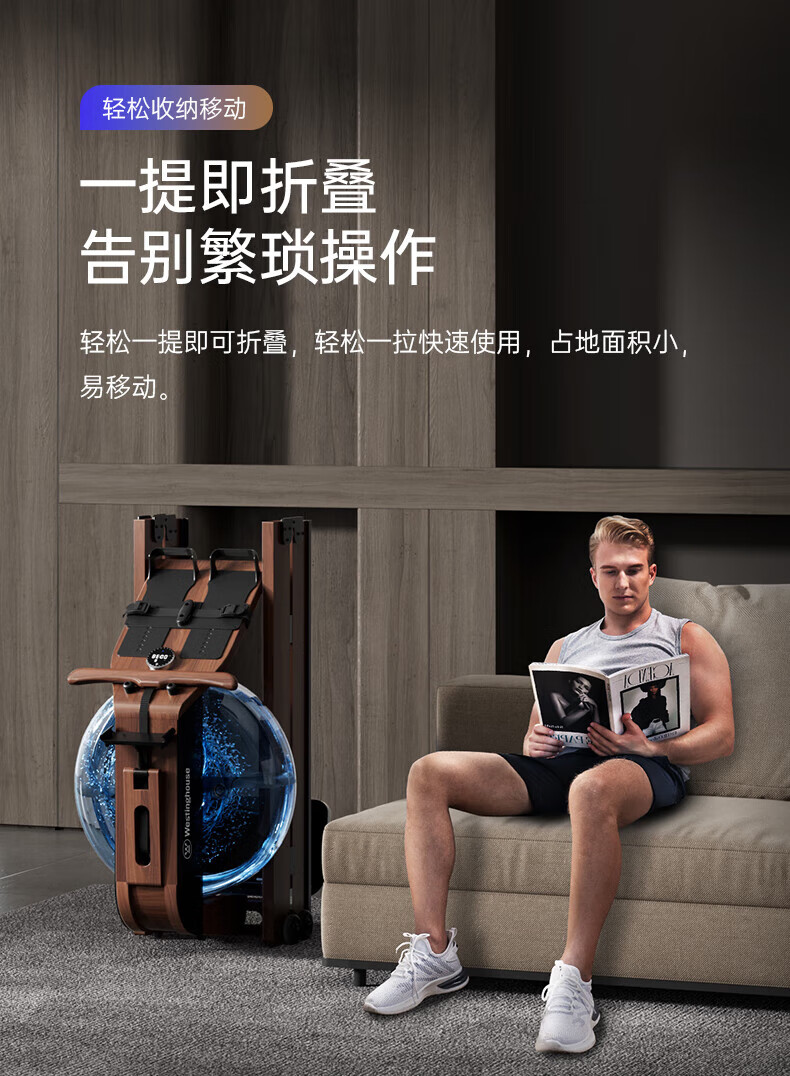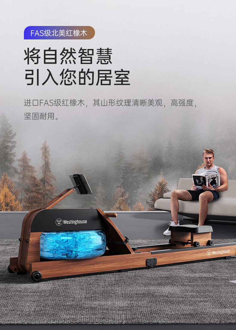 Westinghouse smart hydromagnetic dual-resistance rowing machine household foldable indoor aerobic gym equipment small wireless self-generating/hydromagnetic dual-resistance/imported red oak