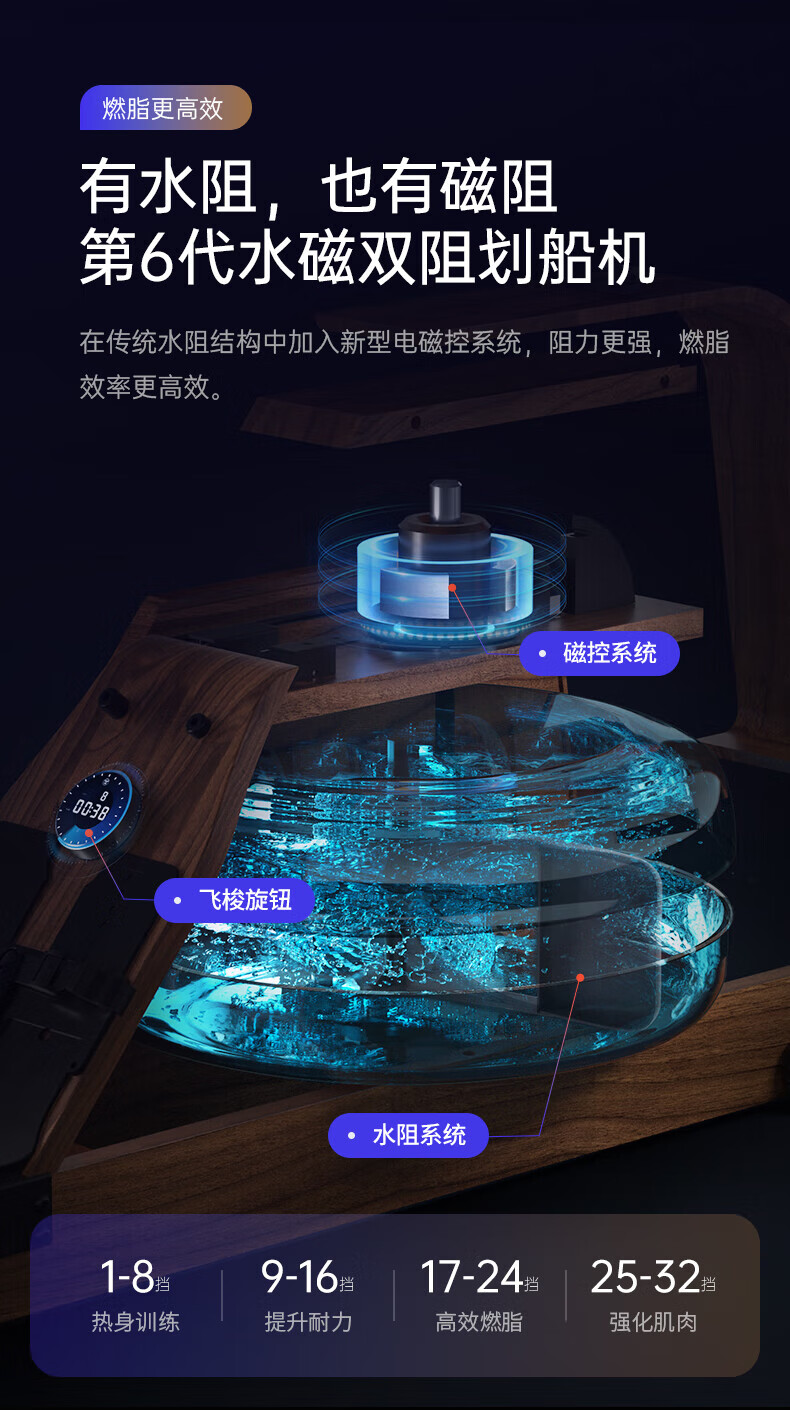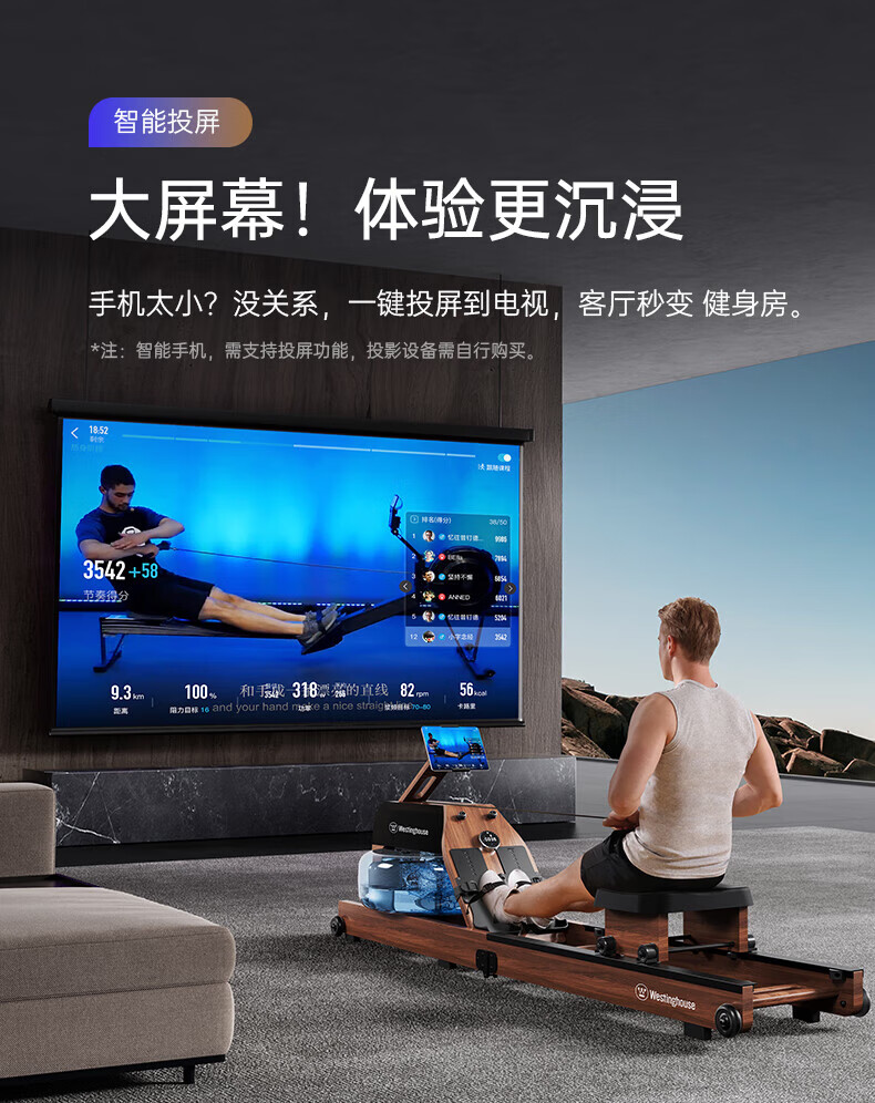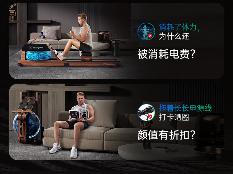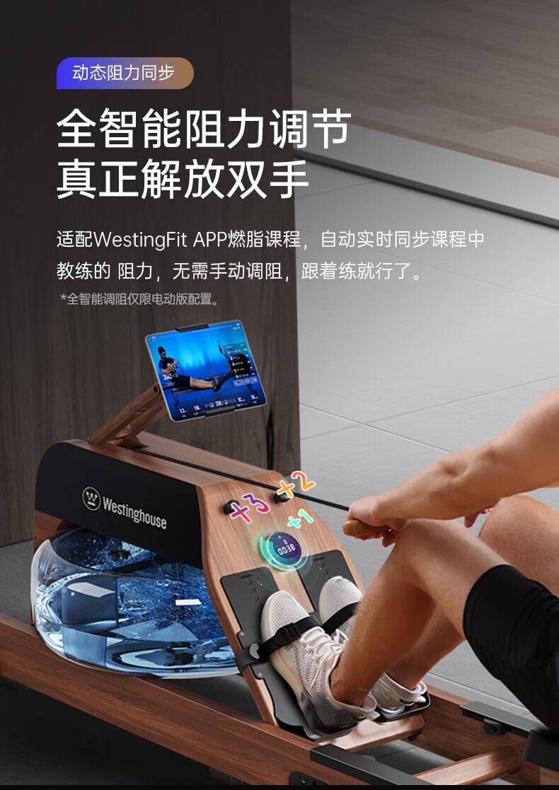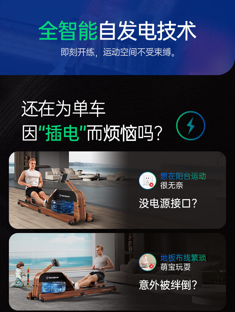 Westinghouse smart hydromagnetic dual-resistance rowing machine household foldable indoor aerobic gym equipment small wireless self-generating/hydromagnetic dual-resistance/imported red oak