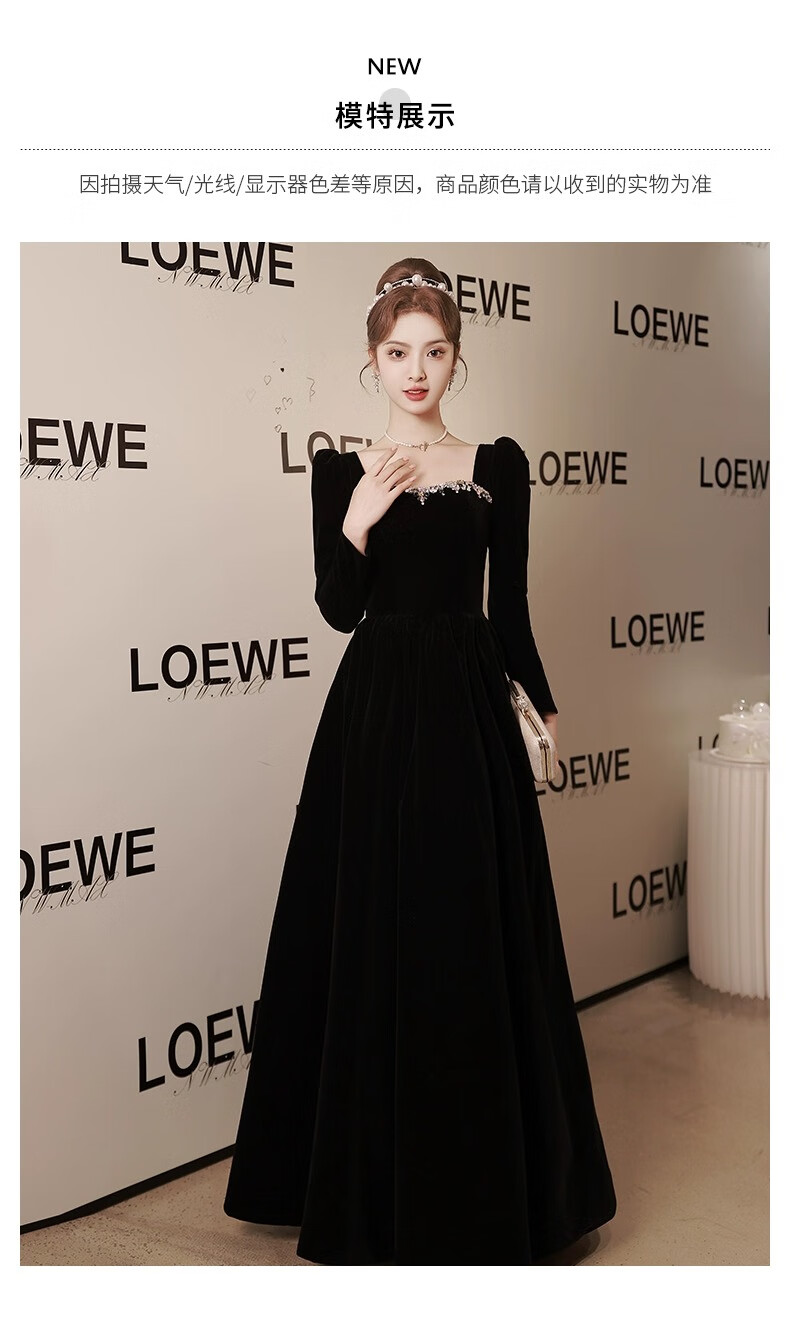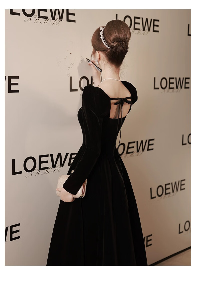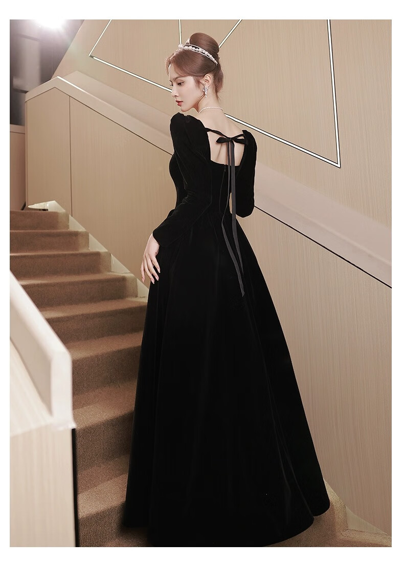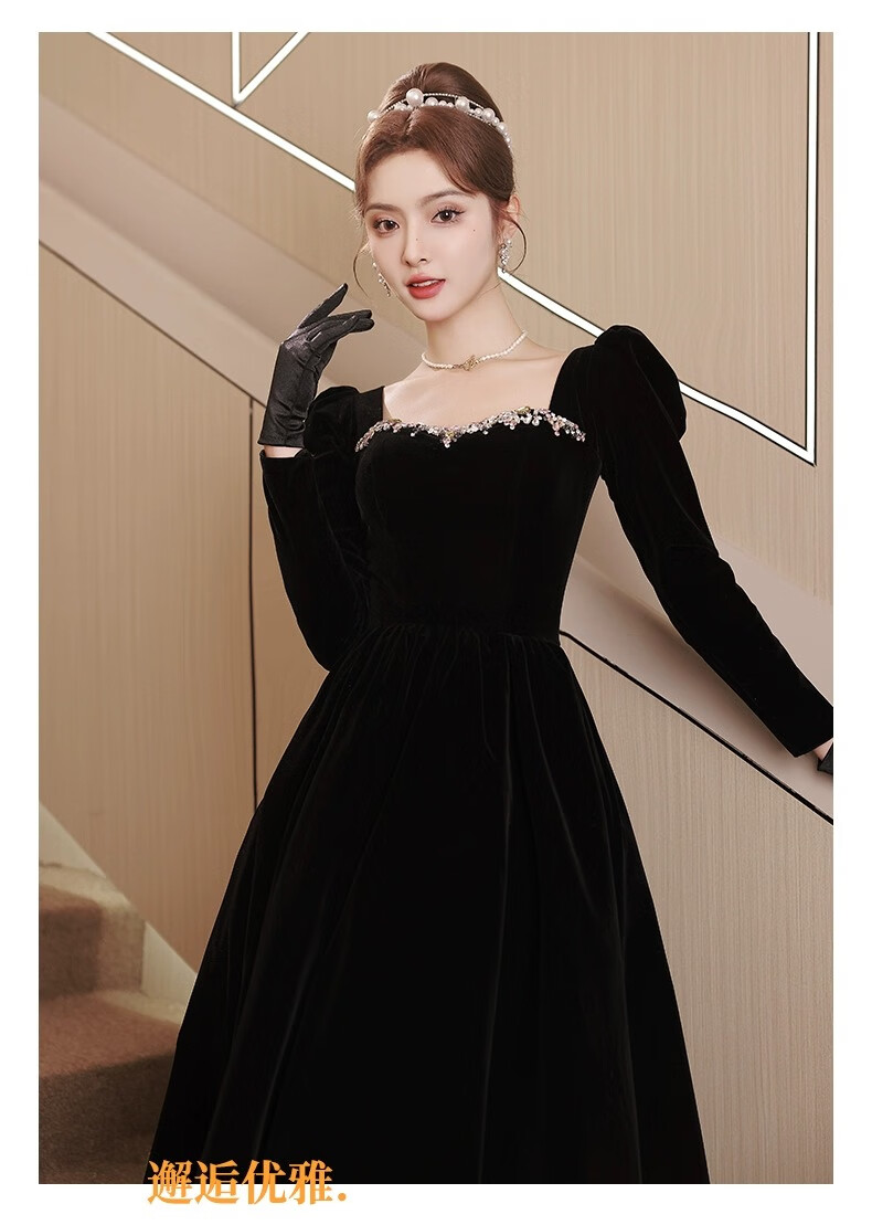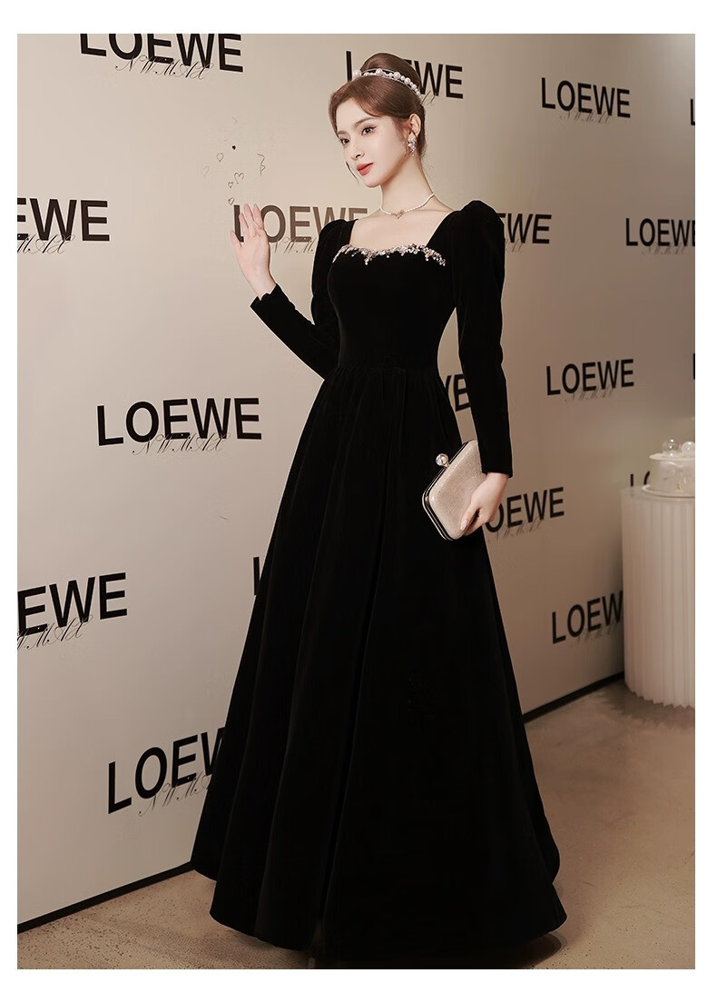 Libaixin black evening dress for women 2025 new style light luxury high-end temperament annual meeting adult ceremony velvet autumn and winter long-sleeved dress black S