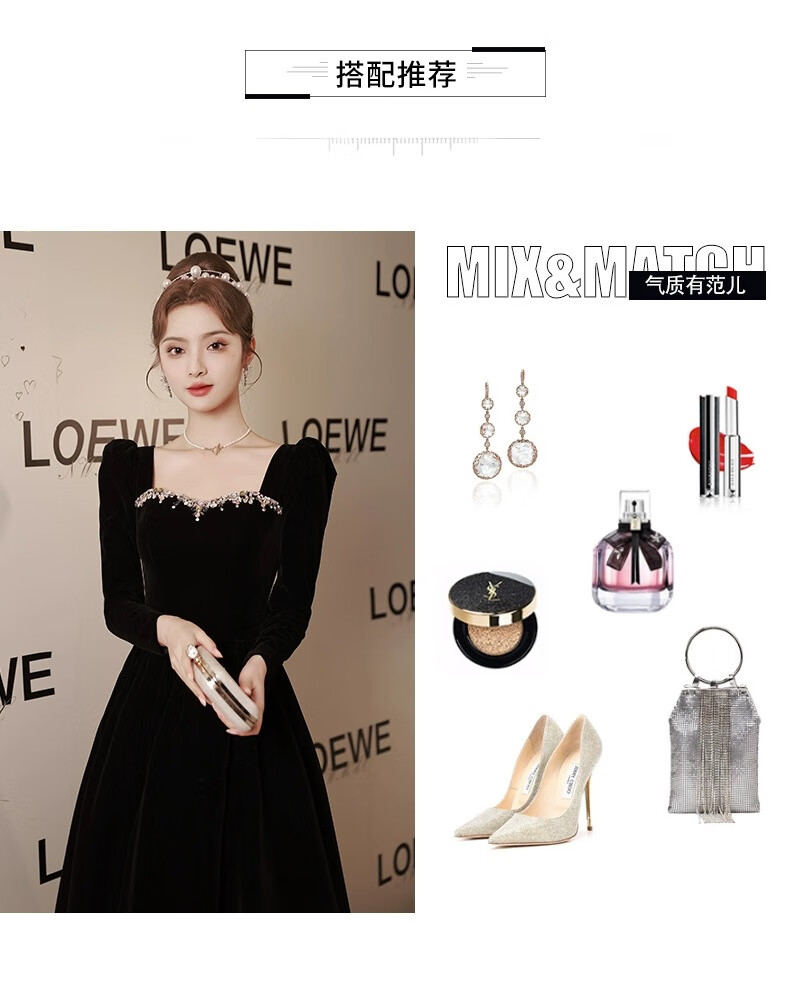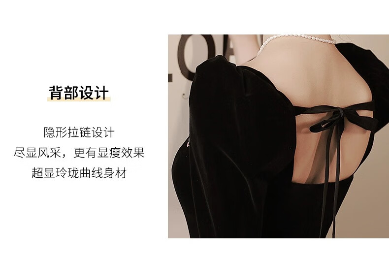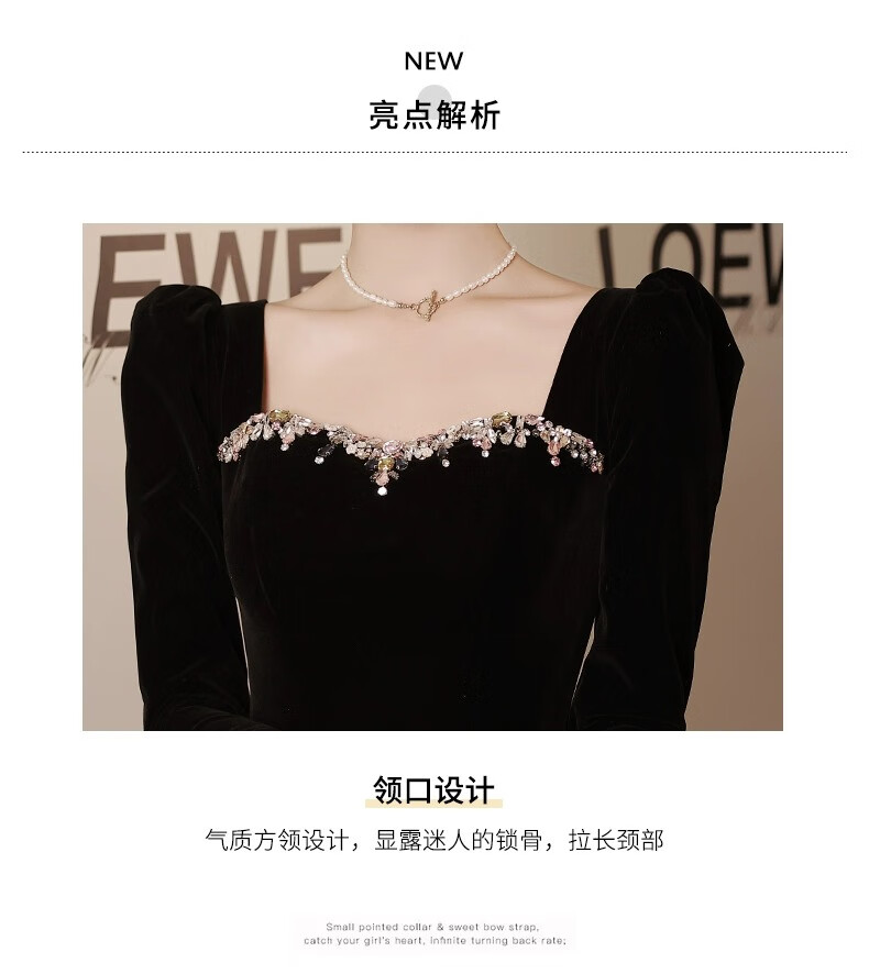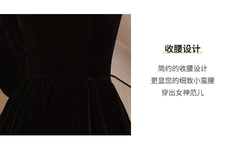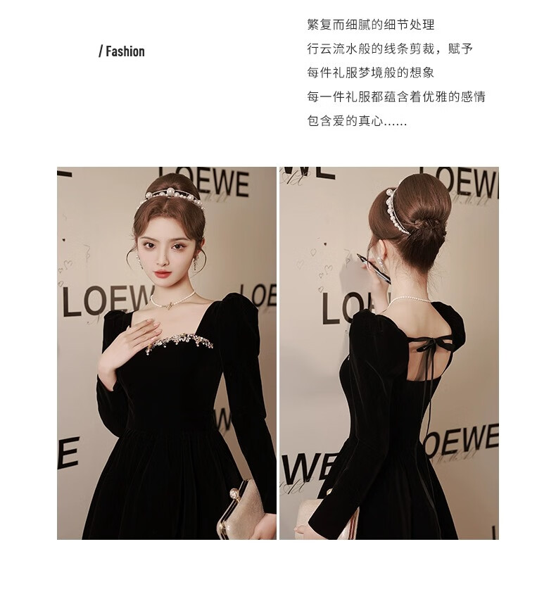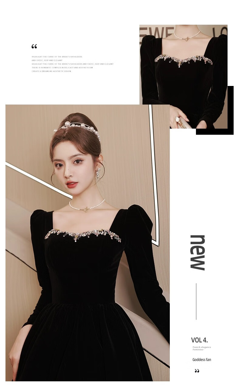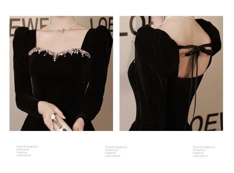 Libaixin black evening dress for women 2025 new style light luxury high-end temperament annual meeting adult ceremony velvet autumn and winter long-sleeved dress black S