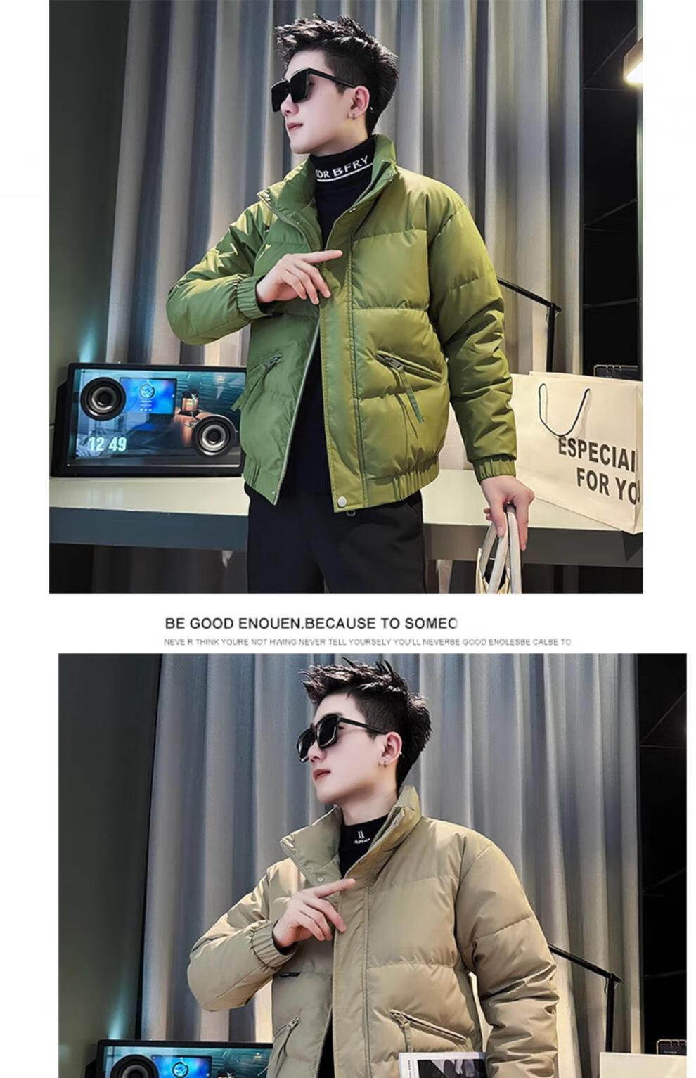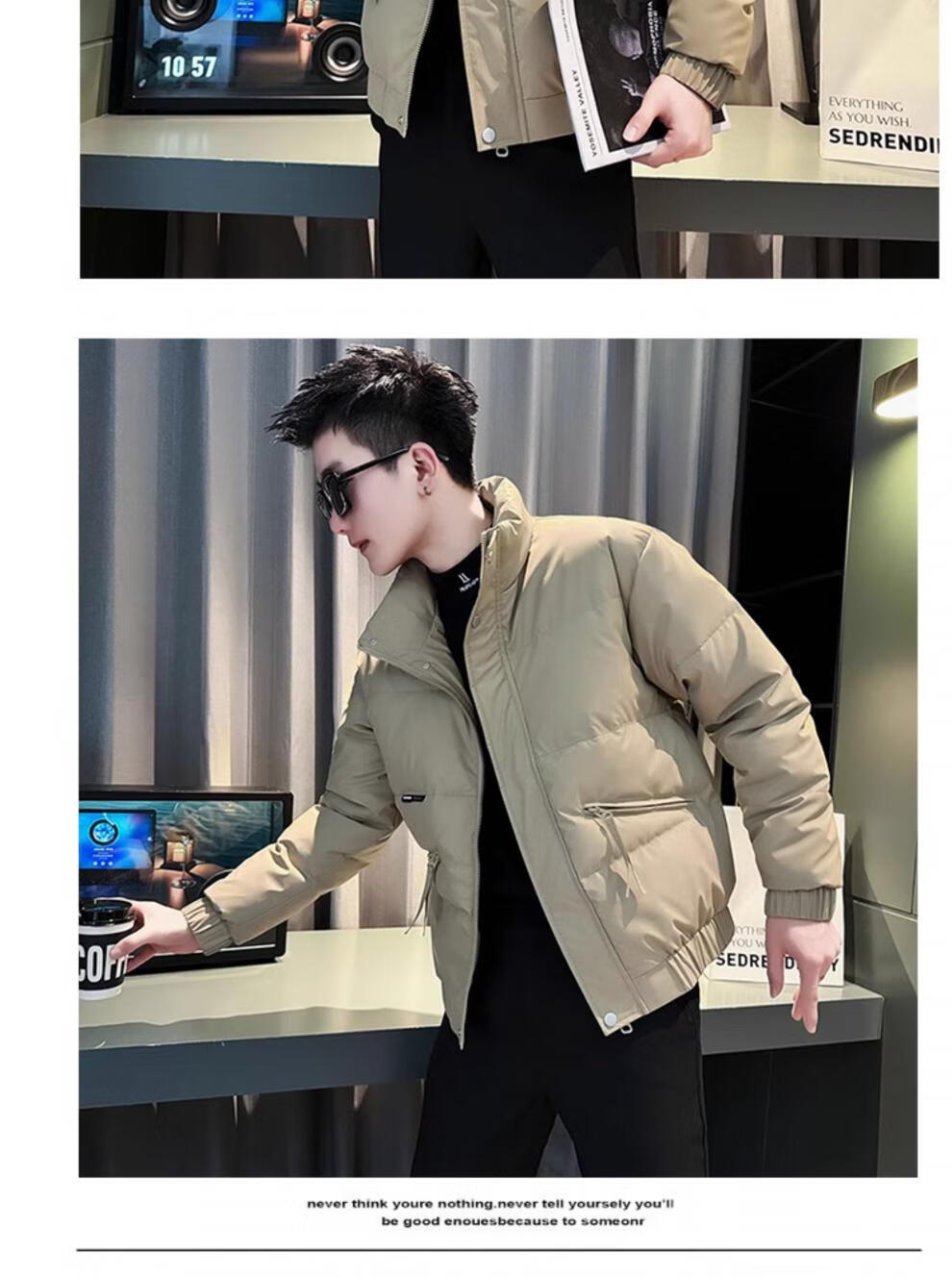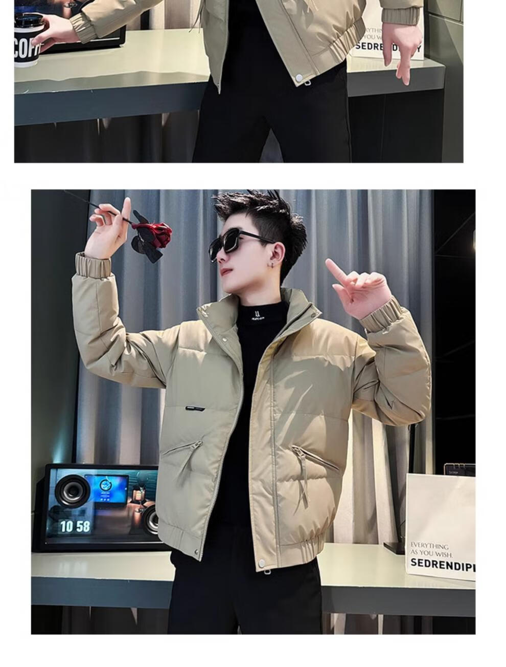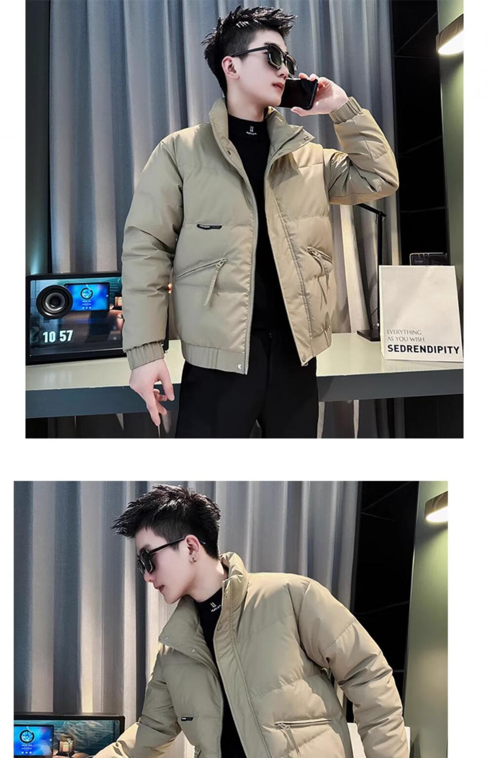 ROMON handsome short down jacket men's winter trendy stand collar thickened cotton jacket 2026 new men's cotton jacket khaki L recommended 115-130Jin Jin equals 0.5 kg