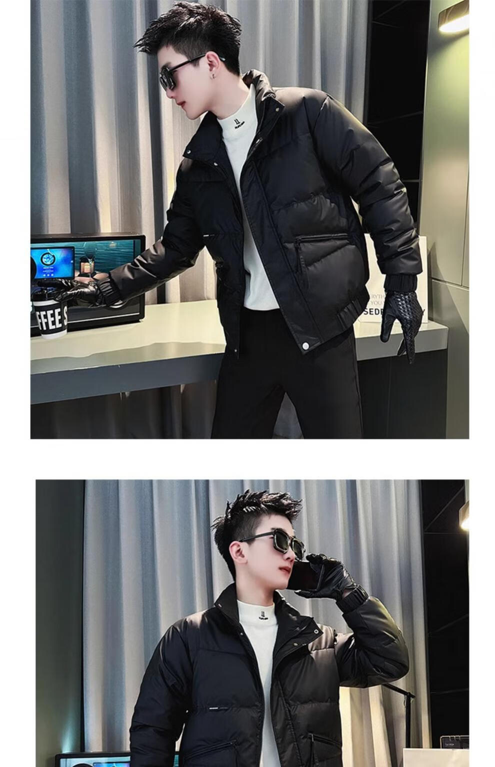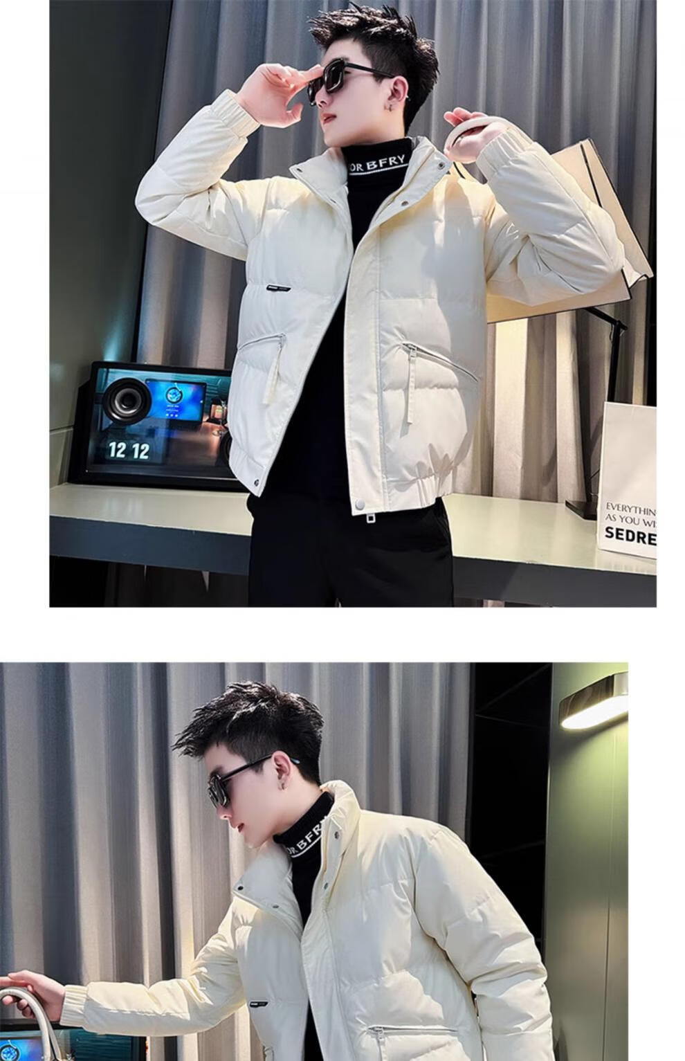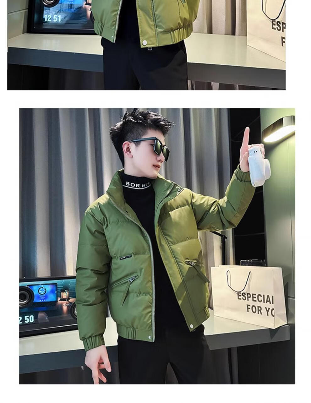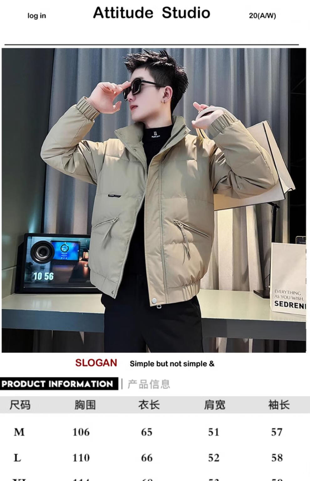 ROMON handsome short down jacket men's winter trendy stand collar thickened cotton jacket 2026 new men's cotton jacket khaki L recommended 115-130Jin Jin equals 0.5 kg