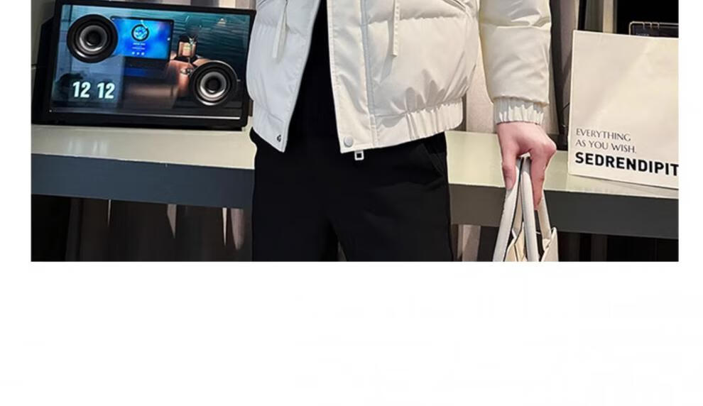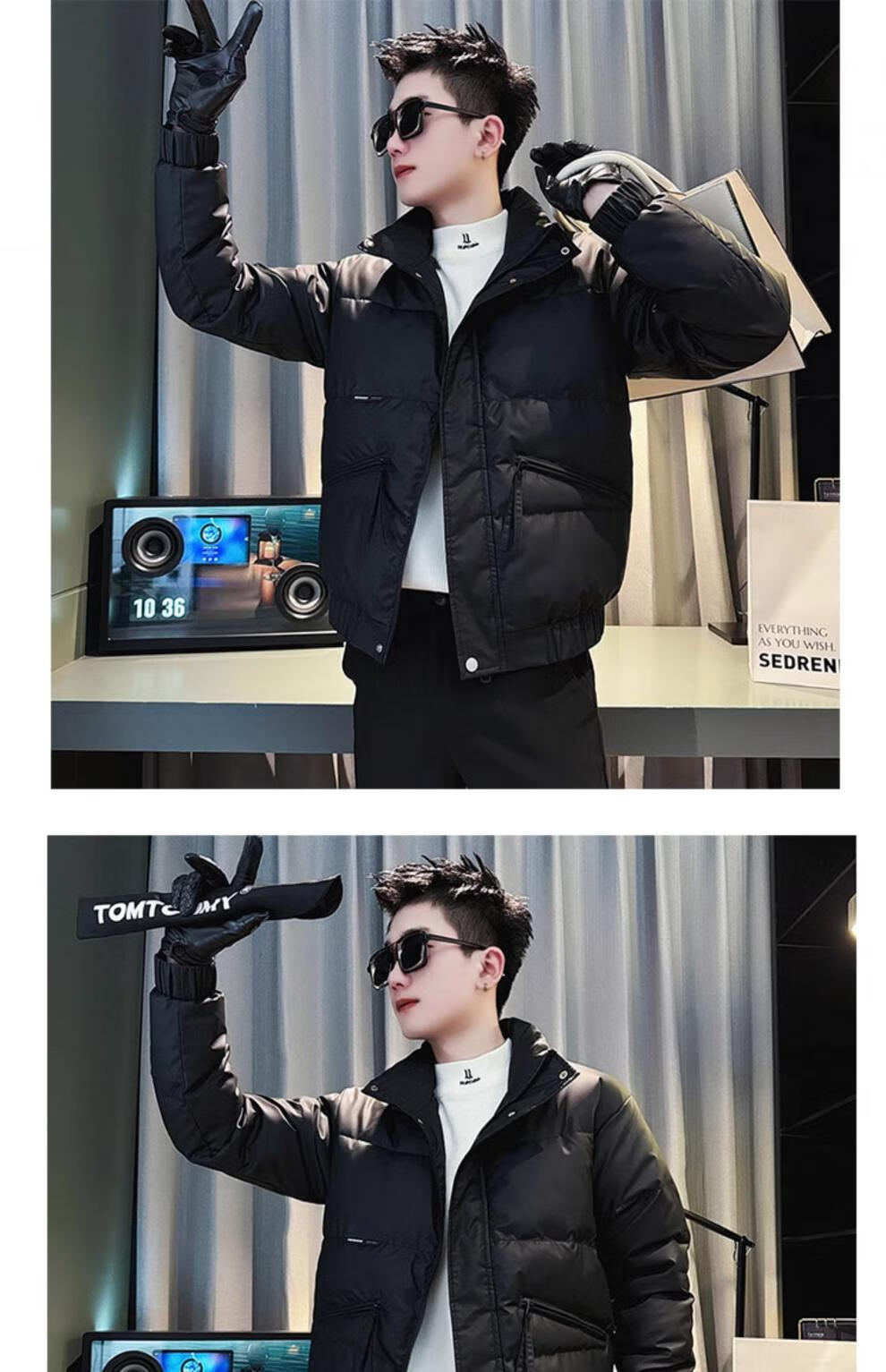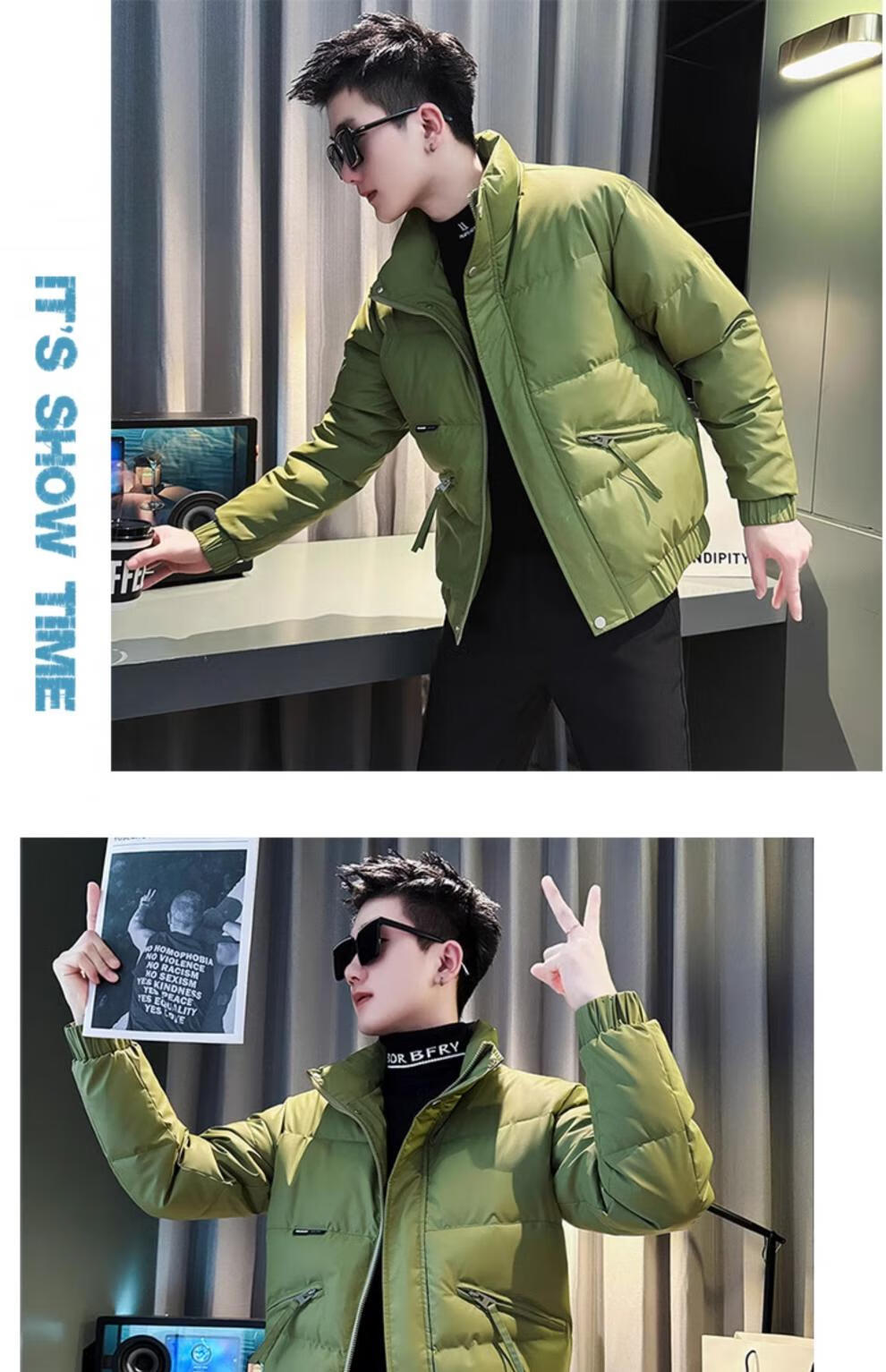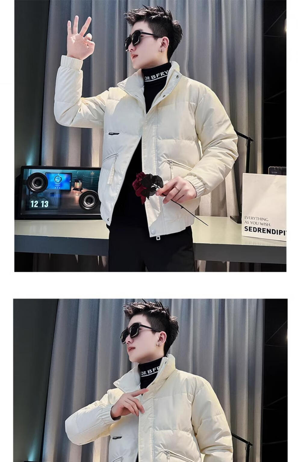 ROMON handsome short down jacket men's winter trendy stand collar thickened cotton jacket 2026 new men's cotton jacket khaki L recommended 115-130Jin Jin equals 0.5 kg