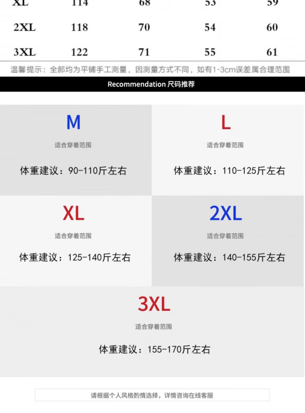 China (cm) 165 / 88-90 170 / 96-98 175 / 108-110 180 / 118-122 185 / 126-130