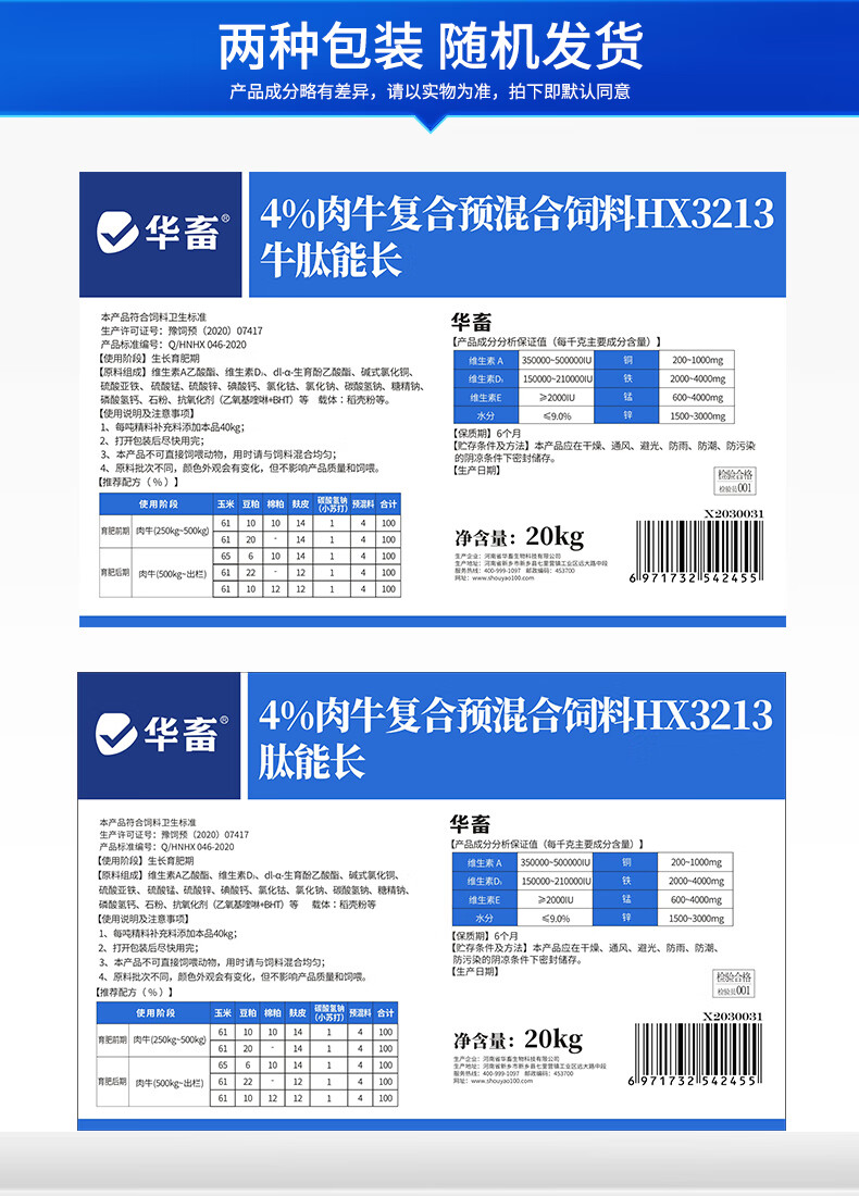 Huazhu 4% beef cattle fattening compound premix bovine peptide energy growth compound weight gain vitamin trace element feed 1 bag 4% beef cattle and sheep fattening premix 40Jin Jin equals 0.5kg