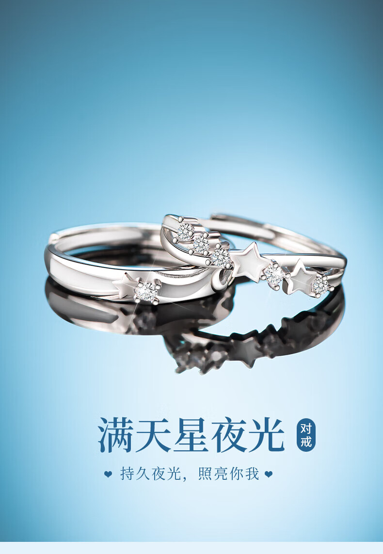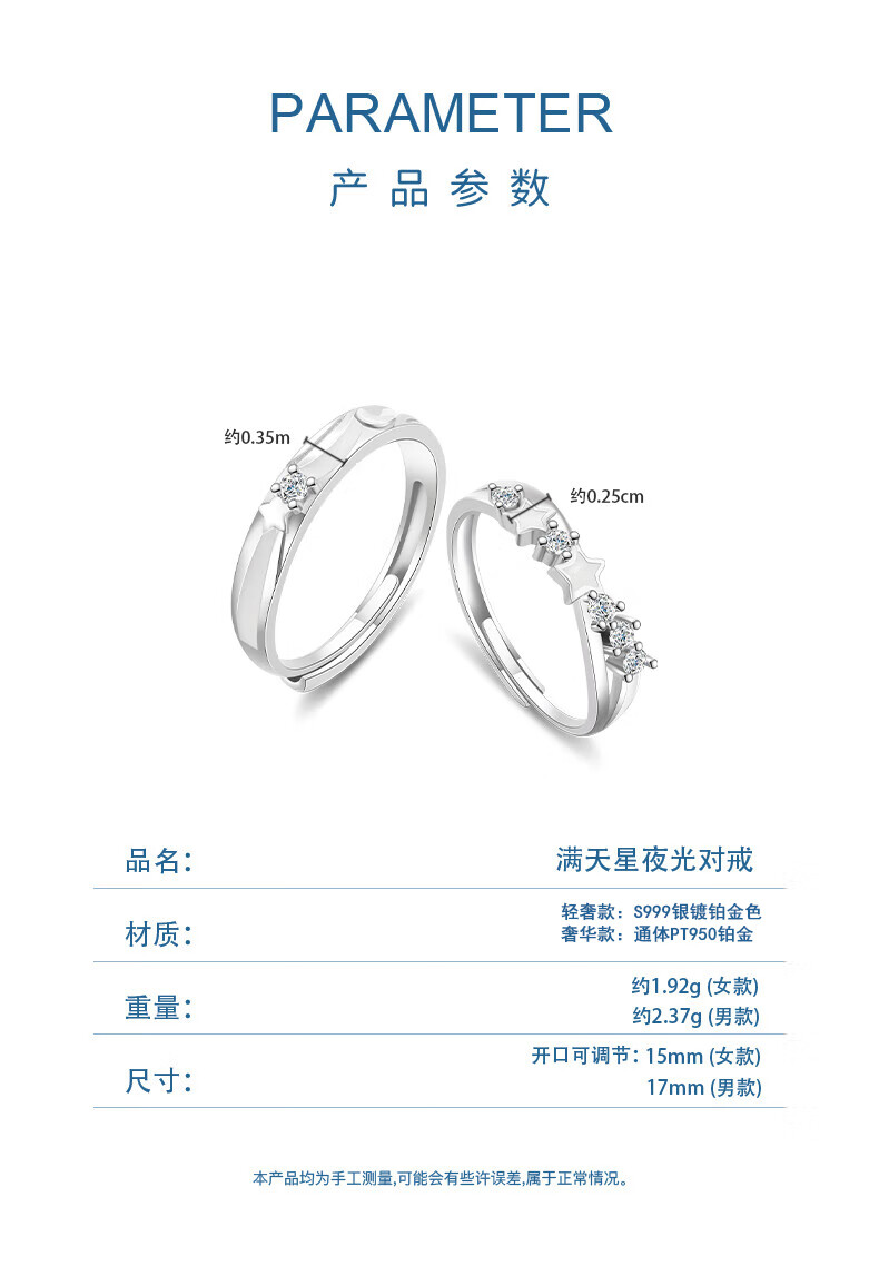 MZMZ platinum couple rings, proposal, engagement, Chinese Valentine's Day, birthday gift, anniversary gift for girlfriend and wife, starry night luminous pair ring - light luxury style