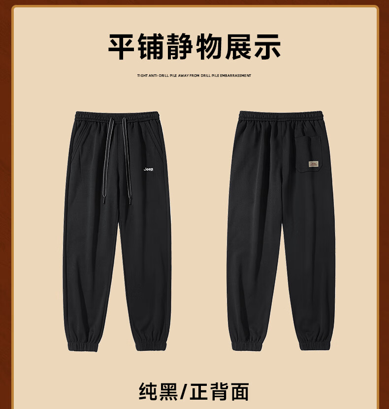 Jeep (JEEP) Jeep sweatpants men's spring and autumn loose-fitting sweatpants autumn fashion brand casual trousers boys' pants Y pure black XL