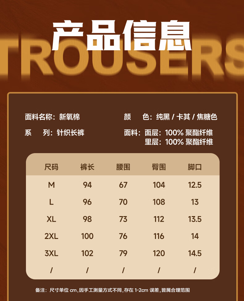 Outseam (cm) 99 cm 101.5 cm 104 cm 106.5 cm 109 cm