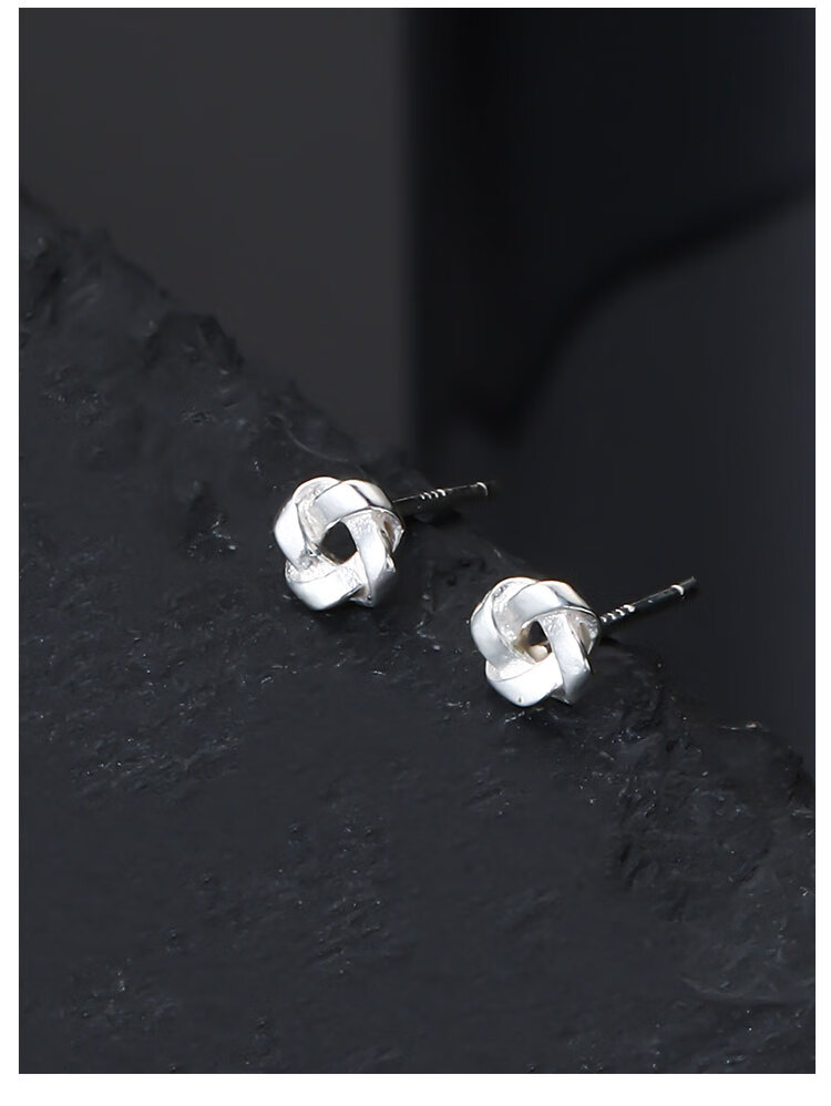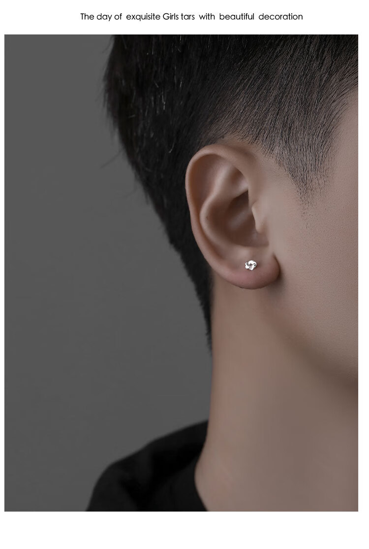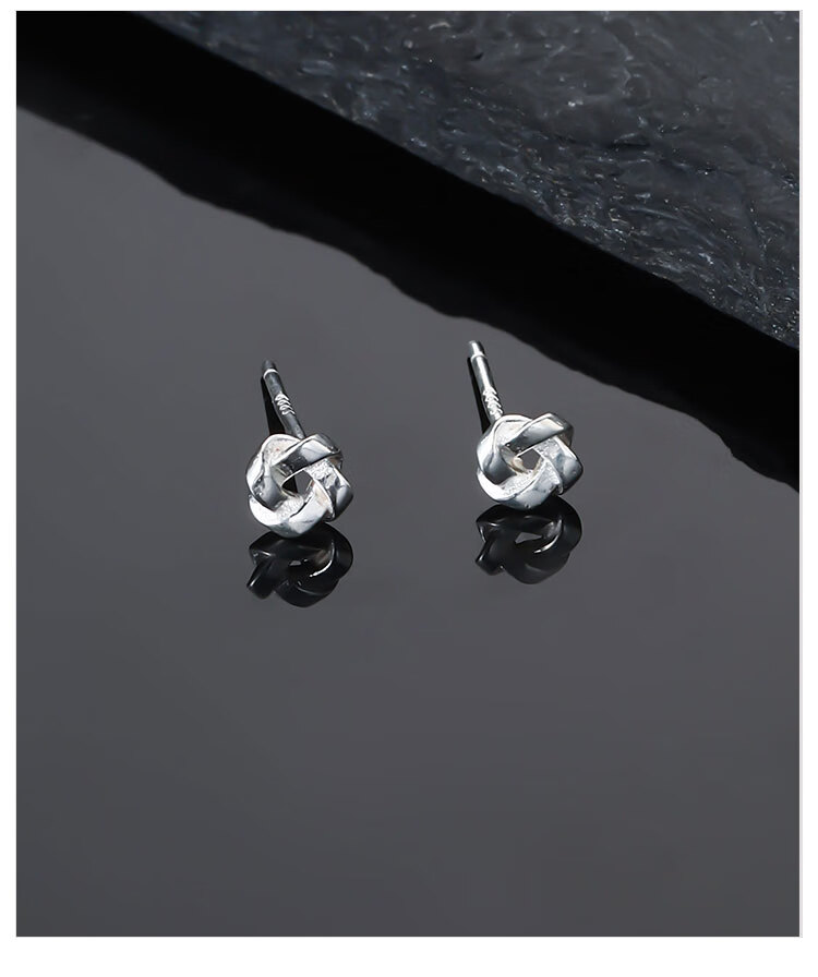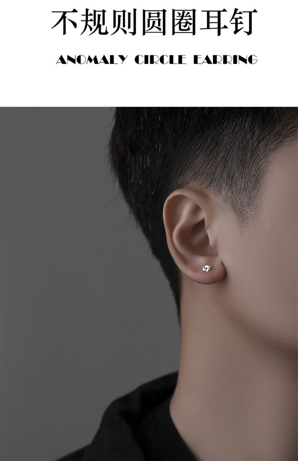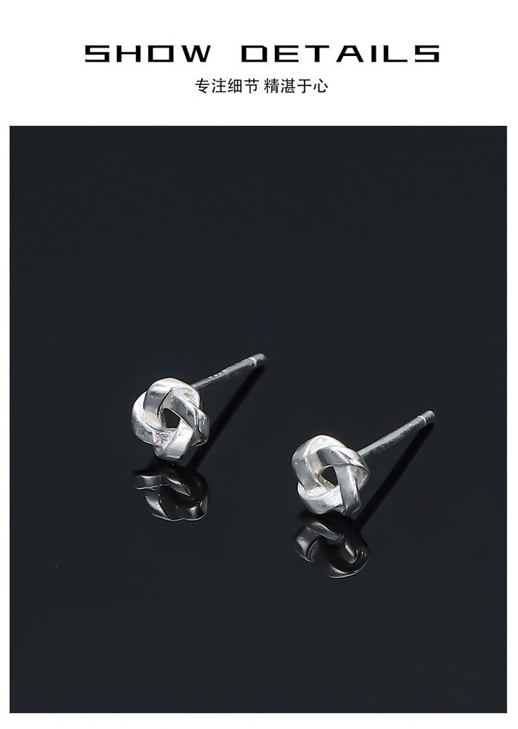 Xili S999 pure silver earrings for men, handsome and high-end single pair of earrings, men's trendy design earrings, pure silver Mobius earrings, single